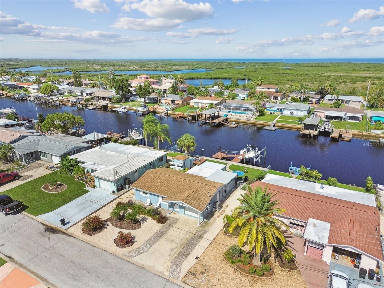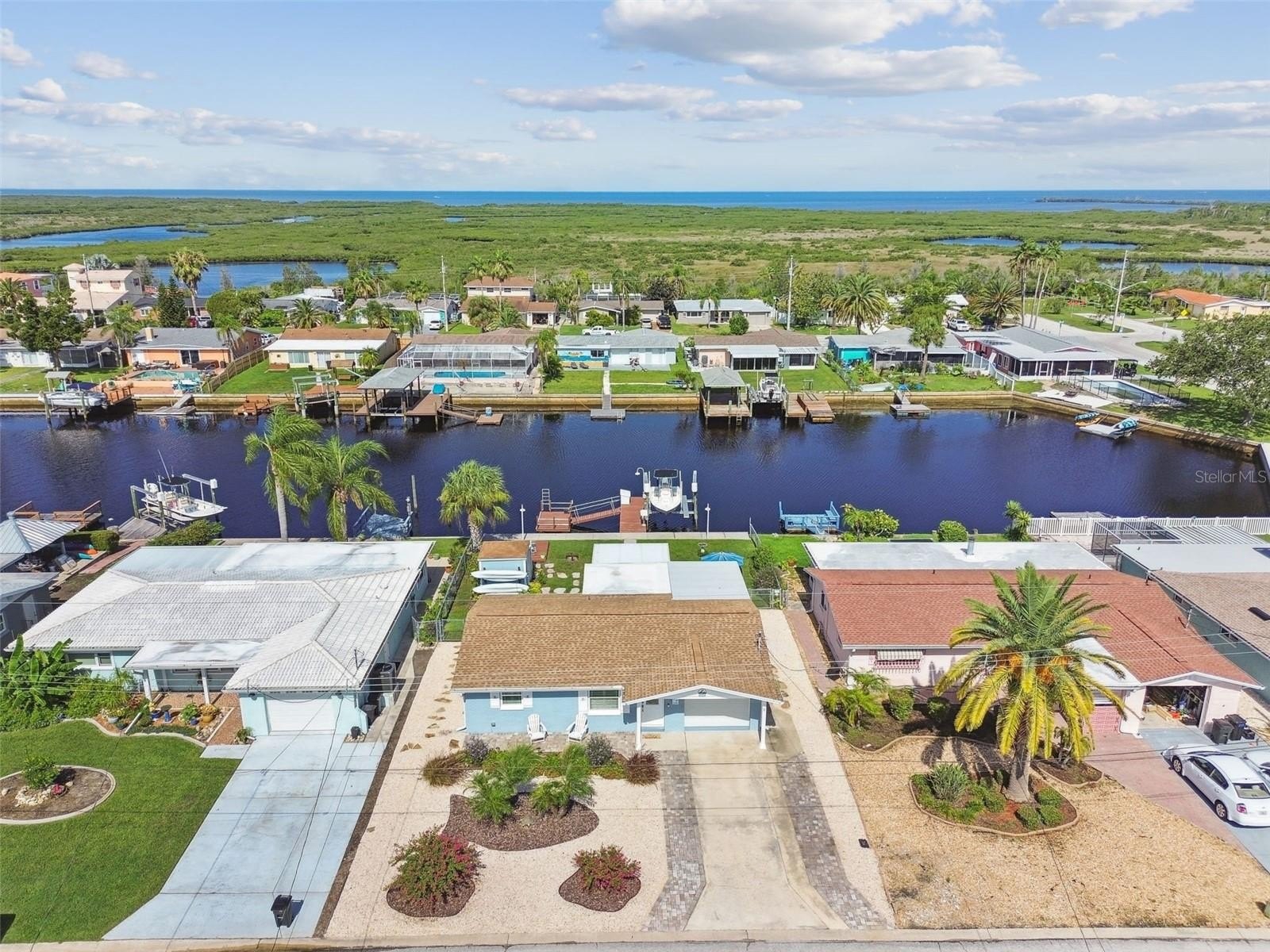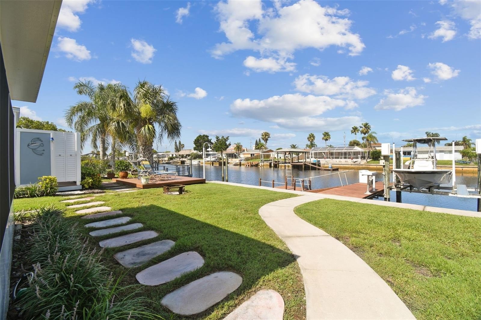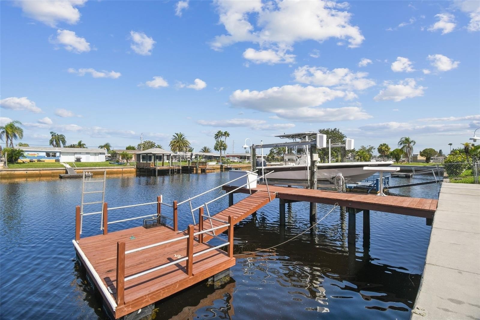 Charming Waterfront Retreat in Leisure Beach! Welcome to this beautifully updated concrete block home in one of Hudson’s most desirable waterfront communities—Leisure Beach. This property features 2 bedrooms, 1.5 baths, plus a versatile bonus room ideal for a guest space, home office, yoga studio, or playroom. Inside, you’ll love the coastal-inspired design with porcelain tile floors throughout, fresh beachy color palette, and 4” plantation shutters. The kitchen boasts new soft-close cabinetry, stainless steel appliances, and subway tile backsplash. Additional upgrades include hurricane-rated windows and doors, tamper-proof safety outlets with USB chargers in every room, and an updated electric panel with an RV hookup. Enjoy year-round relaxation in the spacious all-season screened lanai overlooking a fully fenced, beautifully landscaped backyard—perfect for pets or children. Step outside to your waterfront oasis: a 12’x12’ deck under swaying palms, a floating kayak dock, and an 8,000 lb boat lift with walk-out deck for easy access to the Gulf. With no bridges to navigate, you’ll be fishing, island-hopping, or visiting waterfront restaurants in minutes. After a day on the water, rinse off in the outdoor shower with hot/cold water and unwind under the lighted palms in your coastal-inspired yard, complete with a large storage shed for all your boating gear. This home truly embodies Florida waterfront living—don’t miss your chance to make it yours!