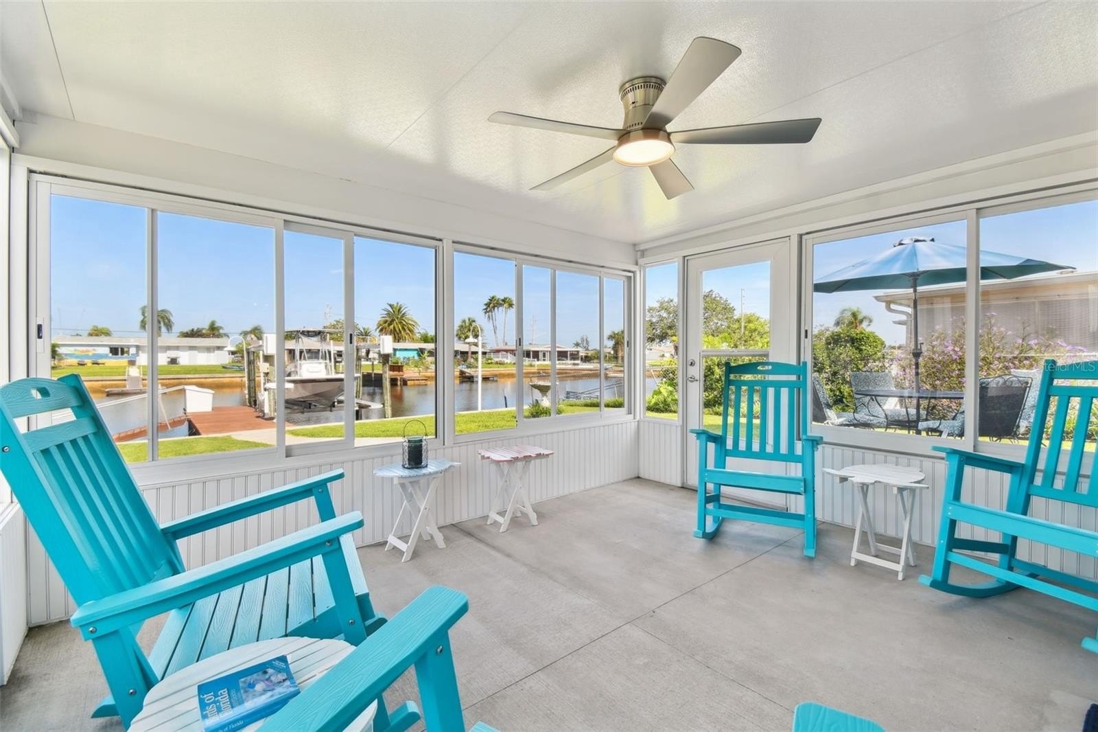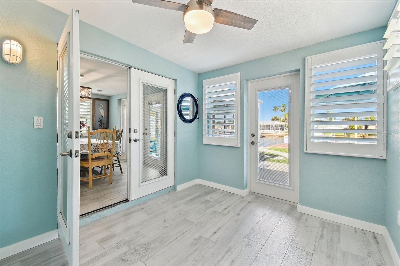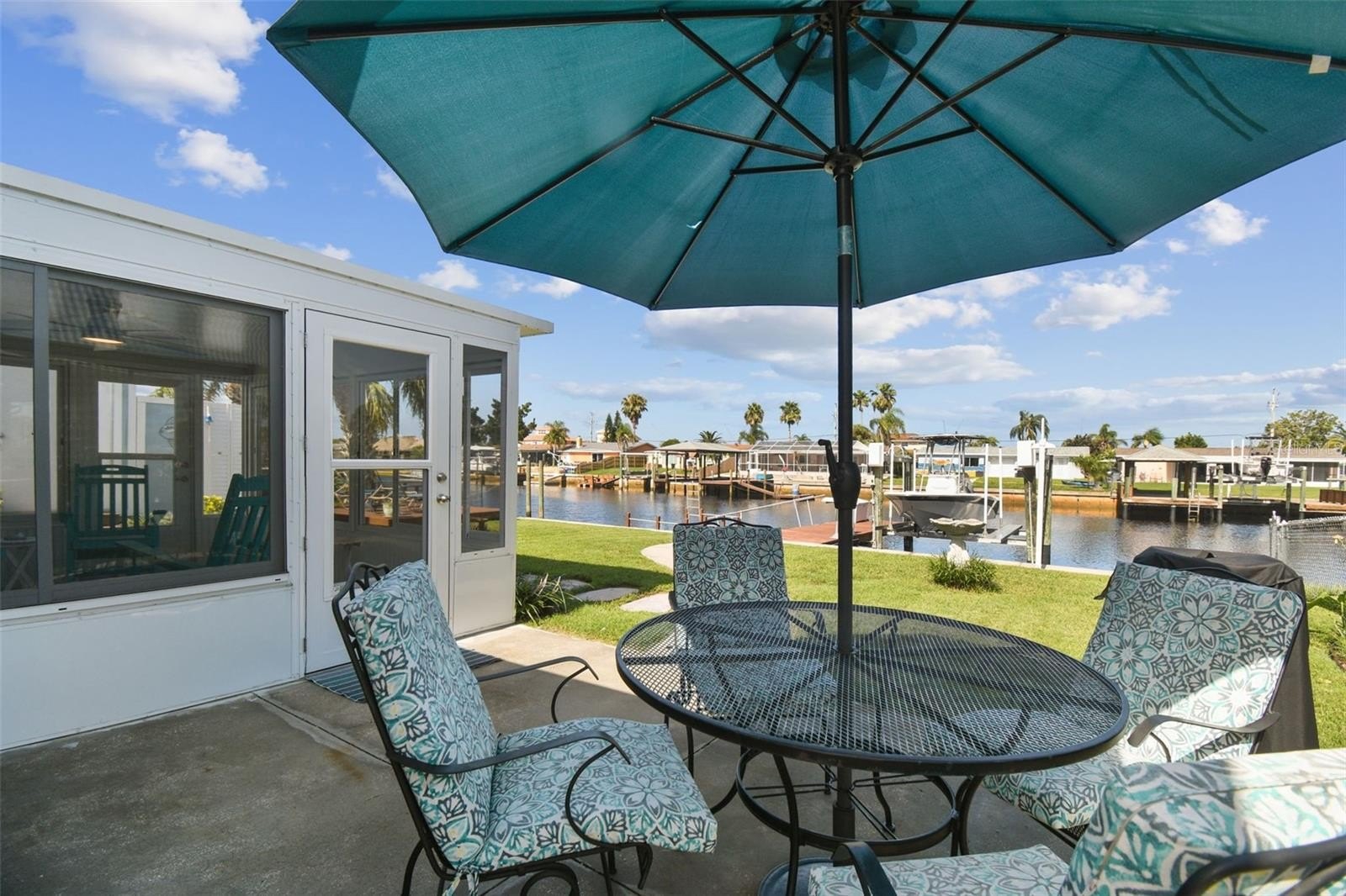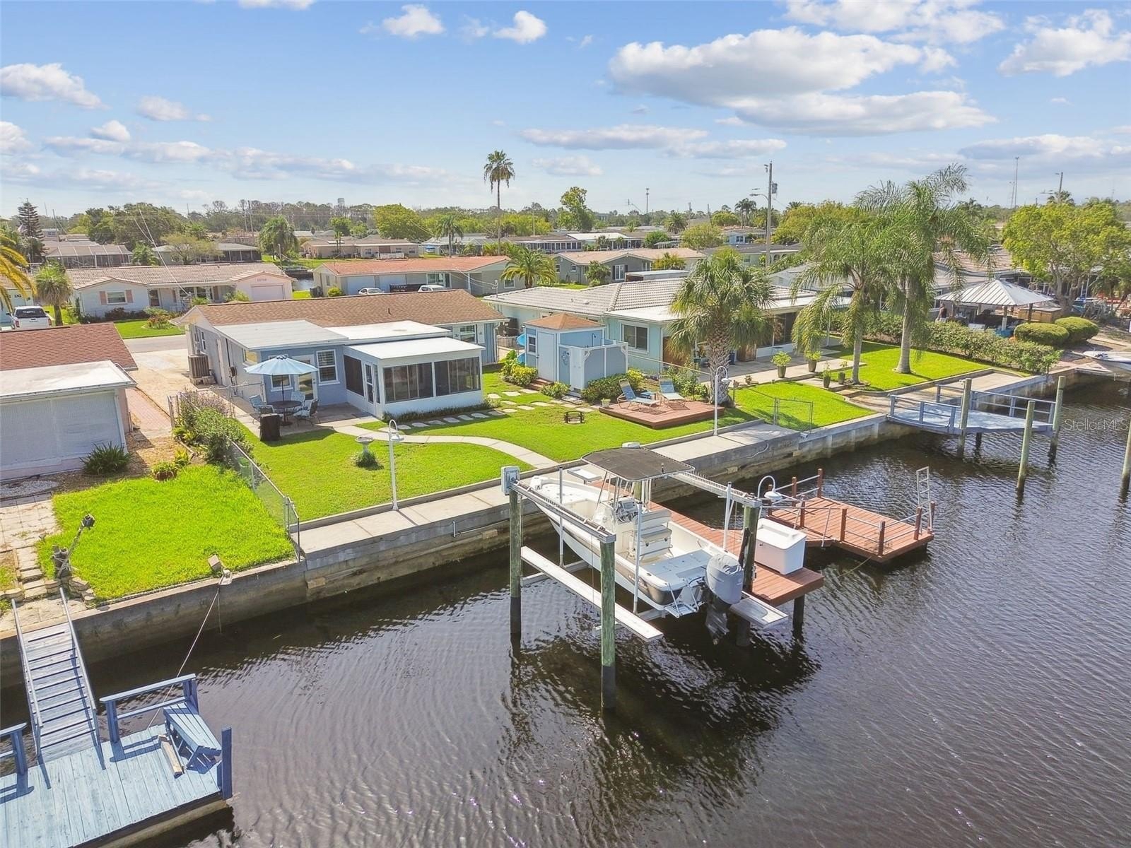Charming Waterfront Retreat in Leisure Beach! Welcome to this beautifully updated concrete block home in one of Hudson’s most desirable waterfront communities—Leisure Beach. This property features 2 bedrooms, 1.5 baths, plus a versatile bonus room ideal for a guest space, home office, yoga studio, or playroom. Inside, you’ll love the coastal-inspired design with porcelain tile floors throughout, fresh beachy color palette, and 4” plantation shutters. The kitchen boasts new soft-close cabinetry, stainless steel appliances, and subway tile backsplash. Additional upgrades include hurricane-rated windows and doors, tamper-proof safety outlets with USB chargers in every room, and an updated electric panel with an RV hookup. Enjoy year-round relaxation in the spacious all-season screened lanai overlooking a fully fenced, beautifully landscaped backyard—perfect for pets or children. Step outside to your waterfront oasis: a 12’x12’ deck under swaying palms, a floating kayak dock, and an 8,000 lb boat lift with walk-out deck for easy access to the Gulf. With no bridges to navigate, you’ll be fishing, island-hopping, or visiting waterfront restaurants in minutes. After a day on the water, rinse off in the outdoor shower with hot/cold water and unwind under the lighted palms in your coastal-inspired yard, complete with a large storage shed for all your boating gear. This home truly embodies Florida waterfront living—don’t miss your chance to make it yours!