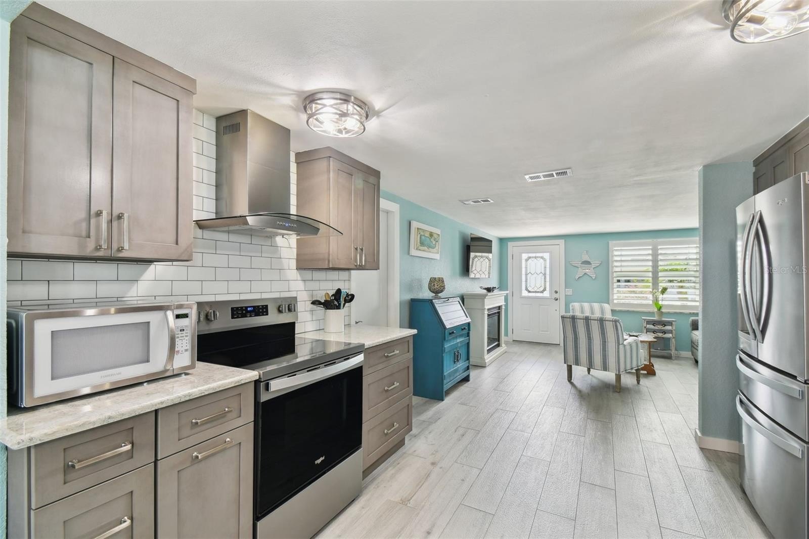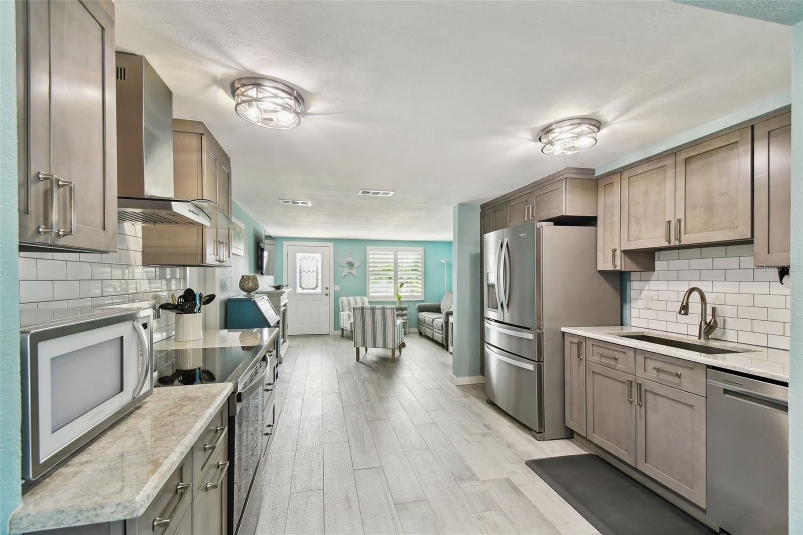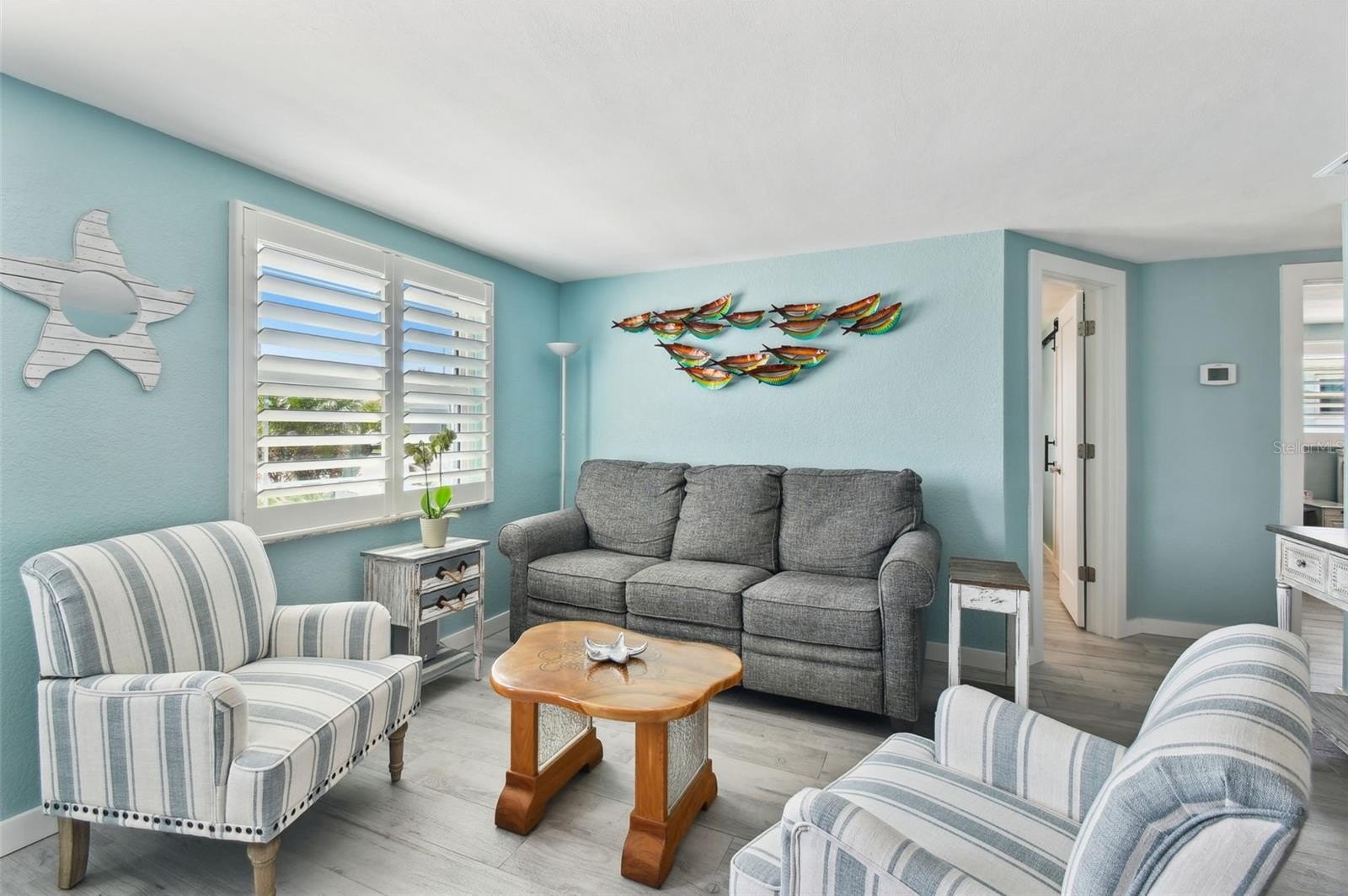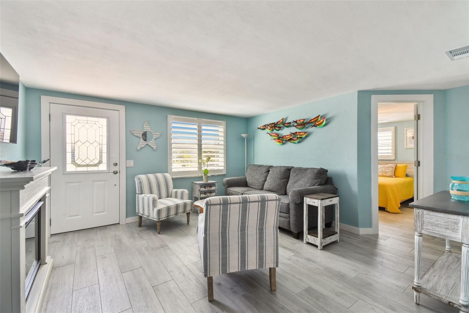 Charming Waterfront Retreat in Leisure Beach! Welcome to this beautifully updated concrete block home in one of Hudson’s most desirable waterfront communities—Leisure Beach. This property features 2 bedrooms, 1.5 baths, plus a versatile bonus room ideal for a guest space, home office, yoga studio, or playroom. Inside, you’ll love the coastal-inspired design with porcelain tile floors throughout, fresh beachy color palette, and 4” plantation shutters. The kitchen boasts new soft-close cabinetry, stainless steel appliances, and subway tile backsplash. Additional upgrades include hurricane-rated windows and doors, tamper-proof safety outlets with USB chargers in every room, and an updated electric panel with an RV hookup. Enjoy year-round relaxation in the spacious all-season screened lanai overlooking a fully fenced, beautifully landscaped backyard—perfect for pets or children. Step outside to your waterfront oasis: a 12’x12’ deck under swaying palms, a floating kayak dock, and an 8,000 lb boat lift with walk-out deck for easy access to the Gulf. With no bridges to navigate, you’ll be fishing, island-hopping, or visiting waterfront restaurants in minutes. After a day on the water, rinse off in the outdoor shower with hot/cold water and unwind under the lighted palms in your coastal-inspired yard, complete with a large storage shed for all your boating gear. This home truly embodies Florida waterfront living—don’t miss your chance to make it yours!