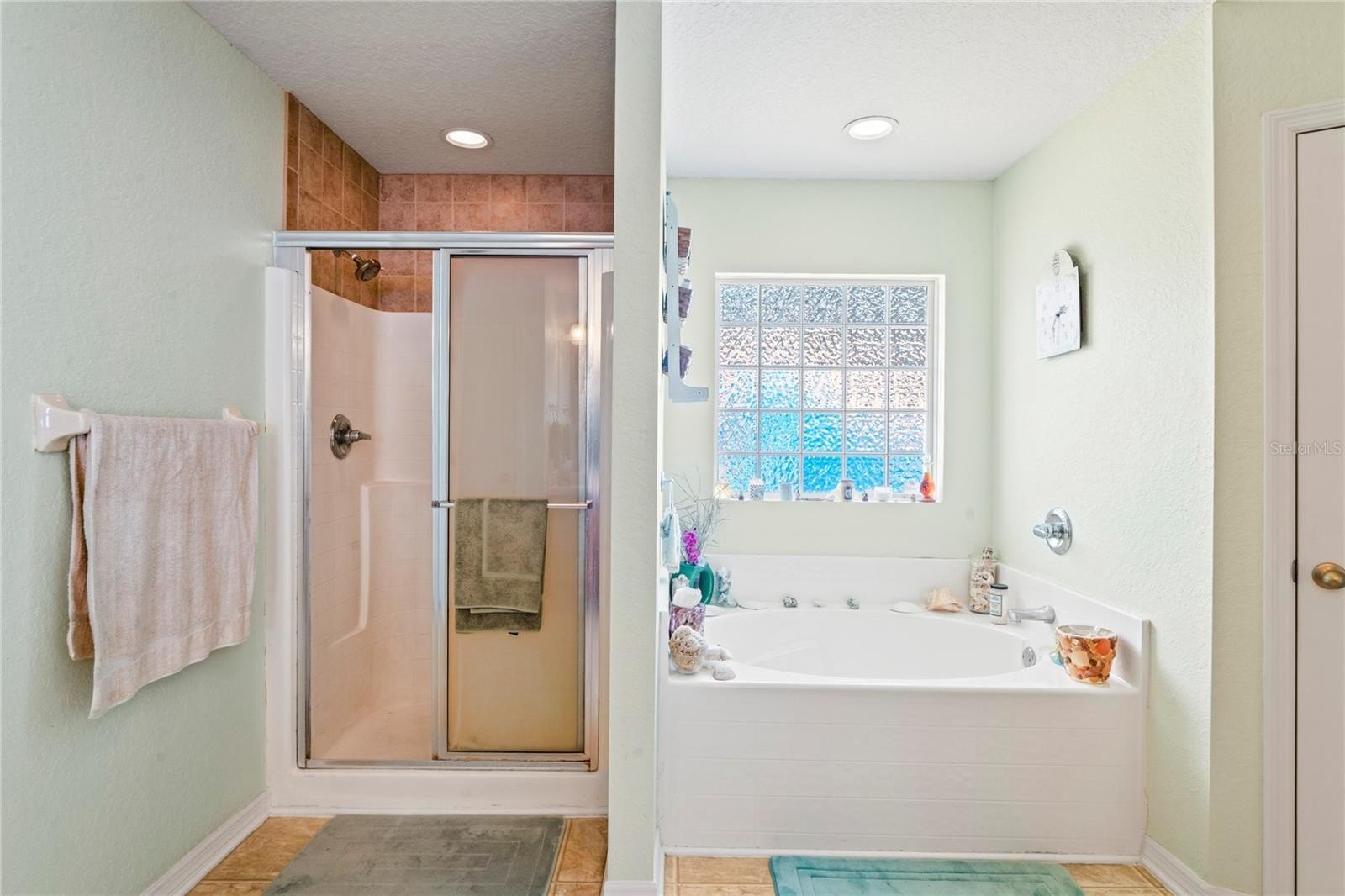 The primary suite is a true retreat with two walk-in closets, a relaxing garden tub, separate shower, dual sinks, and linen storage.