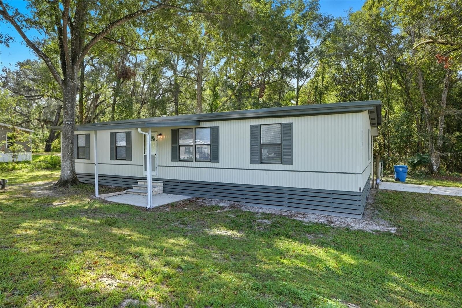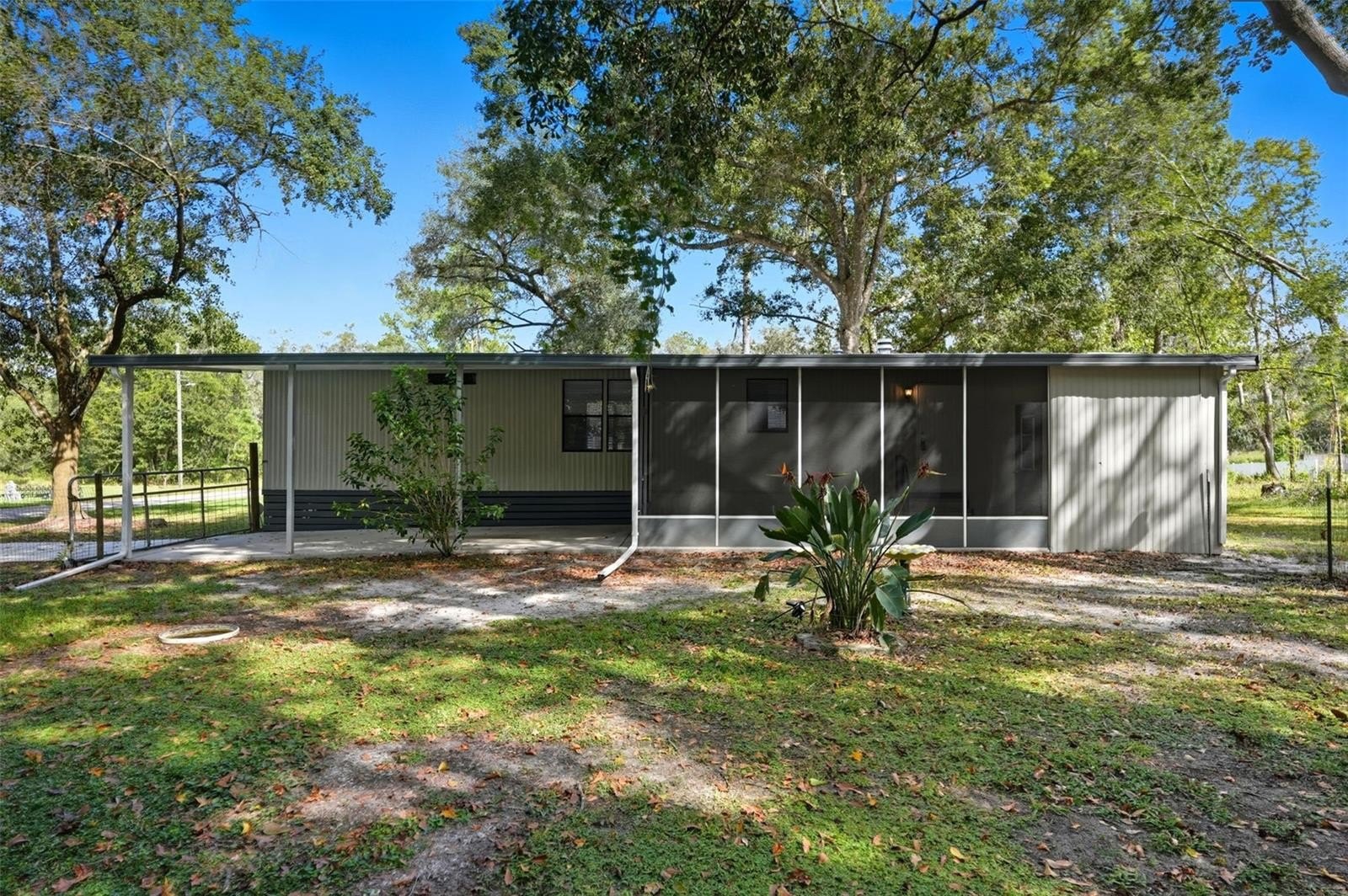 MOVE-IN READY!! COMPLETELY REMODELED with a farmhouse-style design!! Double-wide manufactured home with 3 Bedrooms + 2 Bathrooms + 1 Carport + covered screened Lanai + fenced yard for pets and family + nestled on a corner lot with almost 1/3 of an acre + NO HOA + NO LOT RENT (you own the land) + NO FLOOD!! Brand NEW AC!
