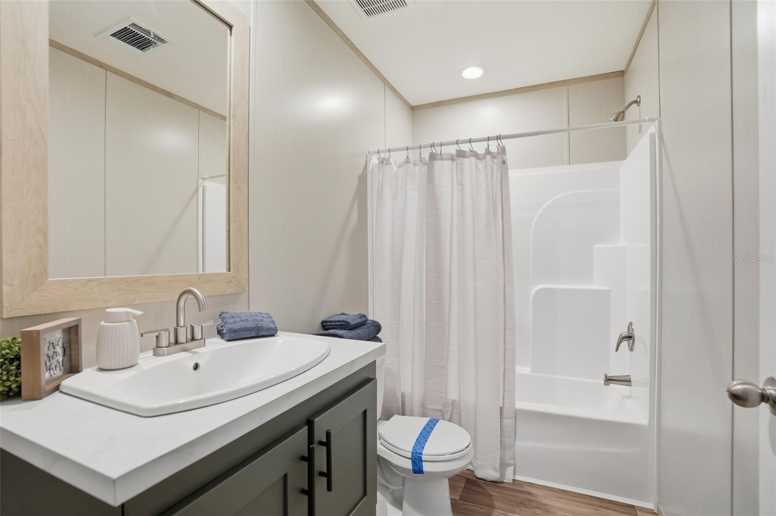 The second bathroom has a tub and shower combo with matching finishes giving that continuous feel throughout the home!!