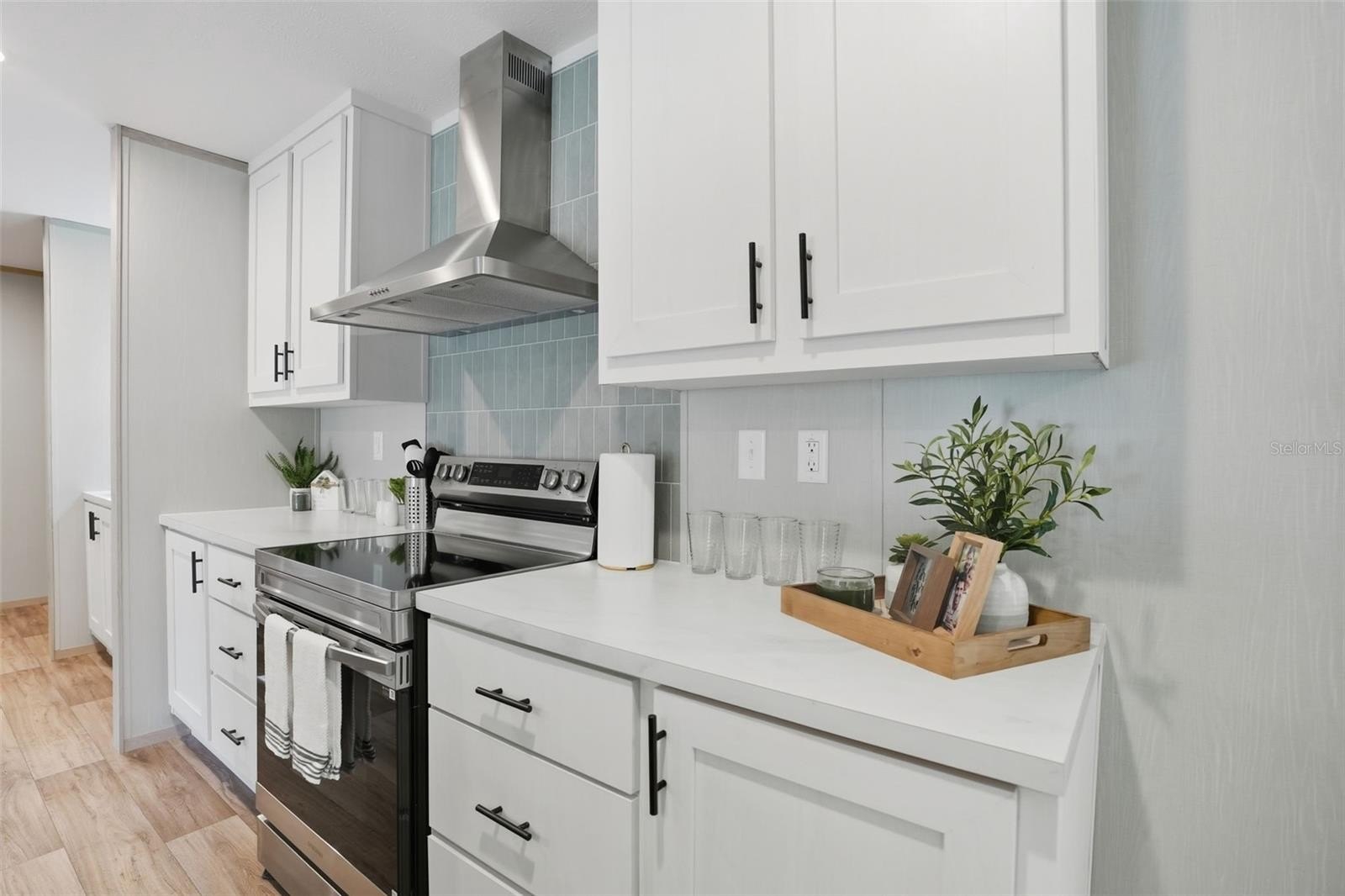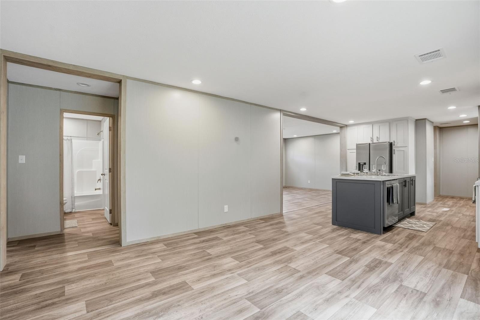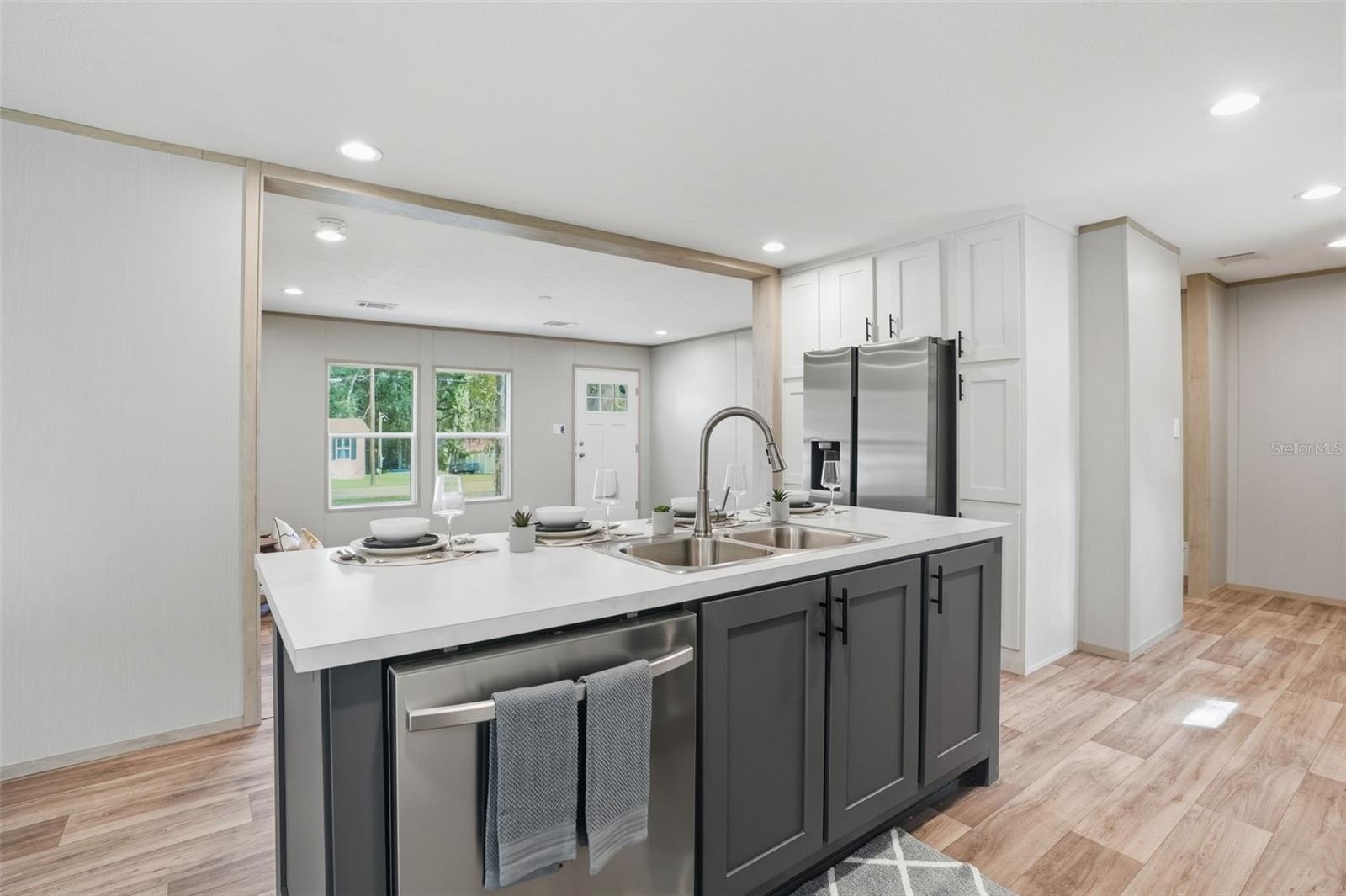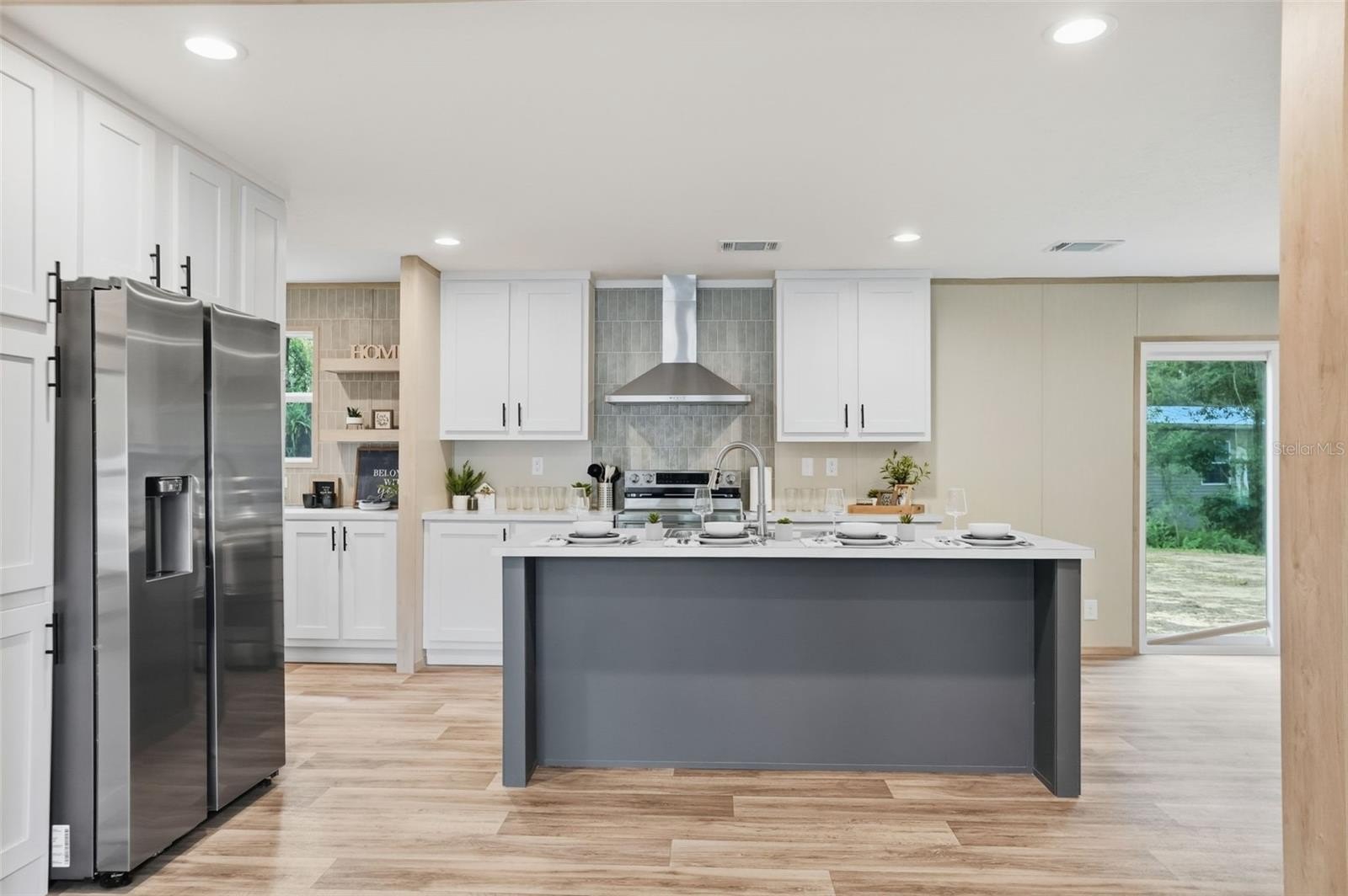 Step into the designer kitchen, where no detail has been overlooked. You’ll love the expansive center island with breakfast bar, perfect for extra seating!! The kitchen features all-new stainless steel appliances, with an extra upgraded range hood with designer backsplash (the focal point of the kitchen), real wood shaker cabinets, gorgeous modern countertops, and designer lighting, sink, and faucets. Lots of beautiful countertop space and lots of cabinets for plenty of storage!