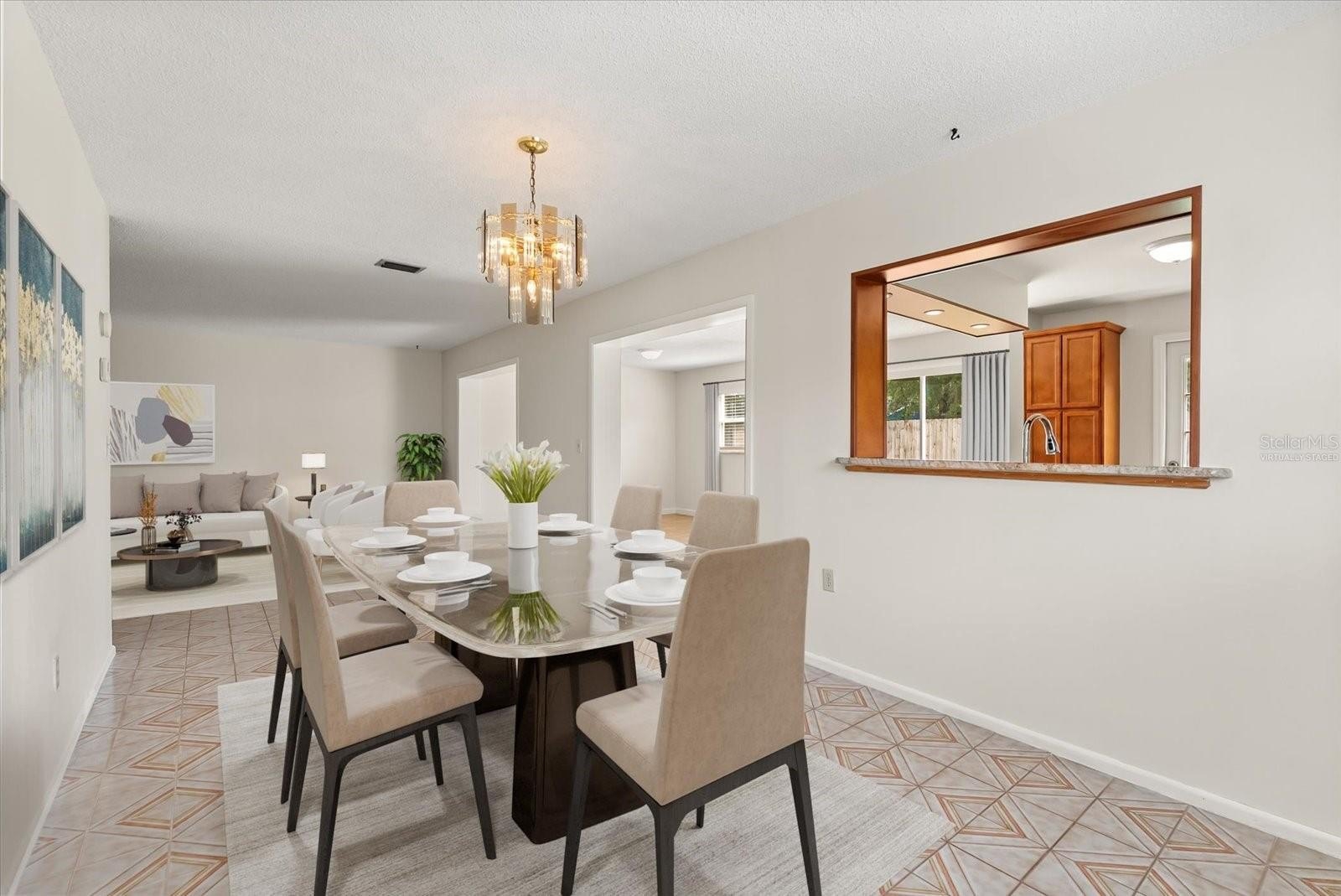 One or more photo(s) has been virtually staged. Welcome to this charming 3-bedroom, 1.5-bath home with 1,335 sq. ft. of living space, located in a prime Orlando neighborhood. Situated on a .21-acre lot, the home has been thoughtfully refreshed with a new roof (2024), fresh interior paint (2025), newer stove (2023), and window blinds (2023). Inside, you’ll find tile flooring throughout and a functional layout. The kitchen features granite countertops, wood cabinetry, and a pass-through window to the dining room, making meal prep and serving a breeze. It also opens directly to the family room, creating a welcoming space for gatherings and everyday living. All three bedrooms are conveniently located near the main bathroom, which includes a step-in shower. Outside, the large fenced-in backyard offers plenty of room for play, pets, or gardening and is enhanced by mature fruit trees, including avocado and orange.