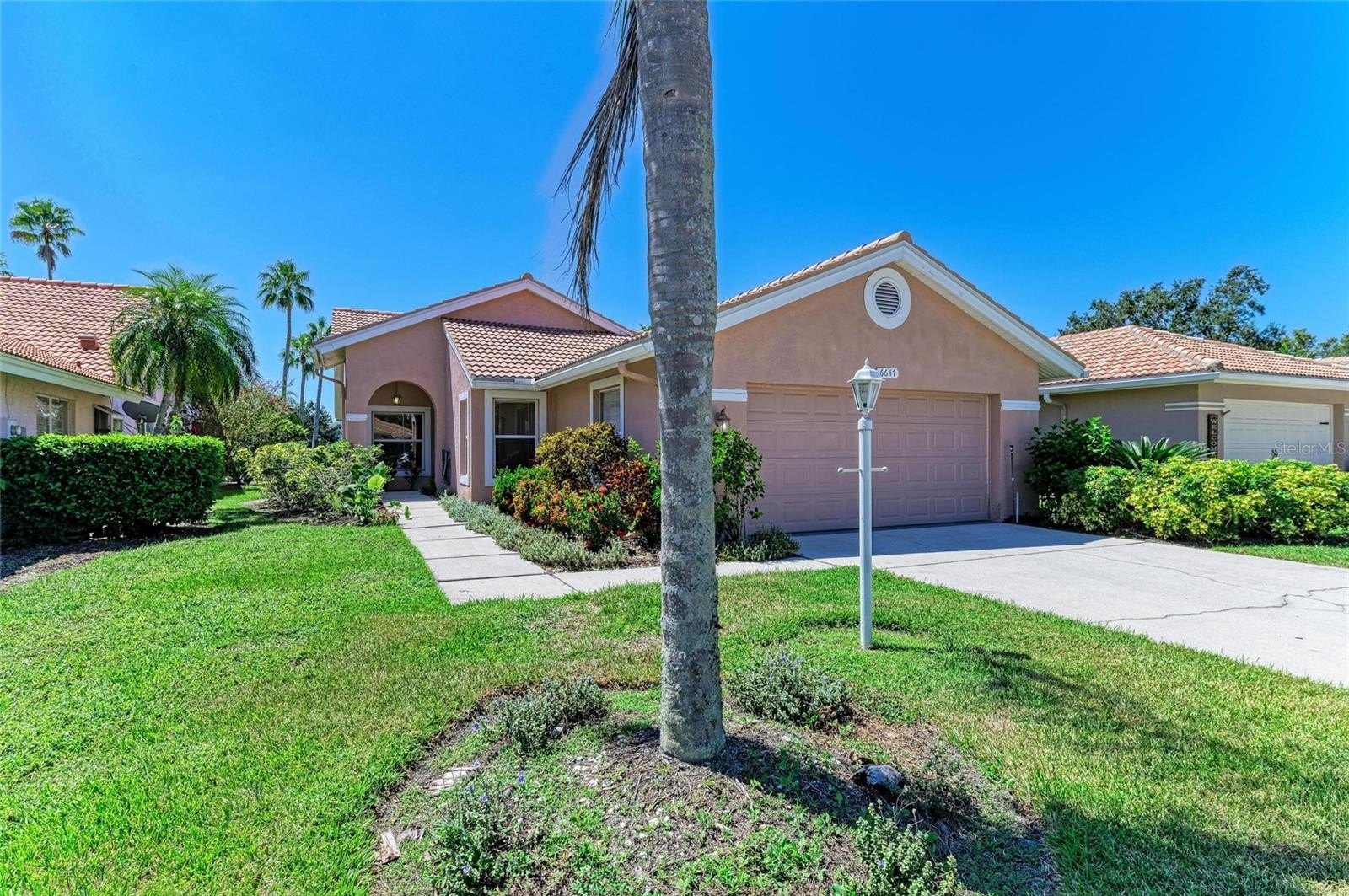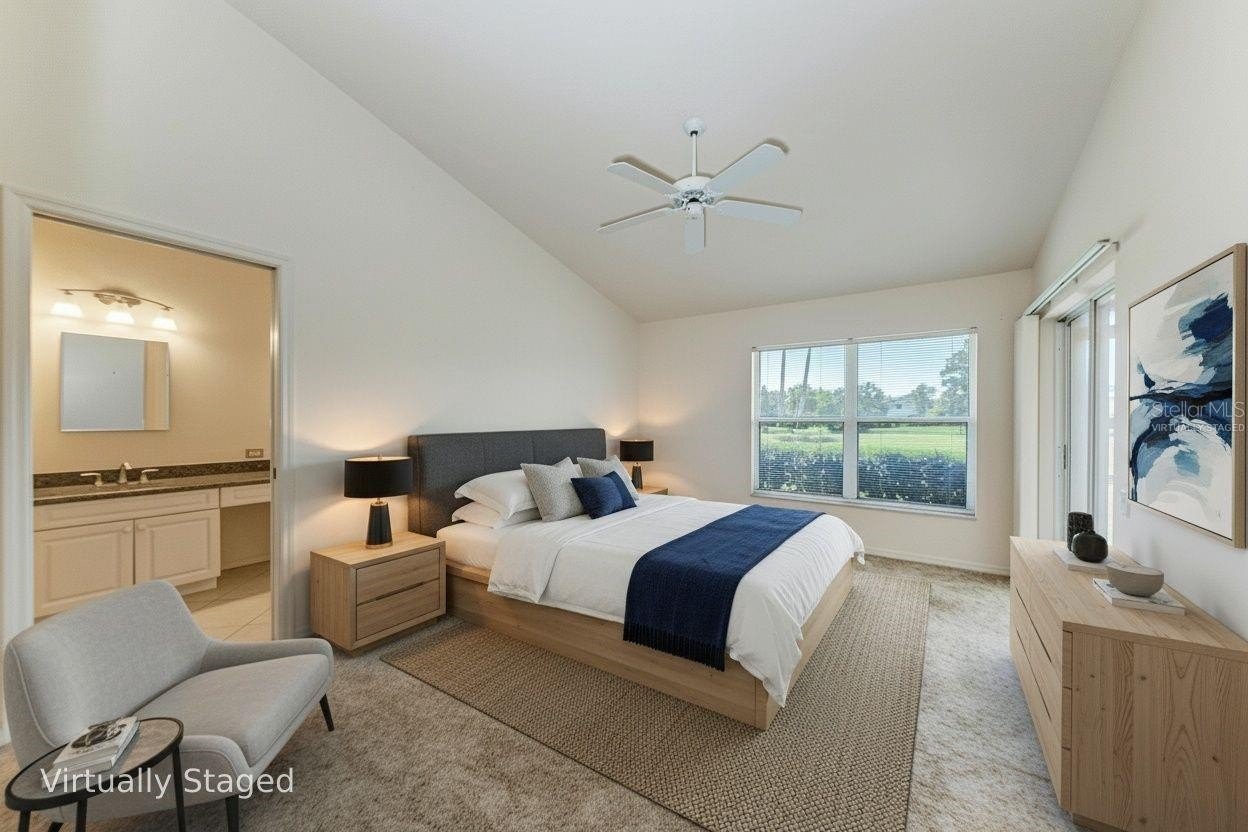 **PRICE IMPROVEMENT** The perfect LAKE and GOLF course view lot … PLUS an impeccably maintained Arthur Rutenberg home that is truly priced to sell! This spacious 2-bedroom, 2-bath home with a flexible den/office that can easily serve as a 3rd bedroom is located in the desirable maintenance-free enclave of Oakbrooke at River Club. Inside you’ll find soaring vaulted ceilings, a split floor plan for privacy, and ceramic tile throughout all main living areas, adding both style and easy maintenance. The expansive family and dining room combo opens through tri-panel sliding glass doors to the lanai, where you’ll relax and take in “picture postcard perfect” views of the serene lake, the River Club Golf Course, and stately mature oaks. The large master suite boasts an oversized walk-in closet, garden tub, dual sinks, and an updated walk-in shower with glass doors. A large picture window frames the gorgeous landscaping, lake, and golf course views, while a private sliding glass door provides direct access to the lanai, offering a seamless indoor-outdoor lifestyle. The eat-in kitchen is a delight, featuring granite countertops, a window over the sink for natural light, and a large closet pantry. Additional highlights include a 2-car garage with painted floors, utility sink, cabinets, shelving, and hurricane-reinforced garage door. Major updates provide peace of mind: NEW ROOF (2023), NEW CARRIER AC (2023), WATER HEATER (2022), BOSCH dishwasher (2018), and a new Rain Bird sprinkler control panel.