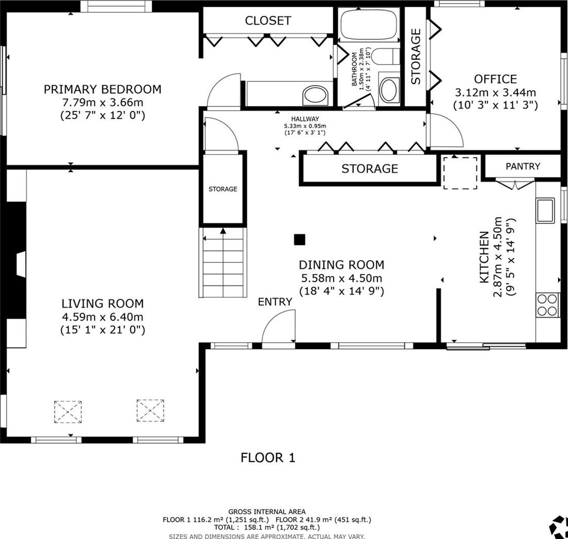 The living room includes a newly tiled fireplace and generous space for entertaining.
