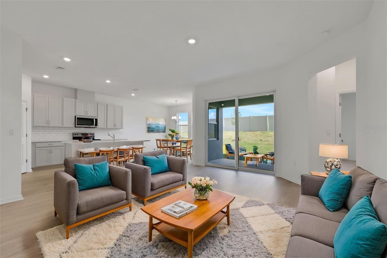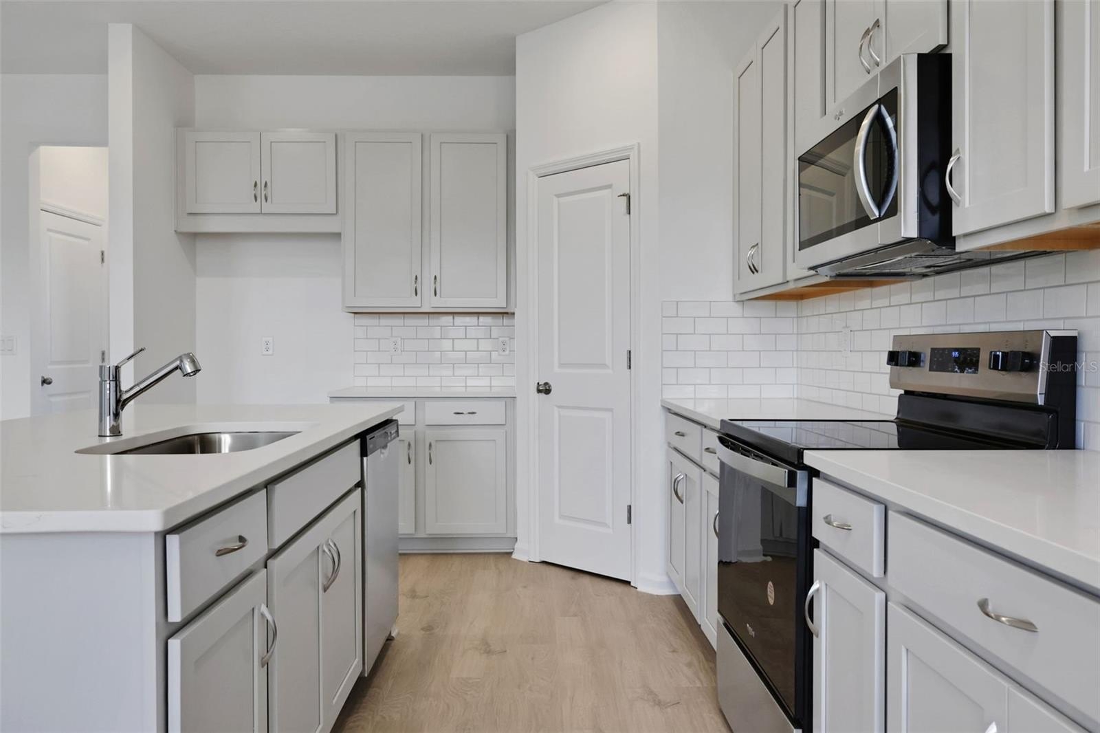 car garage. Kitchen features 42" Stone Cabinets w/Quartz Countertops. Living areas include Mohawk Revwood Laminate flooring. Covered Lanai. No rear Neighbors.