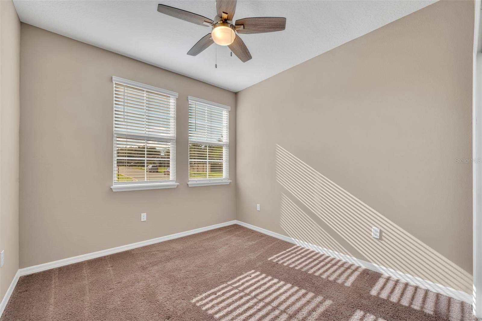The spacious primary suite offers comfort and privacy with a large walk-in closet and an elegant ensuite bathroom. The split floor plan offers a second bedroom and bath, along with a home office for those needing the work space.