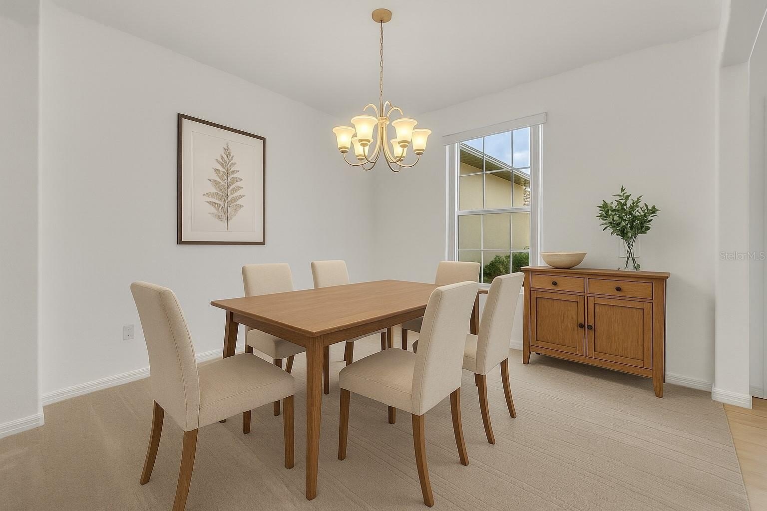 The spacious split floor plan offers 3 bedrooms, 2 bathrooms, a den, and a formal dining area, perfect for entertaining or flexible everyday living. The kitchen is the heart of the home, complete with a large island, breakfast bar, roll-out storage, pot and pan drawers, and a sunny eat-in nook. A full-size laundry room with abundant storage adds everyday convenience.
