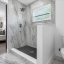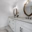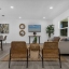 The primary suite sits just off the great room, a retreat with a walk-in closet and spa-inspired bath finished with quartz dual vanities and a glass-lined shower. Three additional bedrooms offer flexibility for guests, office, or fitness, and share a vibrant pool bath with powder-blue cabinetry and dual vessel sinks that bring personality into the design.