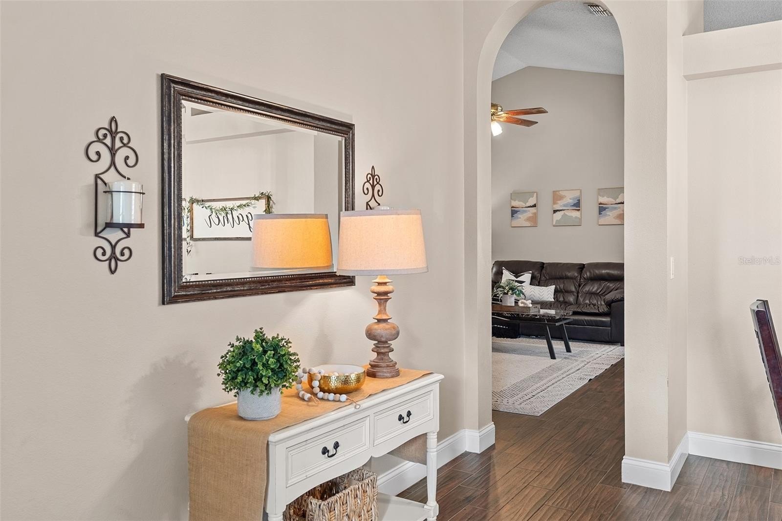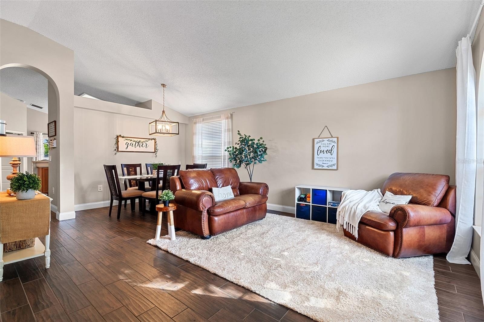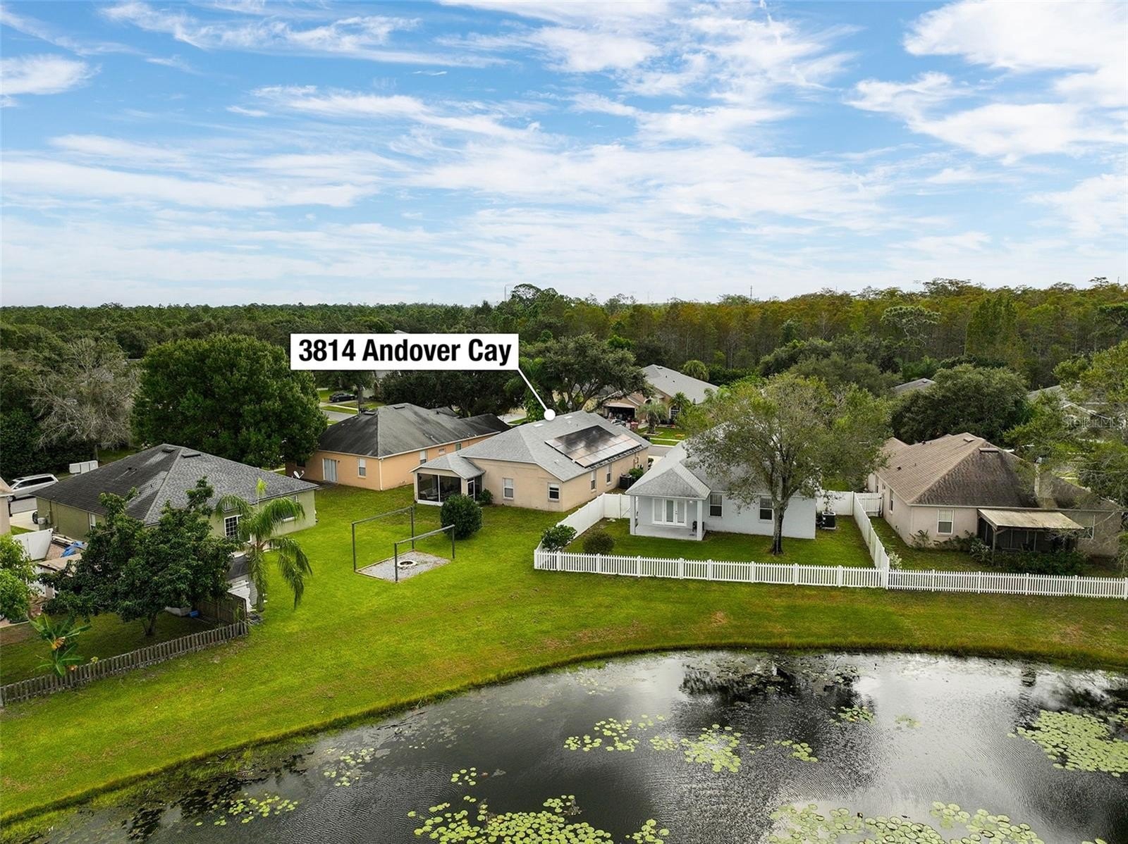 Welcome to Andover Cay! Featuring NEWER ROOF (2022), NEWER A/C SYSTEM (2022), and modern wood-look TILE FLOORING throughout main living areas! SPACIOUS with 2 LIVING ROOMS! There’s also a BREAKFAST NOOK, and COVERED SCREENED BACK PATIO with a WATER VIEW — perfect for entertaining or staying connected during family time. Enjoy morning coffee or evening sunsets over the LAKE, with plenty of room for gatherings and weekend BBQs. You'll love the TALL VAULTED CEILINGS with an open, airy feel. The PRIMARY SUITE offers soft carpet, CEILING FAN, NATURAL LIGHT, and a bonus SLIDING GLASS DOOR for direct patio access. The ENSUITE PRIMARY BATHROOM features NEW SINKS AND FAUCETS, a GARDEN TUB, WALK-IN SHOWER, NEW TOILET, and a WALK-IN CLOSET. Two additional bedrooms share a bathroom that has been updated in recent years with a new vanity sink. The 3rd BEDROOM IS HUGE! The neighborhood comes with amenities including a COMMUNITY POOL, SAND VOLLEYBALL COURT, and TWO PLAYGROUNDS. It’s located close to highways 417 and 408, Waterford Lakes Town Center, UCF, and just 20 minutes from the Orlando International Airport. Conveniently, take over the leased SOLAR PANELS to continue average savings of 22% per year on electricity bill! WATCH VIRTUAL / VIDEO TOUR to see more of the house!