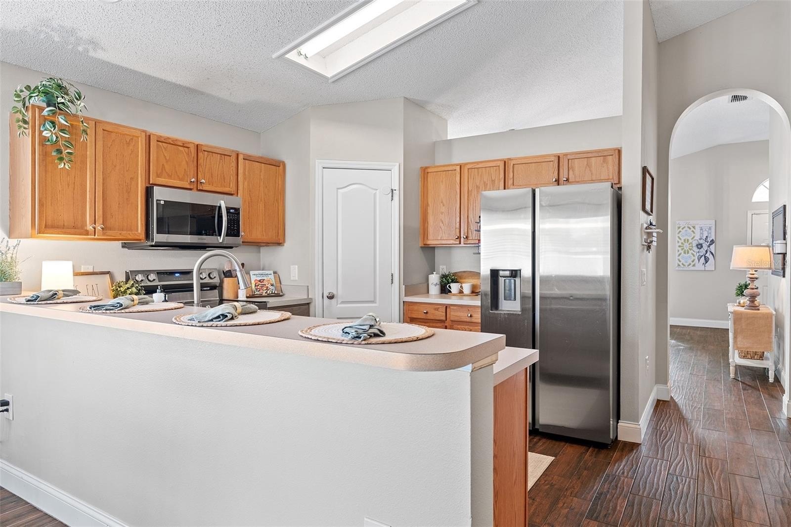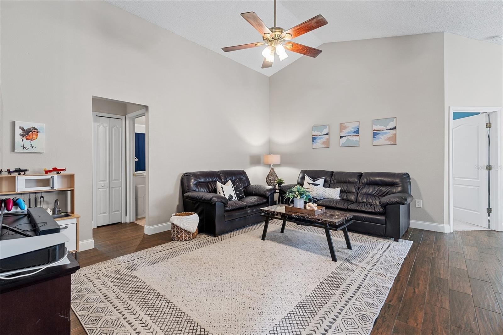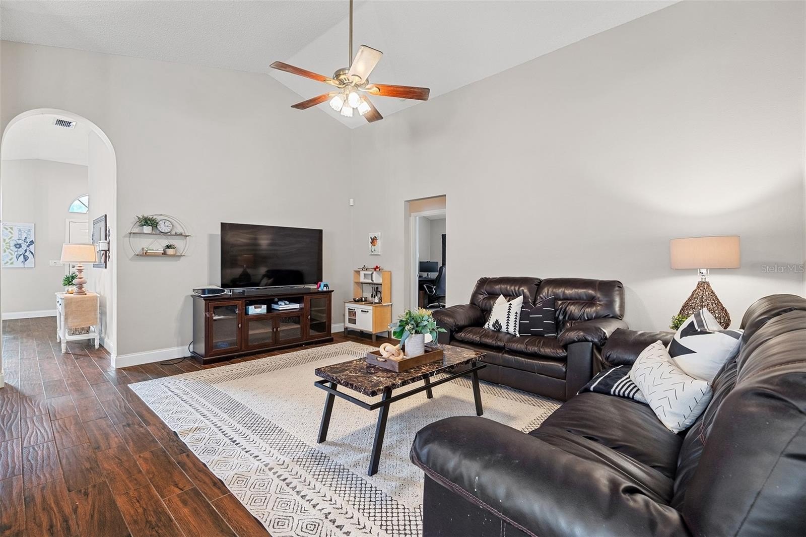 Welcome to Andover Cay! Featuring NEWER ROOF (2022), NEWER A/C SYSTEM (2022), and modern wood-look TILE FLOORING throughout main living areas! SPACIOUS with 2 LIVING ROOMS! There’s also a BREAKFAST NOOK, and COVERED SCREENED BACK PATIO with a WATER VIEW — perfect for entertaining or staying connected during family time. Enjoy morning coffee or evening sunsets over the LAKE, with plenty of room for gatherings and weekend BBQs. You'll love the TALL VAULTED CEILINGS with an open, airy feel. The PRIMARY SUITE offers soft carpet, CEILING FAN, NATURAL LIGHT, and a bonus SLIDING GLASS DOOR for direct patio access. The ENSUITE PRIMARY BATHROOM features NEW SINKS AND FAUCETS, a GARDEN TUB, WALK-IN SHOWER, NEW TOILET, and a WALK-IN CLOSET. Two additional bedrooms share a bathroom that has been updated in recent years with a new vanity sink. The 3rd BEDROOM IS HUGE! The neighborhood comes with amenities including a COMMUNITY POOL, SAND VOLLEYBALL COURT, and TWO PLAYGROUNDS. It’s located close to highways 417 and 408, Waterford Lakes Town Center, UCF, and just 20 minutes from the Orlando International Airport. Conveniently, take over the leased SOLAR PANELS to continue average savings of 22% per year on electricity bill! WATCH VIRTUAL / VIDEO TOUR to see more of the house!