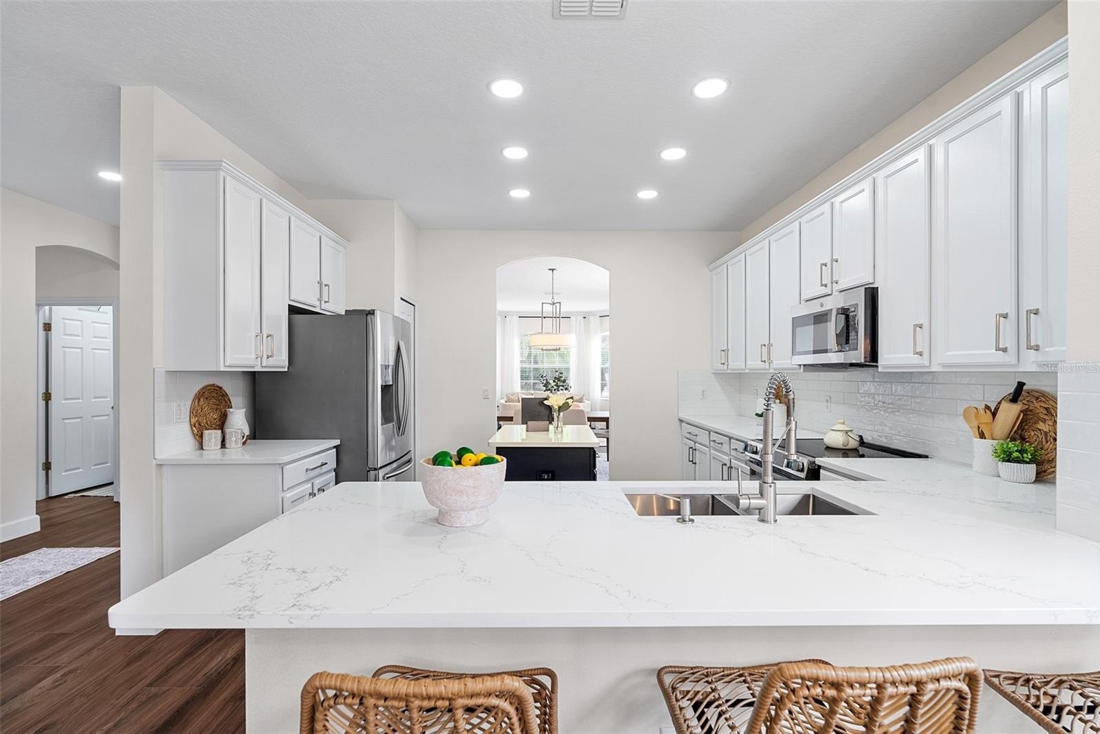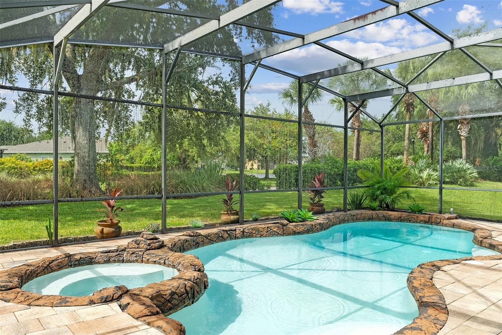 Just about everything in this SALT WATER POOL HOME has been beautifully updated! Located in the gated community of North Shore at Lake Hart, you’ll enjoy peace of mind with a BRAND NEW ROOF (2025), POOL RESURFACED (2025), NEW EXTERIOR & INTERIOR PAINT, NEW QUARTZ COUNTERTOPS, and NEW WATERPROOF LVP FLOORING, NEWER HVAC A/C (2023), WATER HEATER (2025), and much more! POOL & SPA are BOTH HEATED so you can swim and soak year-round! SCREENED-IN and COVERED LANAI makes it easy to relax or entertain, rain or shine. You’ll love the 3-CAR GARAGE for all your vehicles, storage, or weekend toys. Inside, the bright and open layout flows perfectly. The UPDATED KITCHEN features QUARTZ COUNTERTOPS, DEEP SINK, MODERN BACKSPLASH, REFINISHED CABINETS, and a CONVENIENT ISLAND. You’ll love the BAY WINDOWS in the BREAKFAST NOOK — they fill the space with natural light and overlook the POOL & LAKE VIEW beyond on the northeast side of the property. The home includes MULTIPLE LIVING AREAS — including a huge FAMILY ROOM, a MAIN-FLOOR BEDROOM next to a FULL BATHROOM downstairs, and an INDOOR LAUNDRY ROOM with additional storage. Upstairs, the PRIMARY SUITE is a dream with a TRAY CEILING, WALK-IN CLOSET, GARDEN TUB, WALK-IN SHOWER, and QUARTZ COUNTERS & new mirrors. Rest of the 3 bedrooms, all freshly painted with ceiling fans, complete the space upstairs along with a BUILT IN OFFICE DESK landing zone upstairs. Located in the highly sought after North Shore at Lake Hart a TREE-LINED COMMUNITY near LAKE NONA, you’ll enjoy TOP-RATED SCHOOLS, wide SIDEWALKS, and amenities including Community Pool, Indoor Fitness Center, Basketball and Tennis Courts, Playground, Baseball Field, and Golf Course Access. Bonus! Community dock area at the end of Mallard Landings Way. WATCH THE VIDEO/VIRTUAL Tour to SEE MORE!