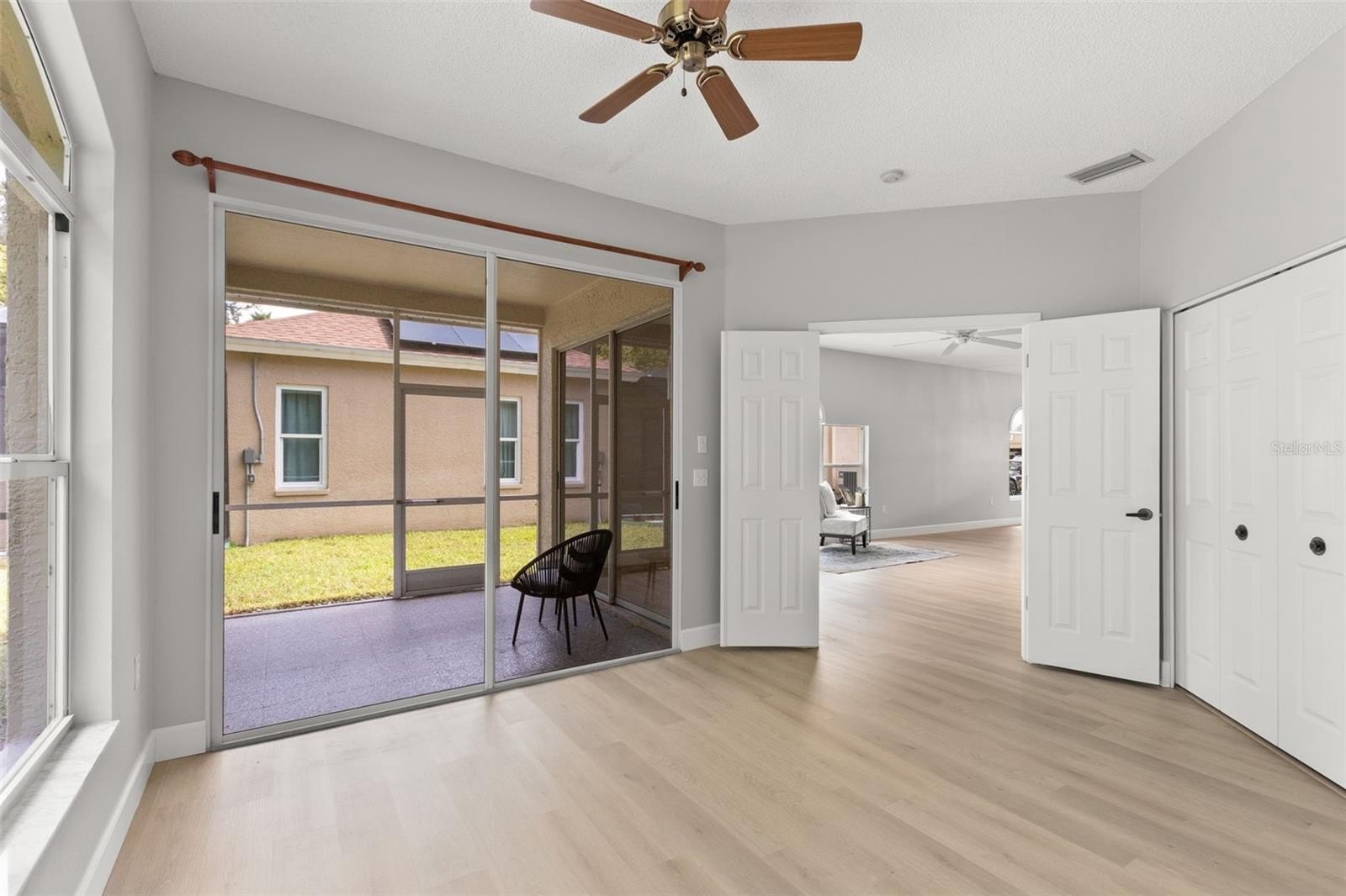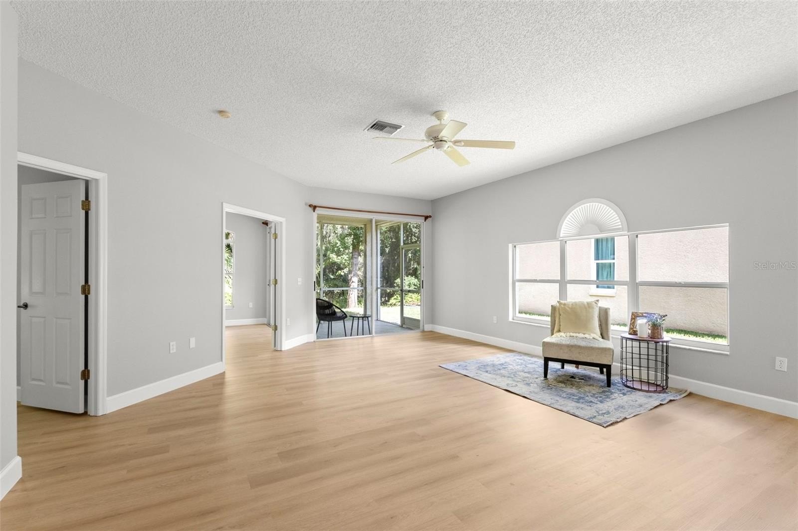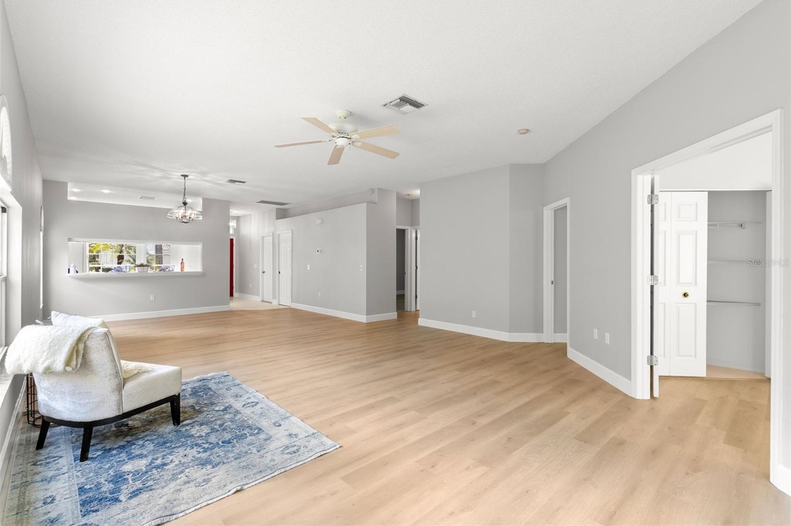 Discover the perfect blend of comfort, privacy, and resort-style living in this beautiful corner-lot home located in the desirable Kingsmill subdivision of East Lake Woodlands. With a BRAND NEW ROOF 2025, 2022 A/C system, and 2025 hot water heater, this home is move-in ready and designed for peace of mind. Step inside and be greeted by a light-filled, open floor plan that flows seamlessly from front to back. The spacious kitchen offers abundant cabinetry, a built-in pantry cabinet, and a sunny breakfast nook with large windows. The all white appliances are in great condition; A pass-through opening offers a large breakfast bar and connects to the great room, making entertaining effortless. The living and dining areas feature new laminate wood flooring and plenty of natural light, with sliding glass doors that open to a screened lanai overlooking a private conservation area—a tranquil retreat for your morning coffee or evening gatherings. Your primary suite is a true sanctuary, complete with conservation views and privacy, oversized walk-in closet with custom built-ins, dual-sink vanity with makeup desk, and large step-in shower with built-in bench and a step in whirlpool tub!!!. A bonus room with pocket doors, perfect for a home office, sitting room, or third bedroom, with its own lanai access is located immediately off the primary suite and the living room. The second bedroom is privately located toward the front of the home and offers plantation shutters and peaceful conservation views, while the full guest bath includes a step-in shower with glass doors and a linen closet. Practical touches include a two-car garage with extra cabinetry, a laundry room with washer/dryer hook-ups, utility sink and shelving, and tile flooring in the entry, kitchen, and laundry for easy maintenance. Living here means more than just making a home—it’s a lifestyle. East Lake Woodlands is a gated community known for its natural beauty, security, and abundant amenities. Residents enjoy golf courses, a tennis and pickleball complex, resort-style swimming pools and a fitness center for various memberships, walking and biking trails surrounded by lush Florida landscapes, a private clubhouse with dining and social events. Located in the heart of Oldsmar, you’re also just minutes from shopping, dining, top-rated schools, and the pristine Gulf Coast beaches. Don’t miss the opportunity to make this Kingsmill gem your new home. Schedule your private showing today and start living the East Lake Woodlands lifestyle!