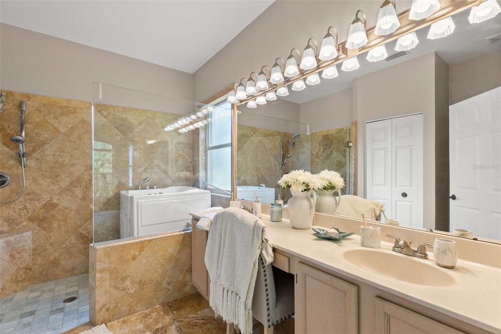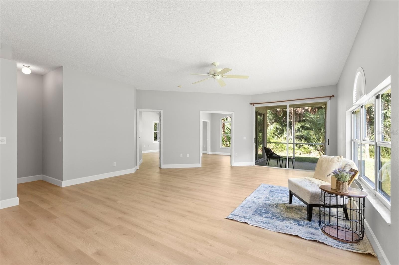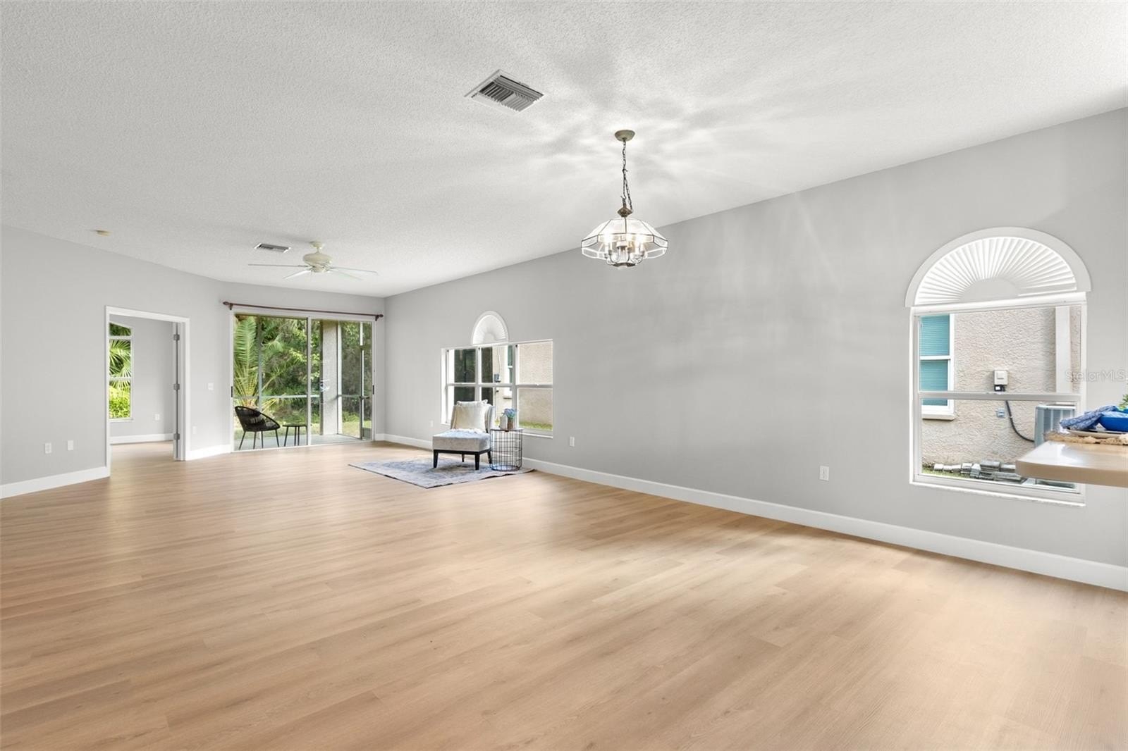 Discover the perfect blend of comfort, privacy, and resort-style living in this beautiful corner-lot home located in the desirable Kingsmill subdivision of East Lake Woodlands. With a BRAND NEW ROOF 2025, 2022 A/C system, and 2025 hot water heater, this home is move-in ready and designed for peace of mind. Step inside and be greeted by a light-filled, open floor plan that flows seamlessly from front to back. The spacious kitchen offers abundant cabinetry, a built-in pantry cabinet, and a sunny breakfast nook with large windows. The all white appliances are in great condition; A pass-through opening offers a large breakfast bar and connects to the great room, making entertaining effortless. The living and dining areas feature new laminate wood flooring and plenty of natural light, with sliding glass doors that open to a screened lanai overlooking a private conservation area—a tranquil retreat for your morning coffee or evening gatherings. Your primary suite is a true sanctuary, complete with conservation views and privacy, oversized walk-in closet with custom built-ins, dual-sink vanity with makeup desk, and large step-in shower with built-in bench and a step in whirlpool tub!!!. A bonus room with pocket doors, perfect for a home office, sitting room, or third bedroom, with its own lanai access is located immediately off the primary suite and the living room. The second bedroom is privately located toward the front of the home and offers plantation shutters and peaceful conservation views, while the full guest bath includes a step-in shower with glass doors and a linen closet. Practical touches include a two-car garage with extra cabinetry, a laundry room with washer/dryer hook-ups, utility sink and shelving, and tile flooring in the entry, kitchen, and laundry for easy maintenance. Living here means more than just making a home—it’s a lifestyle. East Lake Woodlands is a gated community known for its natural beauty, security, and abundant amenities. Residents enjoy golf courses, a tennis and pickleball complex, resort-style swimming pools and a fitness center for various memberships, walking and biking trails surrounded by lush Florida landscapes, a private clubhouse with dining and social events. Located in the heart of Oldsmar, you’re also just minutes from shopping, dining, top-rated schools, and the pristine Gulf Coast beaches. Don’t miss the opportunity to make this Kingsmill gem your new home. Schedule your private showing today and start living the East Lake Woodlands lifestyle!