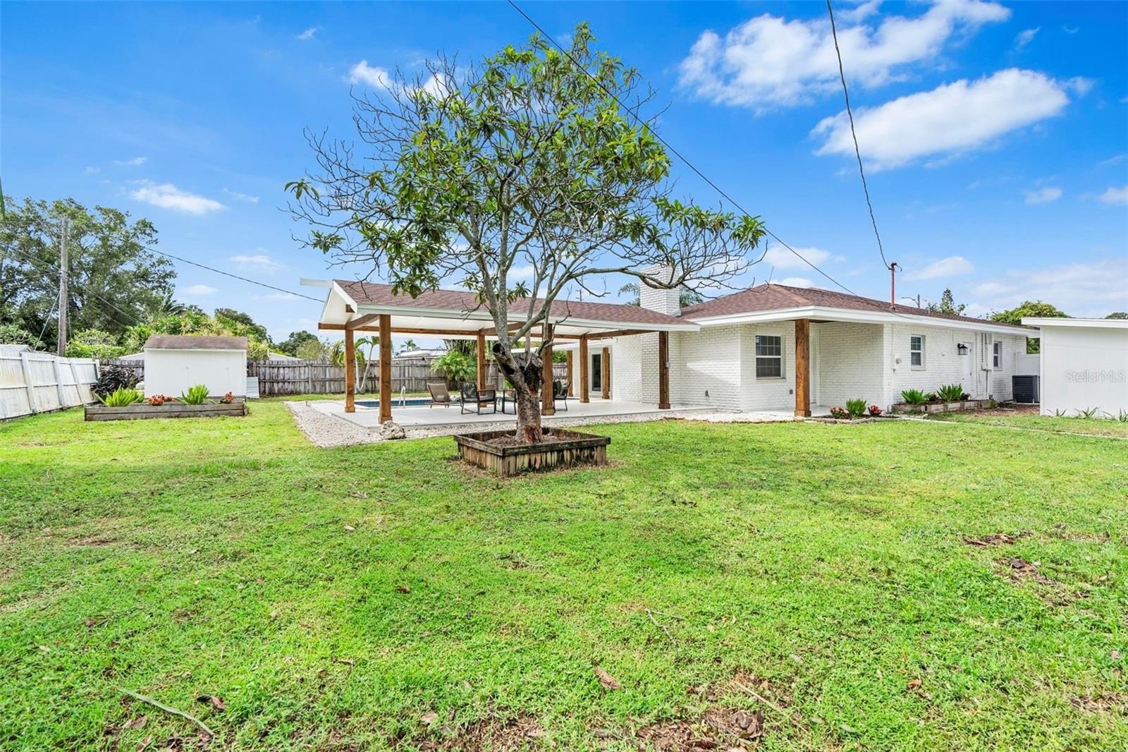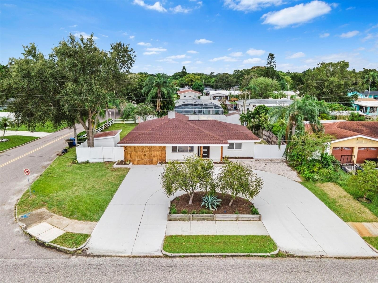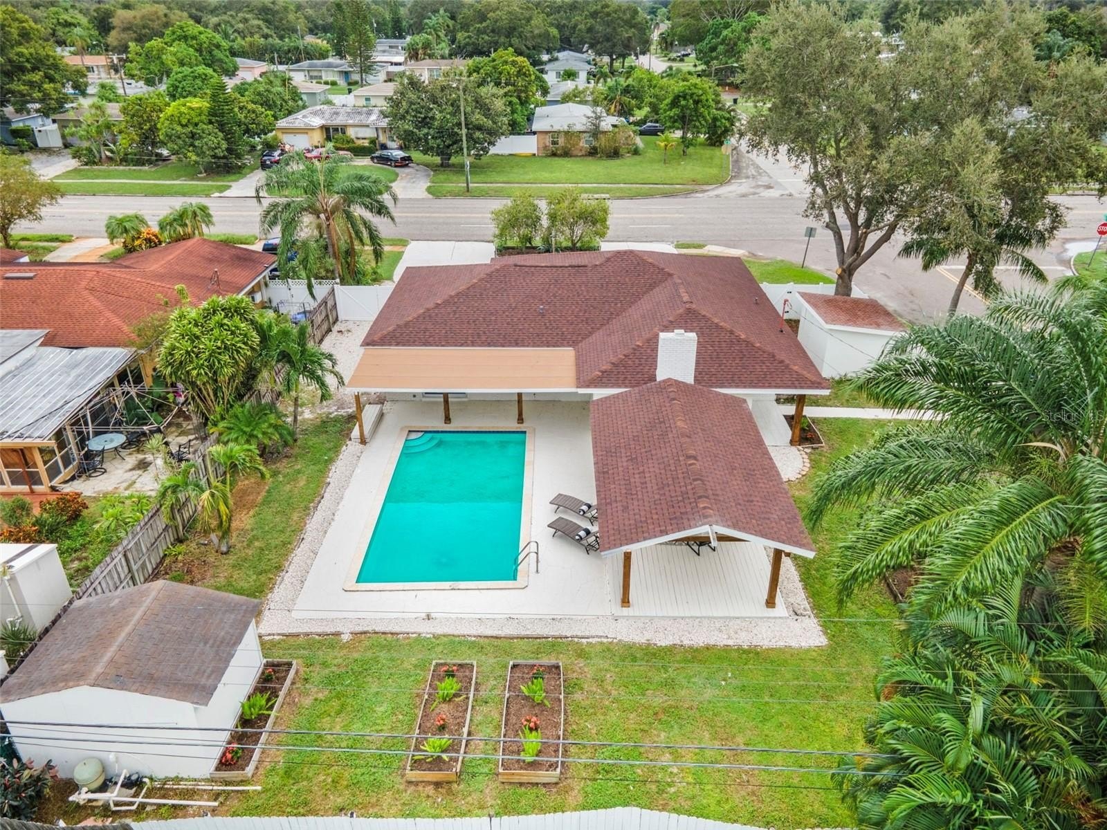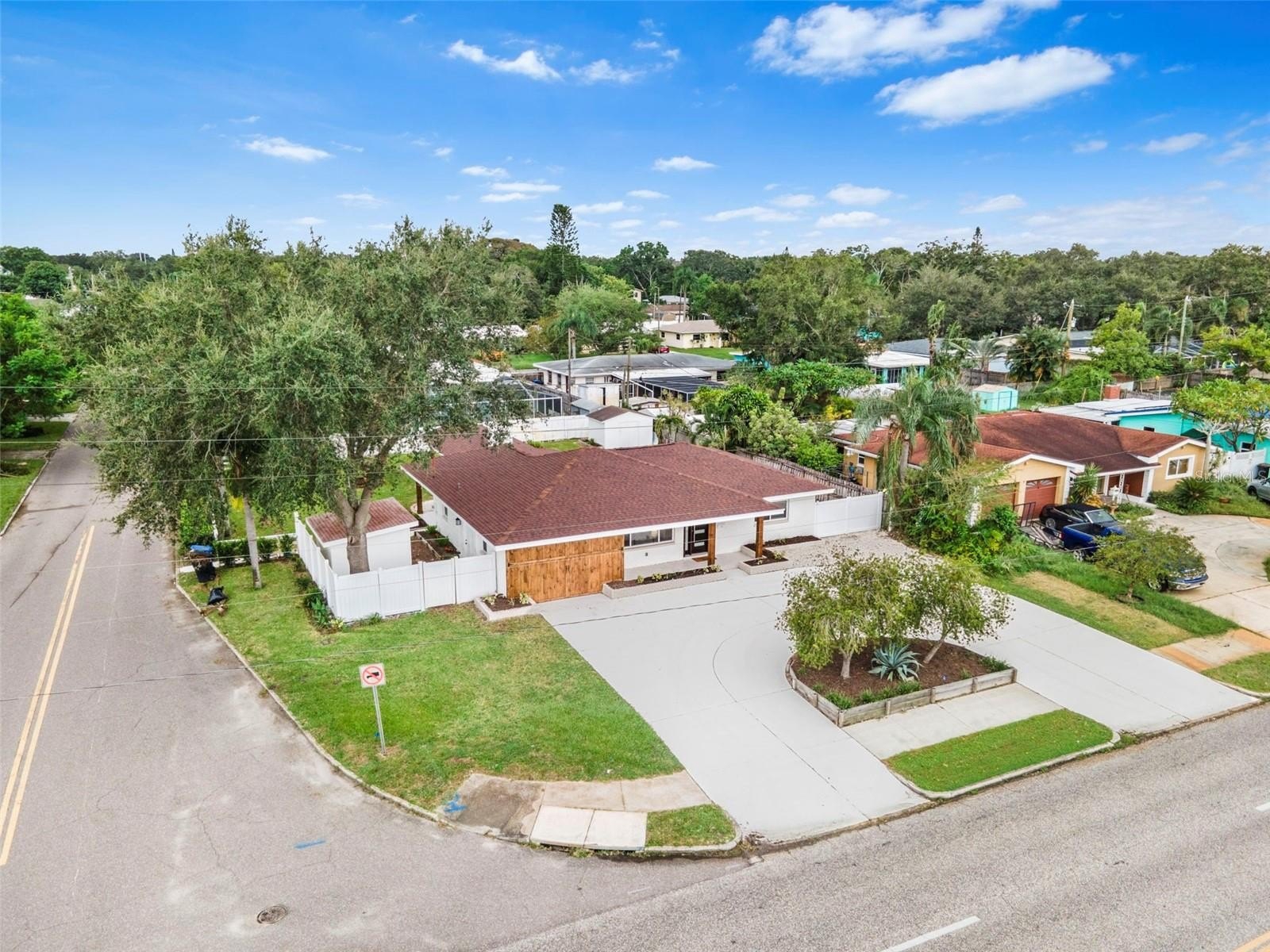 Turnkey St. Petersburg pool home with fresh curb appeal, new roof, and fenced yard. This 3BR/2BA features an open, light-filled layout with recessed night-light ceiling LEDs and a designer kitchen with modern cabinetry, stainless appliances, wine cooler, and Calacatta quartz counters/backsplash with a waterfall edge. Both baths are tastefully updated. Outdoors, enjoy a private rectangular pool, large gazebo for entertaining, two storage sheds, and dedicated boat/RV parking beside the home. U-shaped driveway provides ample off-street parking. Fresh exterior paint and lush landscaping complete the look. Central location with convenient access to shopping, dining, parks, and major routes. Stylish, low-maintenance living ready for immediate enjoyment.
