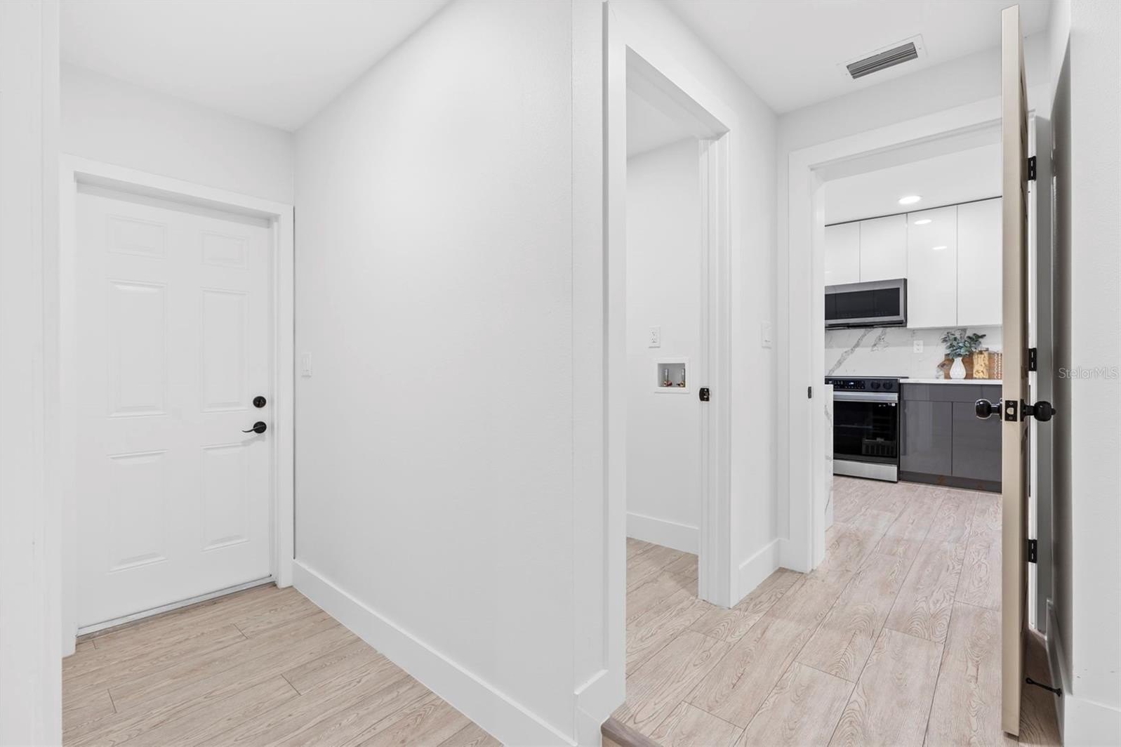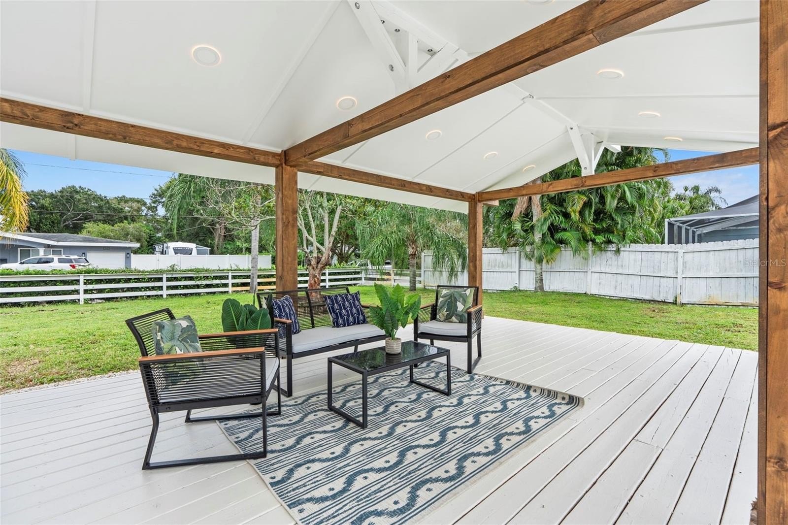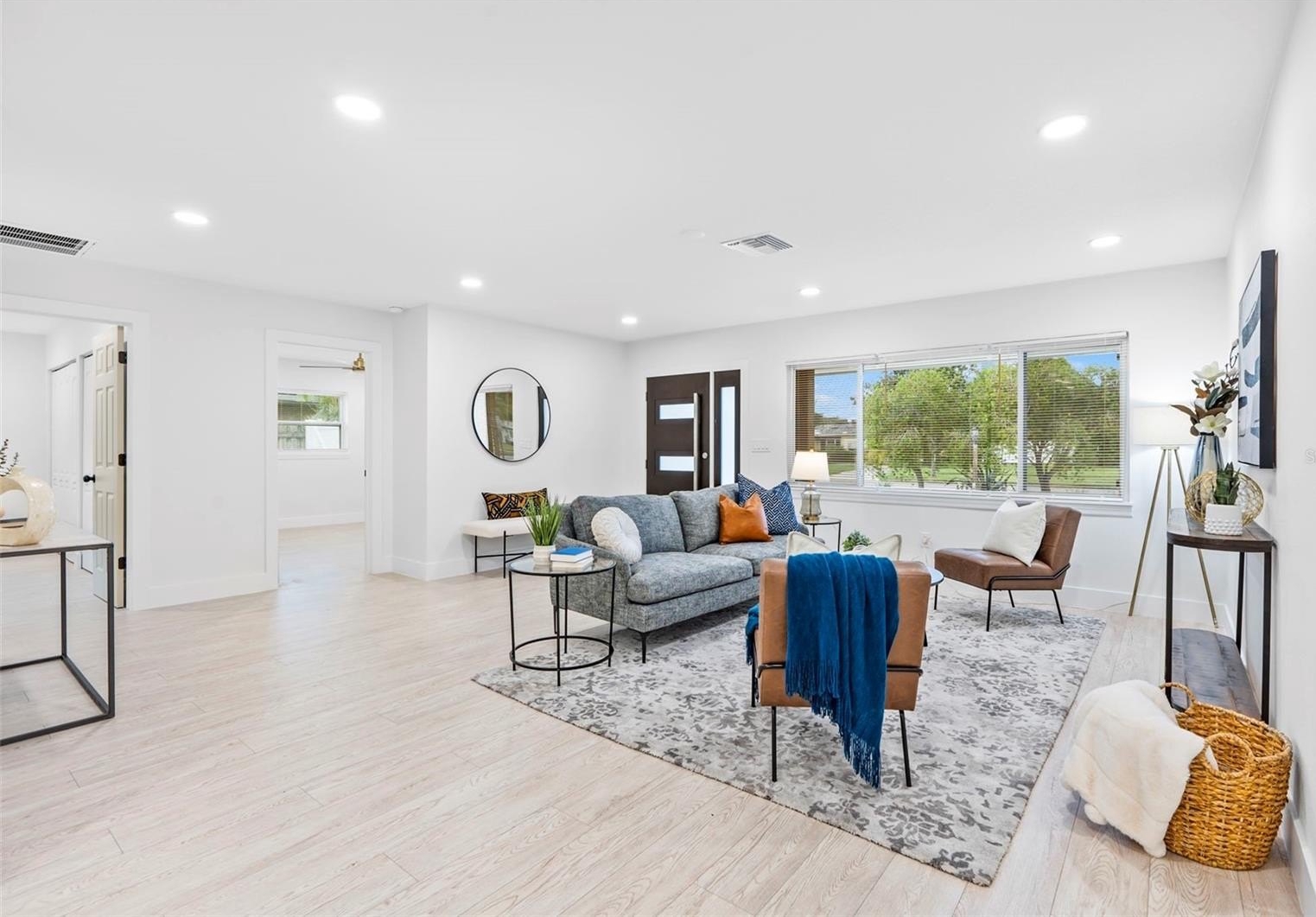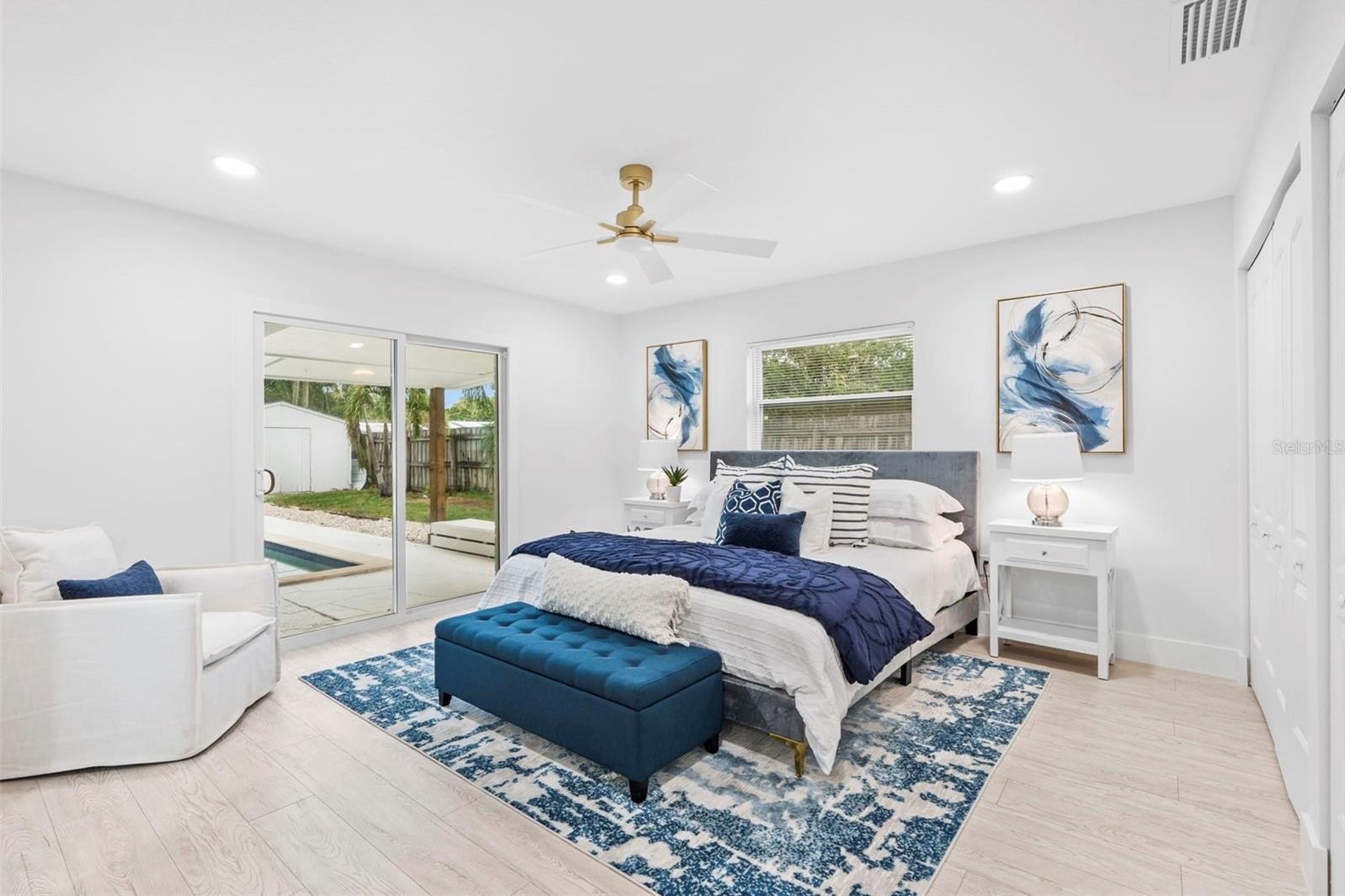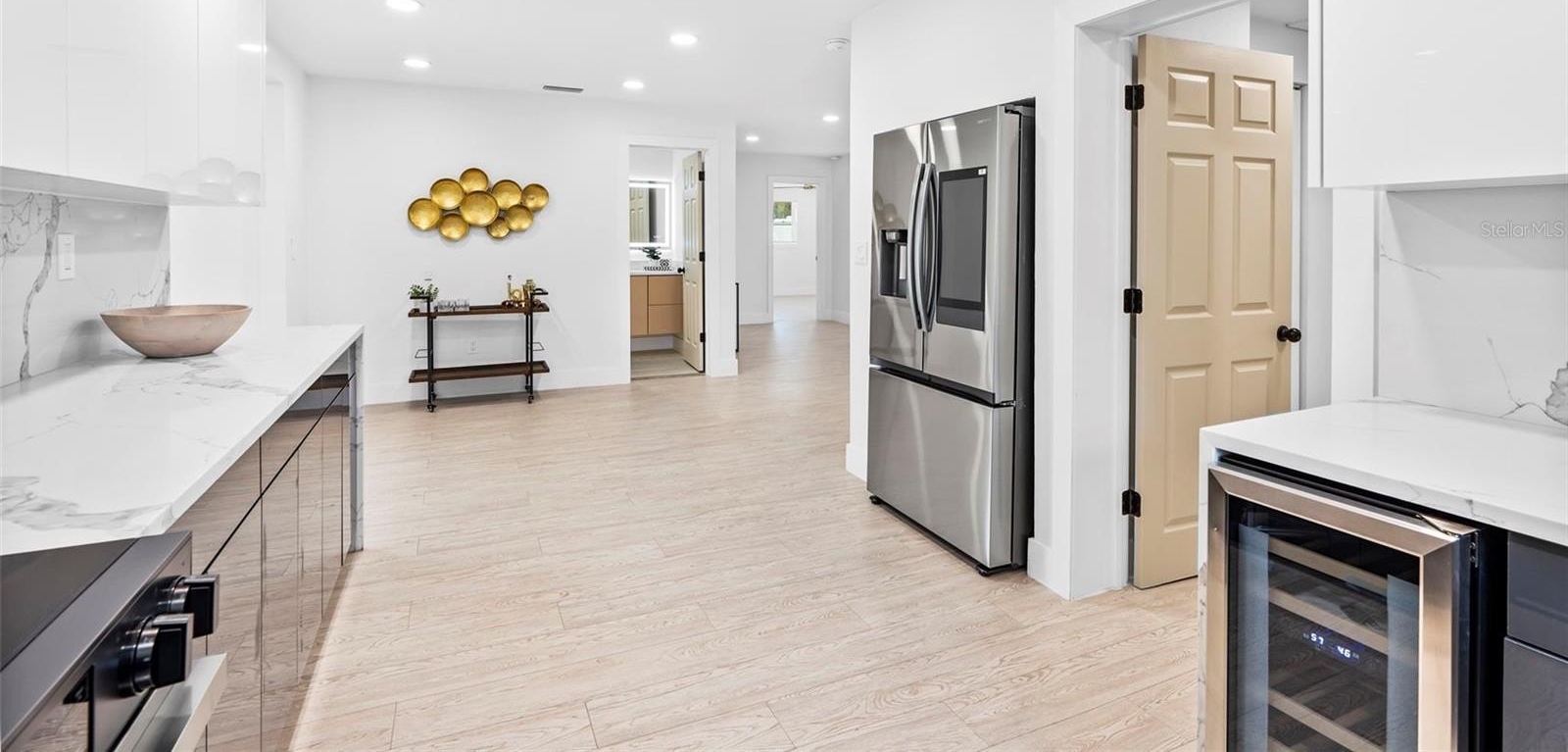 Turnkey St. Petersburg pool home with fresh curb appeal, new roof, and fenced yard. This 3BR/2BA features an open, light-filled layout with recessed night-light ceiling LEDs and a designer kitchen with modern cabinetry, stainless appliances, wine cooler, and Calacatta quartz counters/backsplash with a waterfall edge. Both baths are tastefully updated. Outdoors, enjoy a private rectangular pool, large gazebo for entertaining, two storage sheds, and dedicated boat/RV parking beside the home. U-shaped driveway provides ample off-street parking. Fresh exterior paint and lush landscaping complete the look. Central location with convenient access to shopping, dining, parks, and major routes. Stylish, low-maintenance living ready for immediate enjoyment.