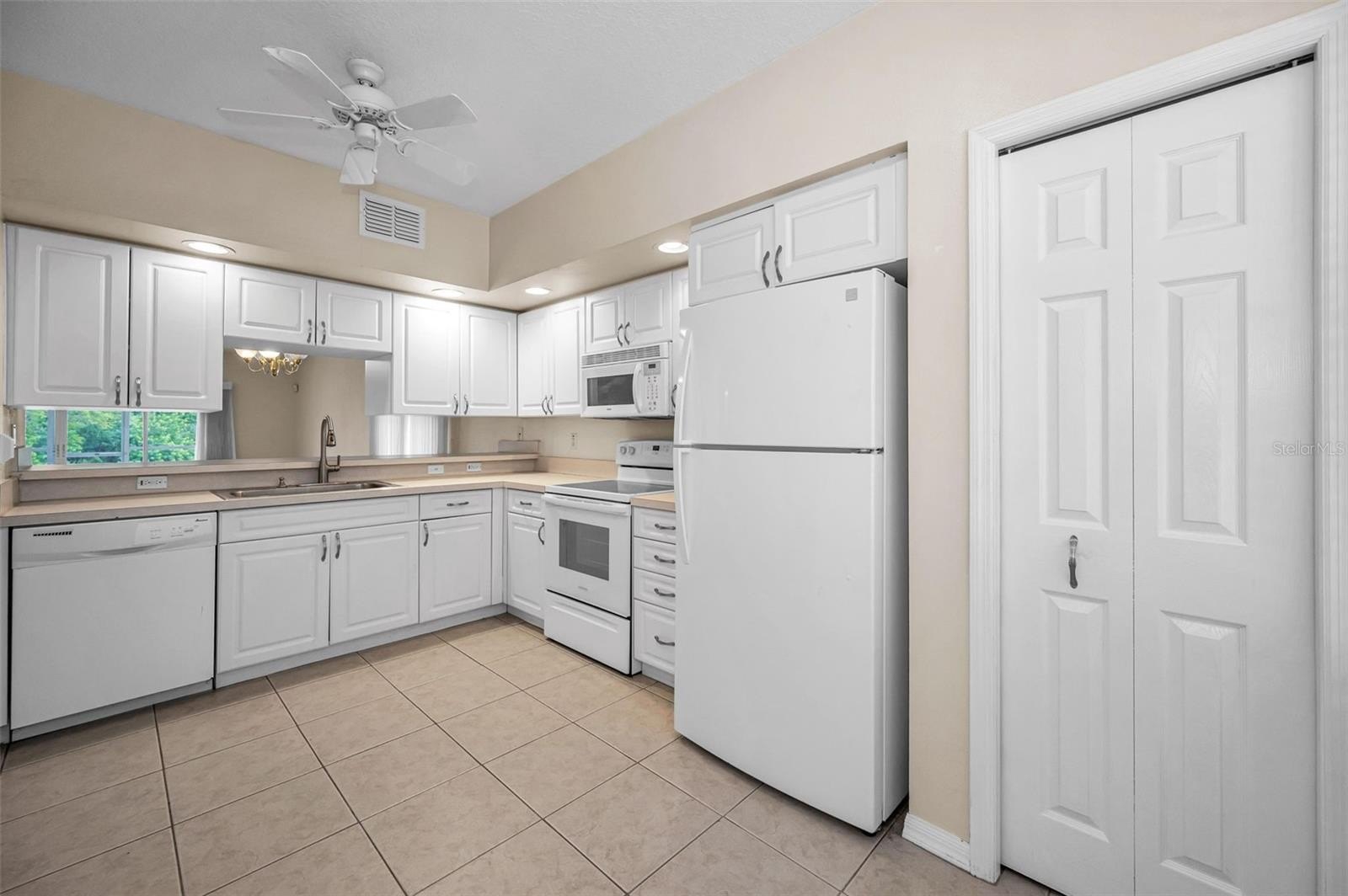GROUND FLOOR END UNIT WITH WATER VIEWS! This spacious 3-bedroom, 2-bathroom condo with a 1-car garage offers an open floor plan main living area that features a bright living and dining area with large windows that bring in natural light and showcase serene views of the community pond. The large kitchen is designed with both function in mind, offering a closet pantry, built-in spice cabinet, and extra drawers under the breakfast bar for added storage and convenience. With plenty of cabinet space and a smart layout, it’s perfect for cooking and entertaining. The primary suite includes an en-suite bathroom with a step-in shower and a walk-in closet, while two additional bedrooms offer flexibility for family, guests, or a home office. A private screened lanai is the perfect spot to relax and enjoy the peaceful water view. Located on the first floor for easy access, this condo also comes with an attached garage and in-unit laundry. The community offers a pool and clubhouse, and you’ll love being just minutes from beaches, shopping, dining, and parks. This rare 3-bedroom end unit with a garage and pond view is move-in ready—schedule your private showing today!