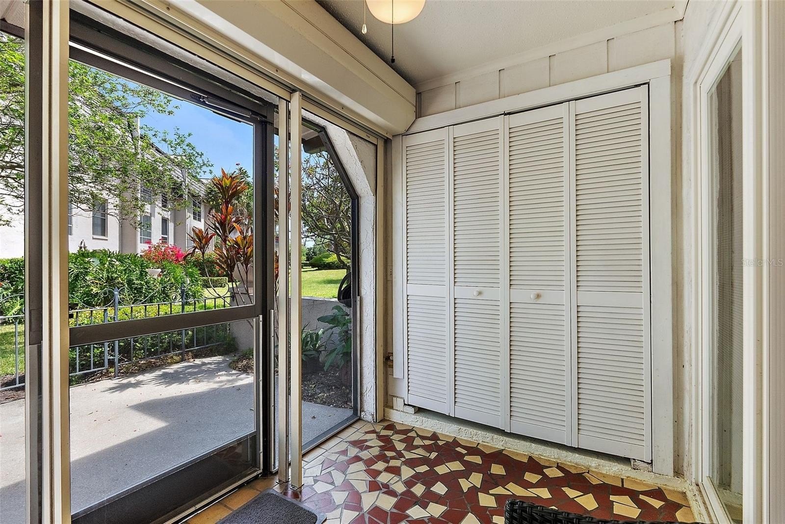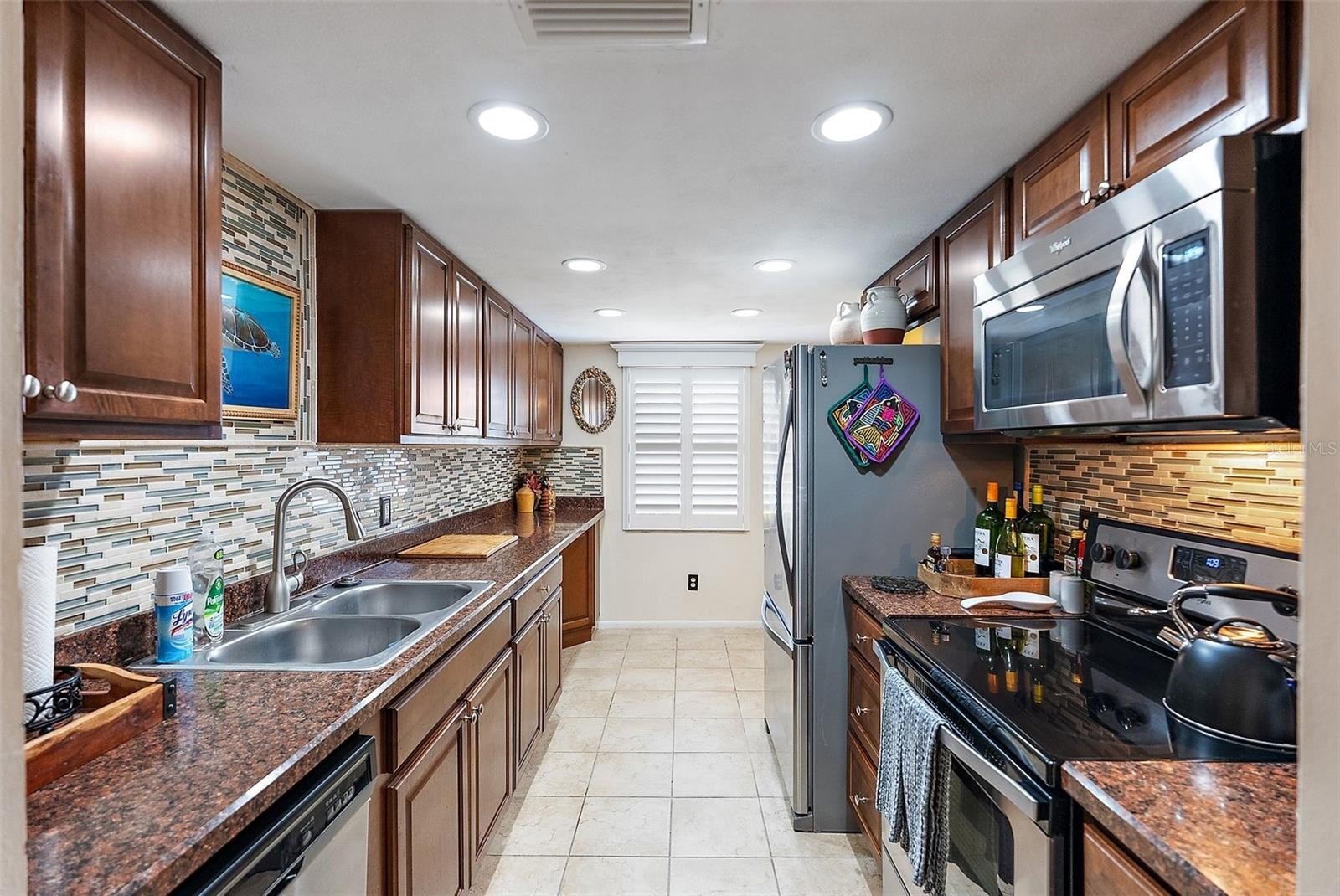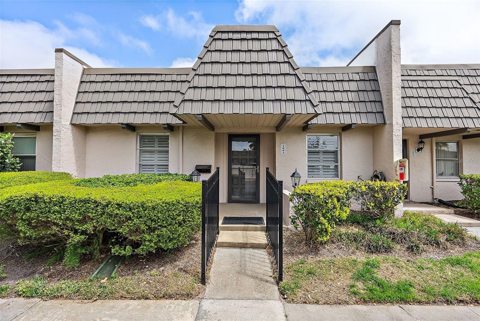 From the moment you enter the welcoming foyer—spacious enough for a bench—you’ll appreciate the thoughtful updates throughout this remodeled villa in the Cordova Greens community. The kitchen has been redesigned to maximize space, featuring 22 solid wood cabinets and 7 drawers. Extended countertops provide barstool seating area with storage below. Whirlpool stainless steel appliances include a glass-top stove, bottom-freezer refrigerator, and quiet dishwasher. And for convenience, there is a dual sink with sprayer faucet and disposer. A skinny glass tile backsplash with subtle blue accents, flat ceiling with recessed lighting adds a stylish touch. The spacious primary suite features an updated bathroom with granite counters and added shelving, a walk-in cedar closet, and upgraded large-format beige shower tile. Located at the back of the condo, the primary bedroom has a large window overlooking green space. The split-bedroom layout ensures privacy, with both suites separated from the main living areas by pocket doors. Both bathrooms offer linen closets—a feature not common in many area condos. Comfort is key with an A/C vent placed between the living and dining areas to better distribute cool air. Ceiling fans in the dining and living rooms—including two palm-blade fans—add charm and airflow. Ceiling fans are also in both bedrooms and the lanai. Fresh, neutral paint was applied in June 2023, and stone-beige tiles run throughout the unit. Closet doors are upgraded with matching modern louvered panels. Premium interior wood shutters for the front windows and custom valance boxes top each window and the slider for a classic finish. The 3-panel sliding glass door features impact-rated glass with built-in blinds. Electric roll-down HURRICANE SHUTTERS protect the screened lanai. The original sliders to the lanai from the primary bedroom were removed to create a built-in storage closet. The in-unit laundry closet on the lanai includes a side-by-side washer and dryer with shelving above. Having the W/D here helps reduce indoor heat, humidity, and noise. The A/C system (with UV light) was replaced in June 2023 and is housed with the water heater in the foyer utility closet—away from bedroom clothing storage, unlike some units. Take in the peaceful view of the green space from your screened lanai—only a short walk to the community pool, but tucked away from the activity for quiet enjoyment. Your reserved covered parking spot is directly in front, with new stair railings for comfort and a private mailbox conveniently by the front door. Cordova Greens II is a fully funded association with no upcoming assessments and a $737.49 monthly fee that includes a heated/cooled pool and hot tub, cable, internet, water, trash, plenty of guest parking, a property manager, exterior maintenance, and insurance. Bardmoor neighborhood owners have access to memberships at two country clubs with golf, tennis, pickleball, dining, and social events. It's a great area for walking and biking, and close to shopping, dining, and medical facilities. Lake Seminole, Waterfront Kayak Park, and Gulf beaches are all within 10 miles. This pet-friendly, no-age-restriction community now allows dogs up to 30 lbs. Must own for one year prior to leasing (min 1 full month at a time). Villa living offers the privacy of your own space with no one above—yet no exterior maintenance. This unit is being sold As Is with the possibility of some furnishings—come make it your own!