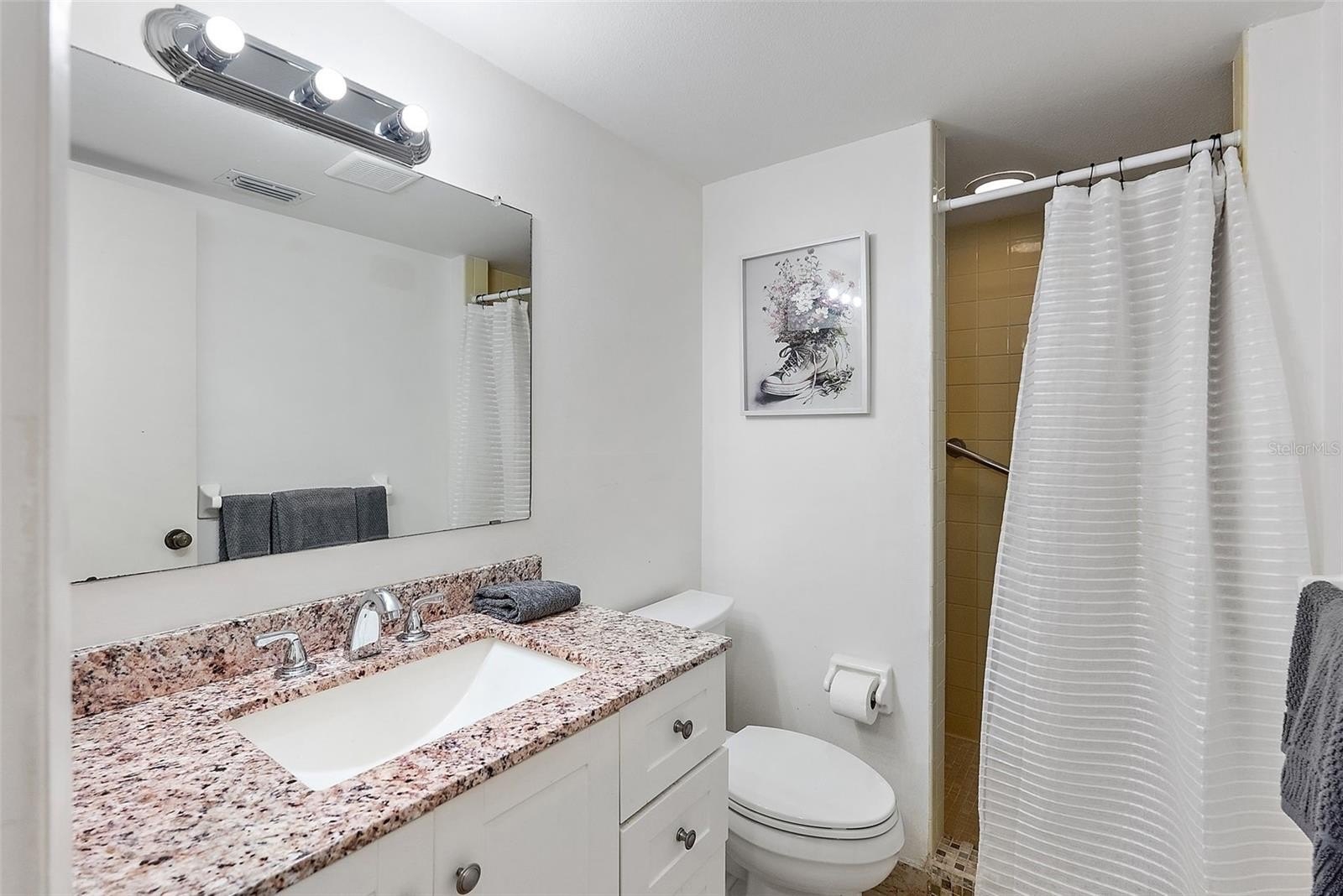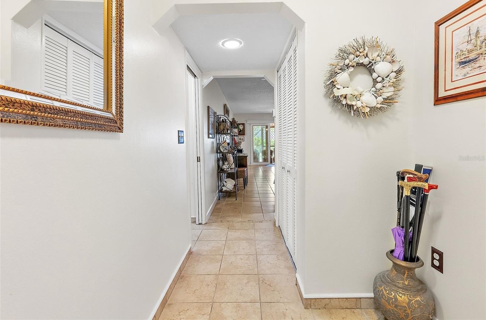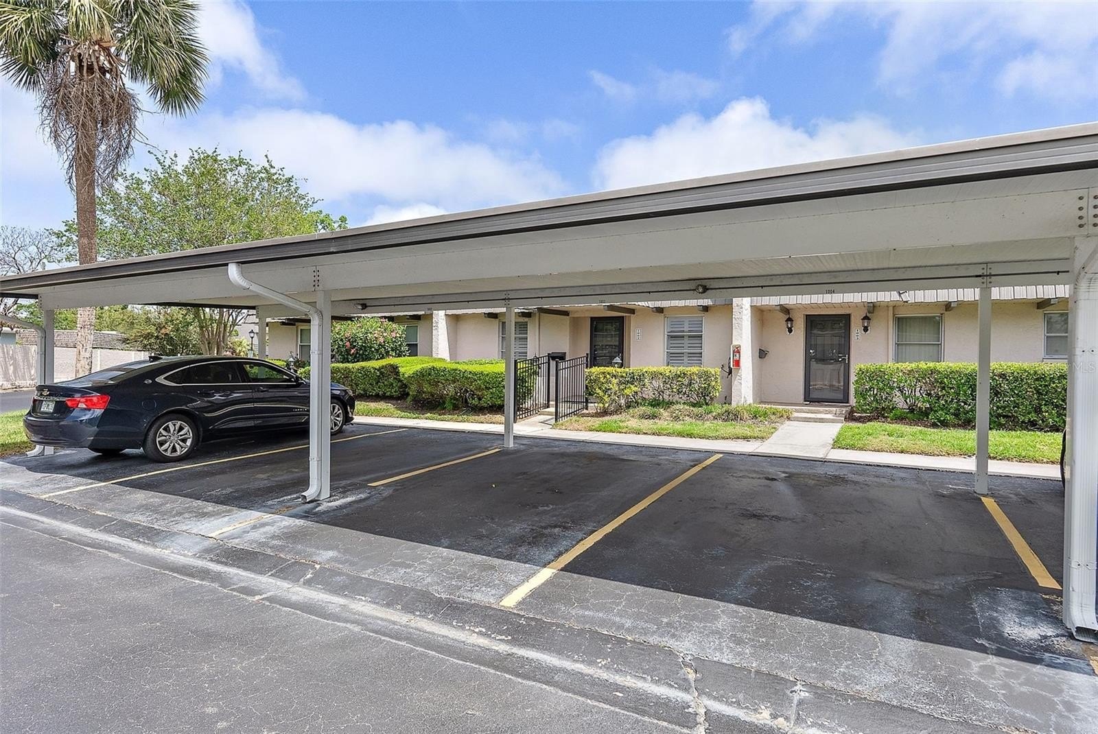From the moment you enter the welcoming foyer—spacious enough for a bench—you’ll appreciate the thoughtful updates throughout this remodeled villa in the Cordova Greens community. The kitchen has been redesigned to maximize space, featuring 22 solid wood cabinets and 7 drawers. Extended countertops provide barstool seating area with storage below. Whirlpool stainless steel appliances include a glass-top stove, bottom-freezer refrigerator, and quiet dishwasher. And for convenience, there is a dual sink with sprayer faucet and disposer. A skinny glass tile backsplash with subtle blue accents, flat ceiling with recessed lighting adds a stylish touch. The spacious primary suite features an updated bathroom with granite counters and added shelving, a walk-in cedar closet, and upgraded large-format beige shower tile. Located at the back of the condo, the primary bedroom has a large window overlooking green space. The split-bedroom layout ensures privacy, with both suites separated from the main living areas by pocket doors. Both bathrooms offer linen closets—a feature not common in many area condos. Comfort is key with an A/C vent placed between the living and dining areas to better distribute cool air. Ceiling fans in the dining and living rooms—including two palm-blade fans—add charm and airflow. Ceiling fans are also in both bedrooms and the lanai. Fresh, neutral paint was applied in June 2023, and stone-beige tiles run throughout the unit. Closet doors are upgraded with matching modern louvered panels. Premium interior wood shutters for the front windows and custom valance boxes top each window and the slider for a classic finish. The 3-panel sliding glass door features impact-rated glass with built-in blinds. Electric roll-down HURRICANE SHUTTERS protect the screened lanai. The original sliders to the lanai from the primary bedroom were removed to create a built-in storage closet. The in-unit laundry closet on the lanai includes a side-by-side washer and dryer with shelving above. Having the W/D here helps reduce indoor heat, humidity, and noise. The A/C system (with UV light) was replaced in June 2023 and is housed with the water heater in the foyer utility closet—away from bedroom clothing storage, unlike some units. Take in the peaceful view of the green space from your screened lanai—only a short walk to the community pool, but tucked away from the activity for quiet enjoyment. Your reserved covered parking spot is directly in front, with new stair railings for comfort and a private mailbox conveniently by the front door. Cordova Greens II is a fully funded association with no upcoming assessments and a $737.49 monthly fee that includes a heated/cooled pool and hot tub, cable, internet, water, trash, plenty of guest parking, a property manager, exterior maintenance, and insurance. Bardmoor neighborhood owners have access to memberships at two country clubs with golf, tennis, pickleball, dining, and social events. It's a great area for walking and biking, and close to shopping, dining, and medical facilities. Lake Seminole, Waterfront Kayak Park, and Gulf beaches are all within 10 miles. This pet-friendly, no-age-restriction community now allows dogs up to 30 lbs. Must own for one year prior to leasing (min 1 full month at a time). Villa living offers the privacy of your own space with no one above—yet no exterior maintenance. This unit is being sold As Is with the possibility of some furnishings—come make it your own!