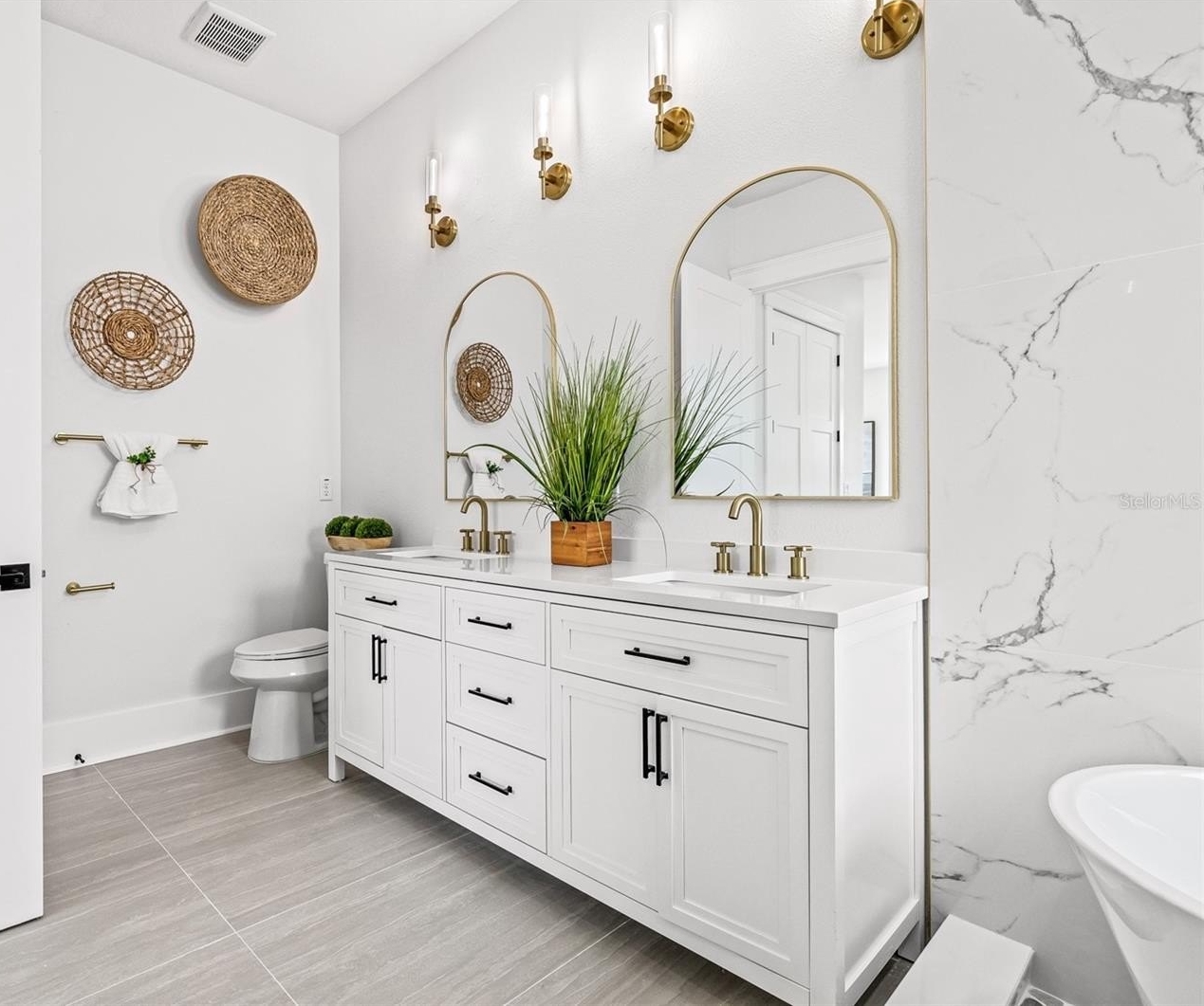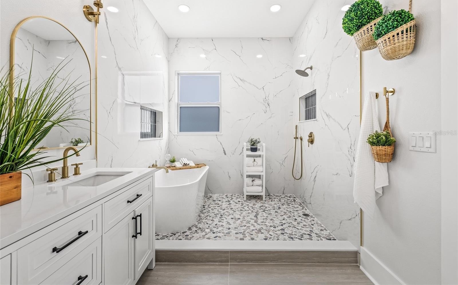 Brand-New Construction in Northeast St. Petersburg by Coastline Homes! Situated on a quiet street in the Greater Allendale area, this stunning new-construction home offers refined living in one of St. Petersburg’s most sought-after areas. Fully completed and move-in ready, this thoughtfully designed residence features 5 bedrooms + loft, 4 bathrooms, and an attached 2-car garage with alley access. Inside, you'll find 10’ ceilings, rich engineered hardwood flooring, 8’ interior doors, and high-end designer finishes throughout. Elegant trim work, oversized baseboards, and cased windows add to the home’s timeless charm. The custom kitchen is a chef’s dream with abundant cabinetry, wine fridge, ice maker, butler's pantry and stylish finishes, seamlessly connecting the dining & family room spaces. The main level bedroom with en-suite bathroom offers flexibility to serve as a playroom, home office, or guest suite, while the great room provides a comfortable space to relax or entertain. The Master Suite is a private retreat with a luxurious en-suite bathroom featuring an oversized double-sink vanity and a spa-like walk-in shower with soaking tub. Step outside to enjoy the covered front and rear porches and a fully fenced backyard with white vinyl fencing—perfectly private and offering ample space to add a future pool. Whether you're entertaining guests or enjoying a quiet evening at home, this outdoor space is ready to grow with your vision. Located just minutes from vibrant Downtown St. Pete, Gulf beaches, parks, and top-rated schools, this home blends luxury, comfort, and convenience in a location you’ll love. Don’t miss your chance to own this exceptional new home—schedule your private tour today!