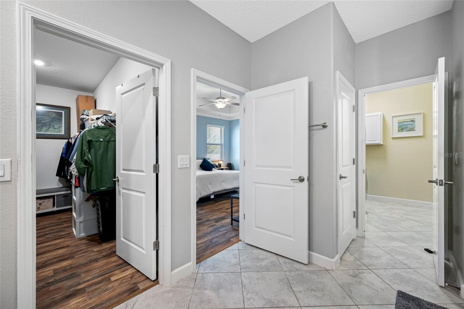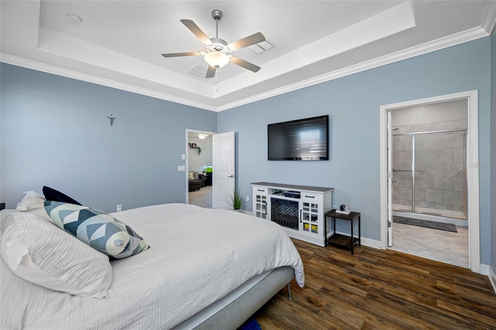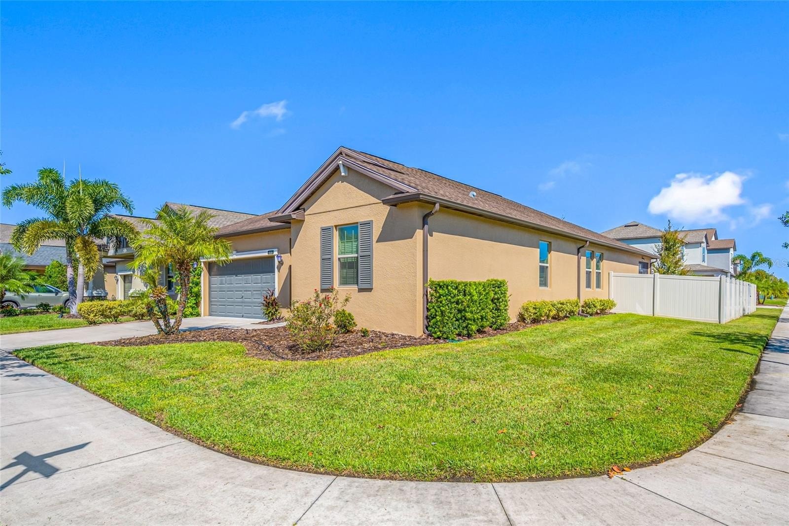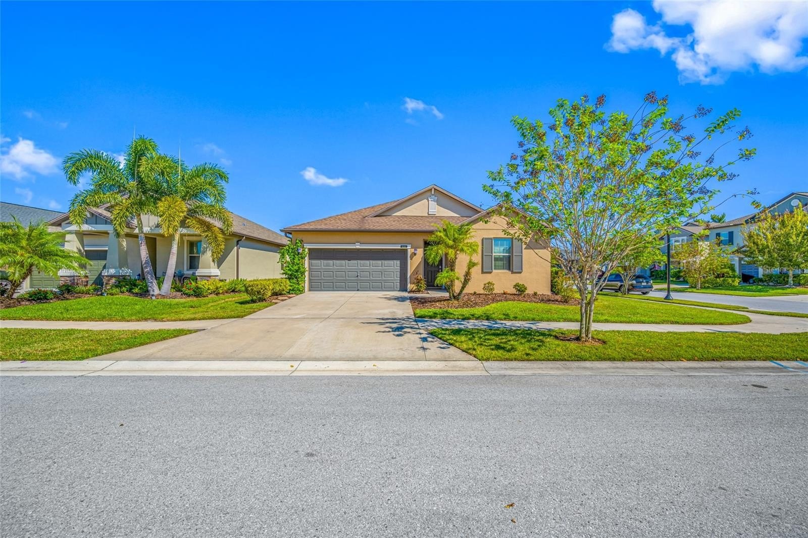 Welcome to your dream home in the heart of Land O' Lakes! This beautifully updated 4-bedroom, 3-bath home sits on a spacious corner lot with lush, low-maintenance landscaping—including mature palms that add a touch of tropical charm. Freshly painted and move-in ready, this home features stylish new barnwood-look flooring in the bedrooms and a thoughtfully designed triple-split floorplan for maximum comfort and privacy. The spacious primary suite overlooks the peaceful backyard and boasts a luxurious 13-ft deep walk-in closet, plus a private en suite bath with dual vanities, a relaxing soaking tub, and a separate walk-in shower. Two generously sized bedrooms are located at the front of the home, with a fourth bedroom just off the kitchen—perfect for guests or a home office. At the heart of the home is the open-concept kitchen and living space, complete with granite countertops, tile flooring, a large pantry, and abundant cabinet space. The combined living and dining area offers plenty of room for entertaining, and ceiling fans are installed in all bedrooms and the living room for year-round comfort. You’ll also appreciate the convenient dual access laundry room—easily reached from both the kitchen and primary bedroom. Step outside to your own private backyard oasis, featuring a large screened-in lanai, a spacious patio area perfect for outdoor seating or grilling, and a fully fenced-in yard—ideal for relaxing, entertaining, or letting pets play safely. For added peace of mind, the home includes a fully automated whole house natural gas generator, so you're always prepared. Located in the sought-after master-planned community of Connerton, you’ll enjoy access to world-class amenities including a resort-style pool with water features, a lap pool, fitness centers, playgrounds, walking and biking trails, basketball and tennis courts, a fishing pier, and even a bike park. This golf cart-friendly community is designed for connection, recreation, and convenience—with future plans for a vibrant town center and four distinct villages surrounded by 1,800 acres of parks and protected natural areas. Don’t miss the opportunity to live in one of the most desirable communities in Land O’ Lakes. Schedule your private tour today!