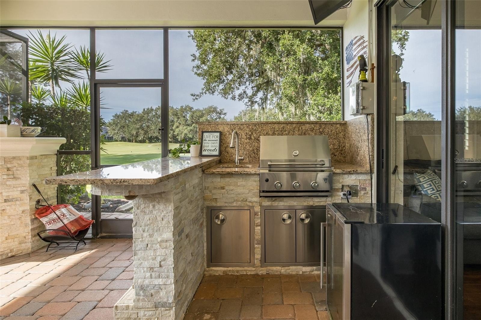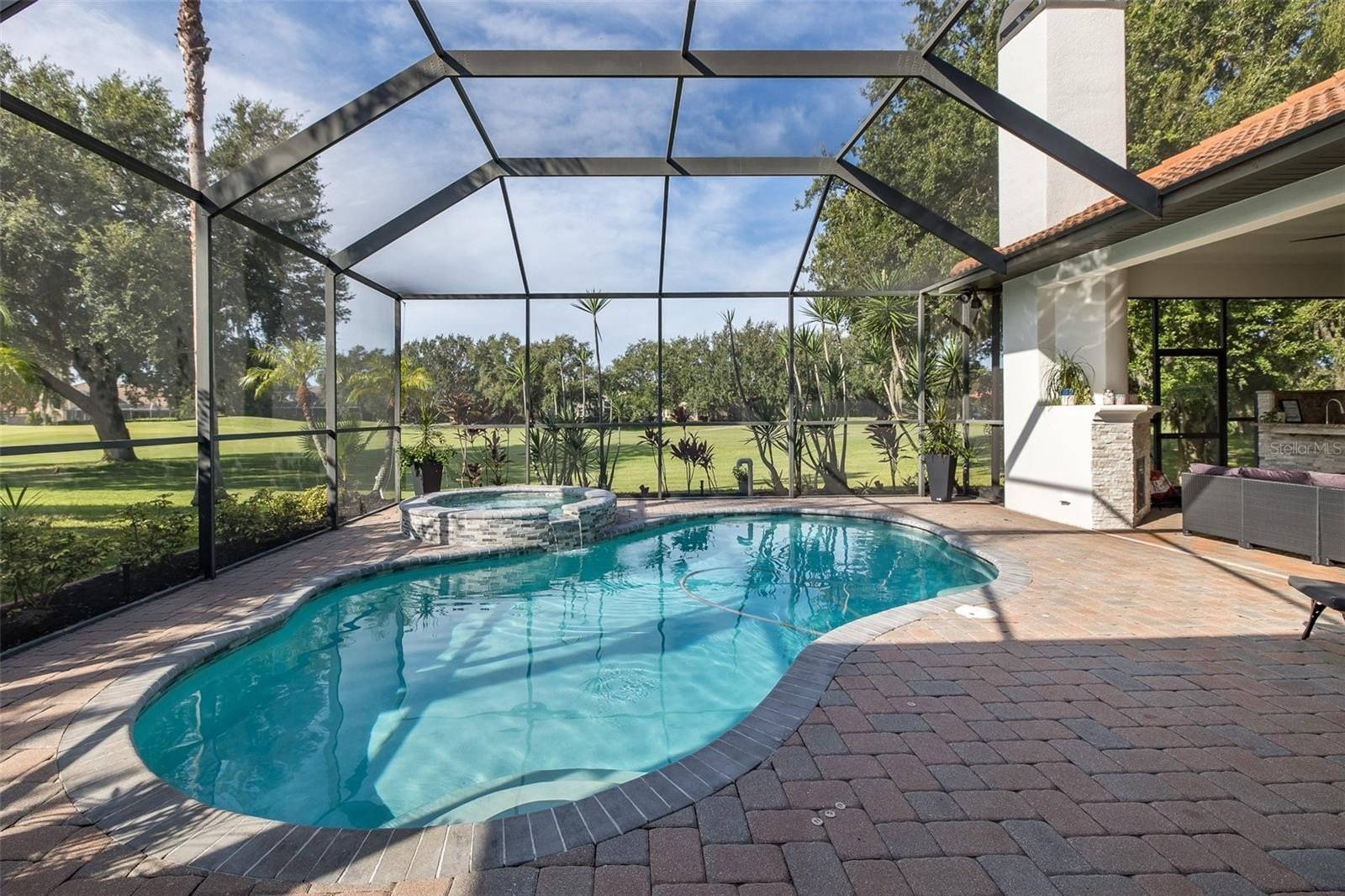Stunning Champions Club~ Arthur Rutenberg Golf Course Home with Premium Upgrades Throughout! Amazing Golf Course views from the 14th fairway & picturesque Sunsets! Welcome to luxury living at its finest in the prestigious Champions Club community! This beautifully updated home boasts 3199 square feet offering 4-bedrooms, 3-bathrooms with a spacious bonus room and private office & is truly move-in ready and packed with high-end features and custom touches. Step inside to discover a bright, open layout with marble countertops, updated kitchen and baths, and newer stainless steel appliances. The home boasts all-new designer lighting fixtures throughout, California shutters, and premium Hunter Douglas blinds for an elegant finish. Gather in the inviting family room with double tray ceiling & centered around a stunning custom stone accent wall, perfect for relaxing evenings. The owners suite is spacious & offers his/her custom closets and the en suite bath is luxurious with custom marble accents. The secondary bedrooms are all generously sized and guest baths have been updated. The private office & roomy bonus room make this the perfect floor plan! The The exterior is just as impressive with new custom double front doors, professional landscaping, and exterior lighting that enhances curb appeal day and night. The completely painted interior and exterior offer a fresh, modern feel from the moment you arrive. Your private outdoor oasis awaits on the expansive lanai, featuring a new Diamond Brite pool finish with custom tile, a Hayward saltwater pool system (fully app-controlled), and a custom outdoor fireplace for cozy gatherings. Entertain in style with a custom summer kitchen, ideal for alfresco dining year-round. All of this is set within the coveted gates of Champions Club, offering resort-style amenities including a clubhouse, fitness center, pool, tennis courts, pickle ball, basketball & many planned activities. Many recent updates: NEW paint exterior/interior, NEW marble counters, Newer appliances, All NEW light fixtures throughout, Upgraded Kitchen & Bathrooms, New Stack stone Accent Wall in family room, Whole house salt system/reverse osmosis, NEW Hayward pool system on salt cell, New Diamond Brite pool finish, Guardian vision exterior camera system, Newer HVAC's (2020), California shutters, Hunter Douglas automatic blinds, Upgraded exterior landscaping, Newer exterior landscape lighting, NEW double leaded/wrought iron front doors, Newer appliances, New garage hanging shelves & so much more! Enjoy the best of Tampa Bay living in a secure, vibrant community close to top-rated schools, dining, shopping, and gorgeous Gulf beaches. Don't miss your chance to own this exceptional home—schedule your private tour today!