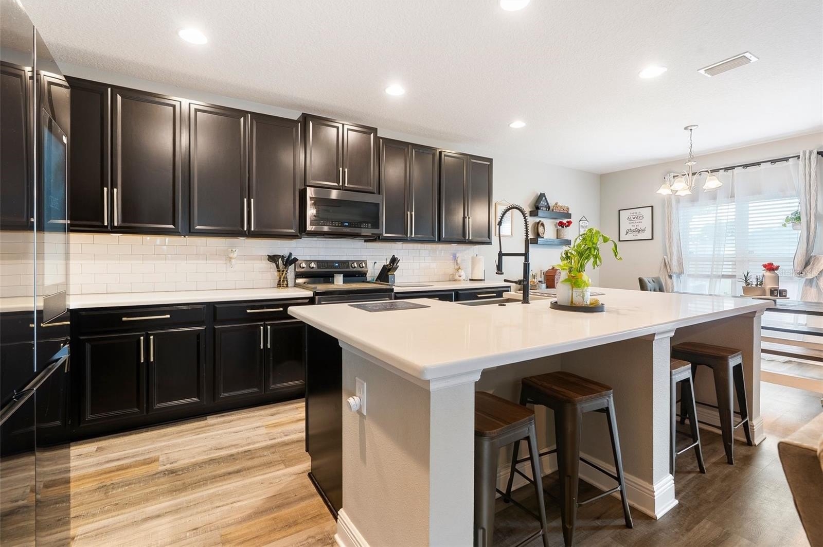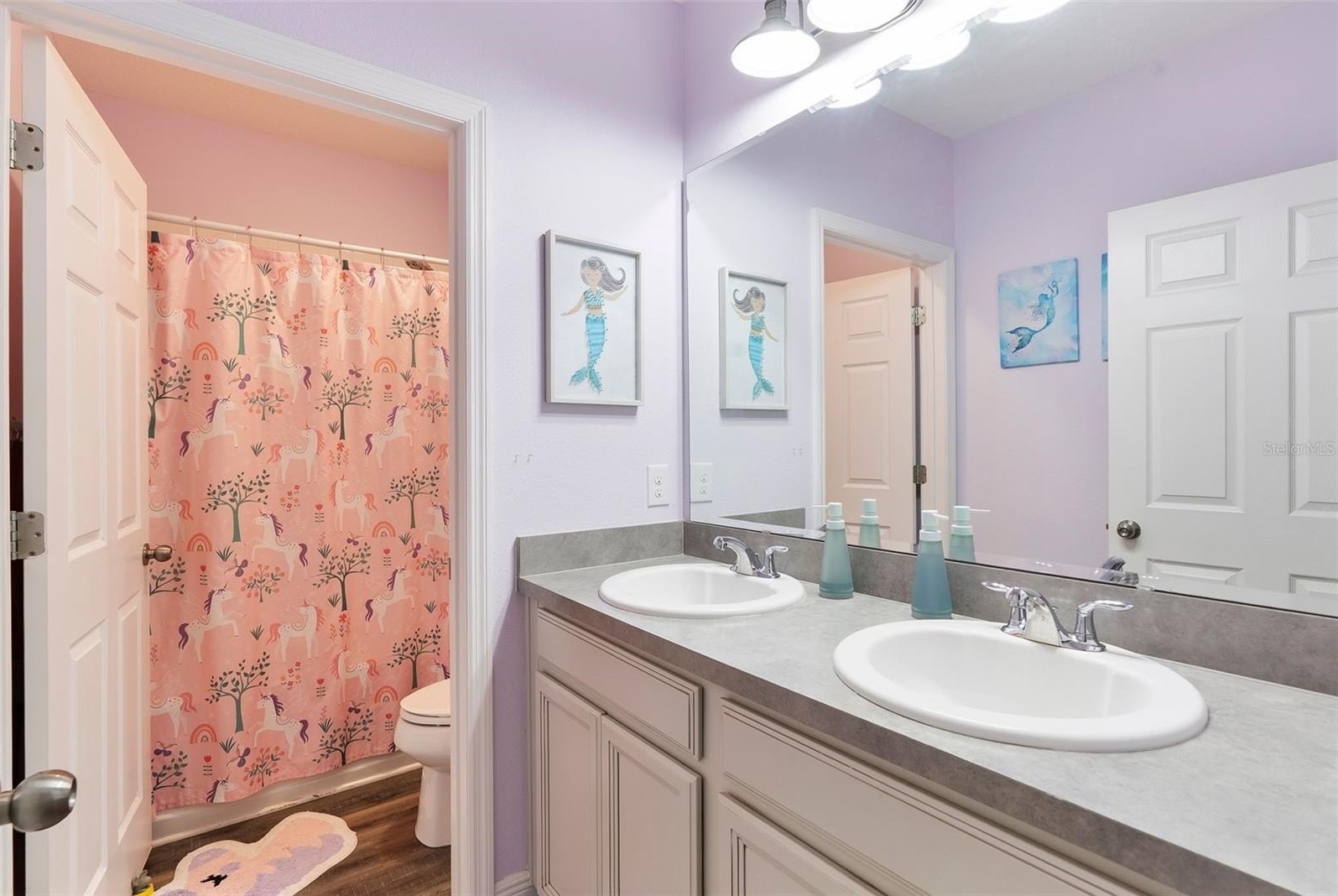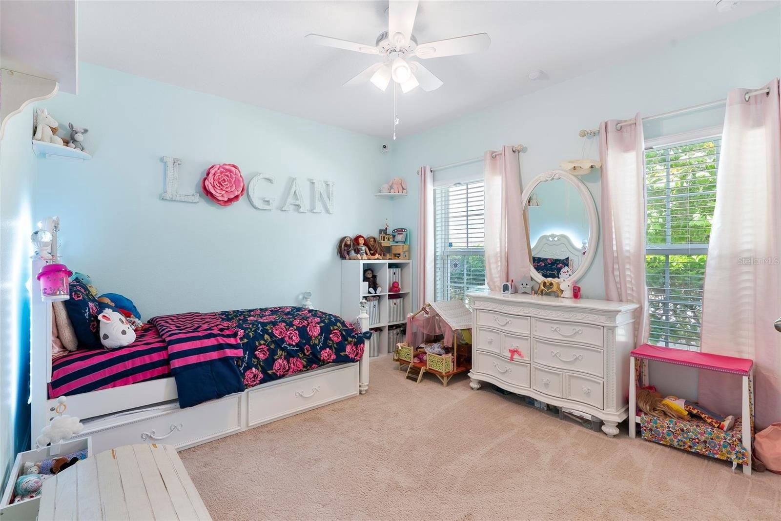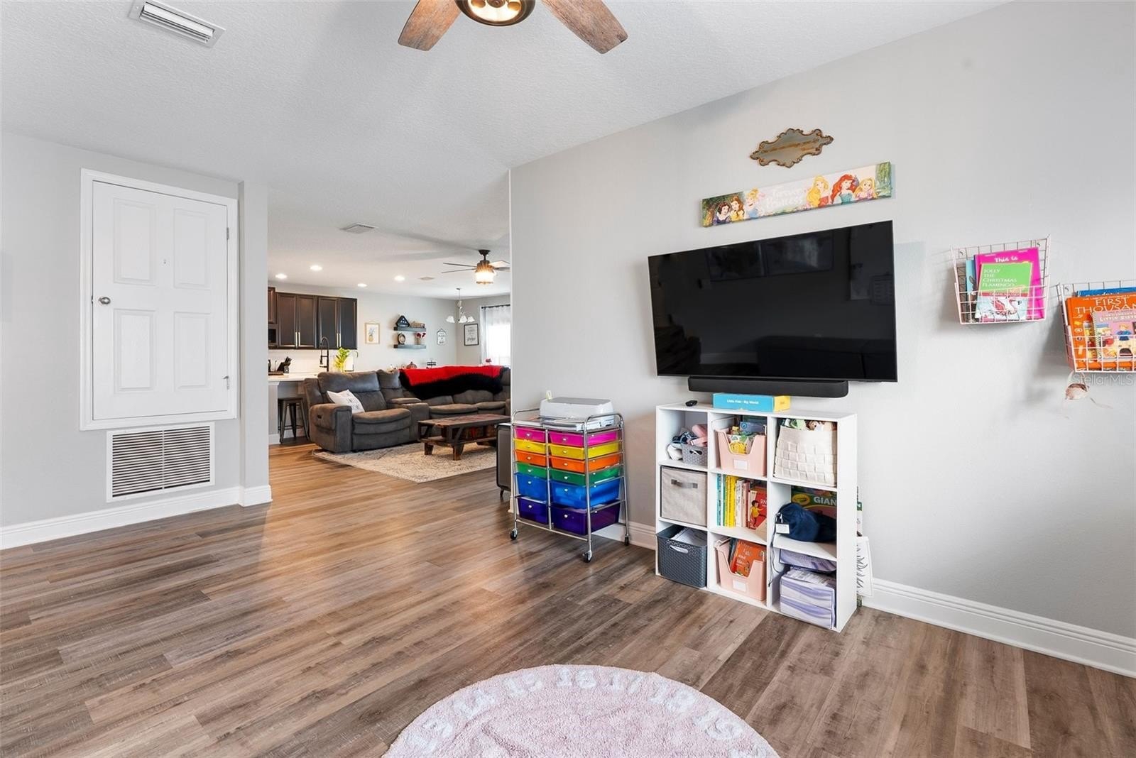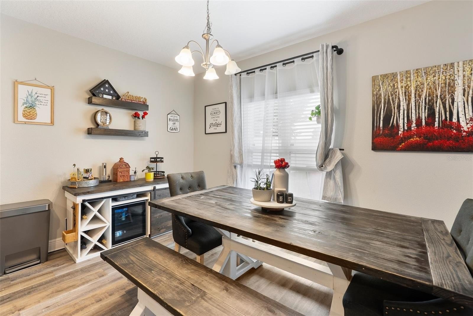 Back on the Market. Welcome to this stunning Kensington Flex model home, located in the highly sought-after community of Cypress Oaks—just 6 minutes from charming Downtown Clermont and 40 minutes from Disney! This meticulously maintained 4-bedroom, 2-bathroom home sits on an oversized lot backing up to recreational space, offering both privacy and convenience. Step inside to find luxury vinyl flooring throughout all common areas, upgraded 5.25” baseboards, and an open-concept design with an expanded kitchen island—perfect for entertaining. The eat-in kitchen boasts quartz countertops, upgraded 2023 stainless steel appliances (including refrigerator, dishwasher, washer & dryer), a stainless-steel apron farmhouse sink, and custom cabinetry, including a custom pantry and laundry room with ample storage. Enjoy versatile living with a spacious flex room featuring a built-in bench and bookshelf, ideal for an office, playroom, or second living space. The family room showcases a beautiful shiplap accent wall that adds character and warmth. The primary suite offers a serene retreat with a walk-in closet, quartz countertops, and a luxurious en-suite bathroom complete with a digital and rain shower system. Three additional bedrooms feature custom closets for organized living. Step outside to the covered lanai and enjoy the fully fenced backyard, complete with three gated entries (two in front, one in back), rain gutters and downspouts, and ample room for outdoor fun. Additional features include,
