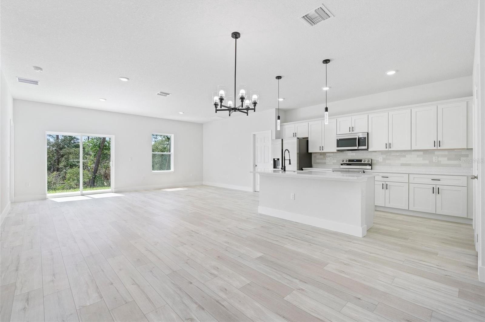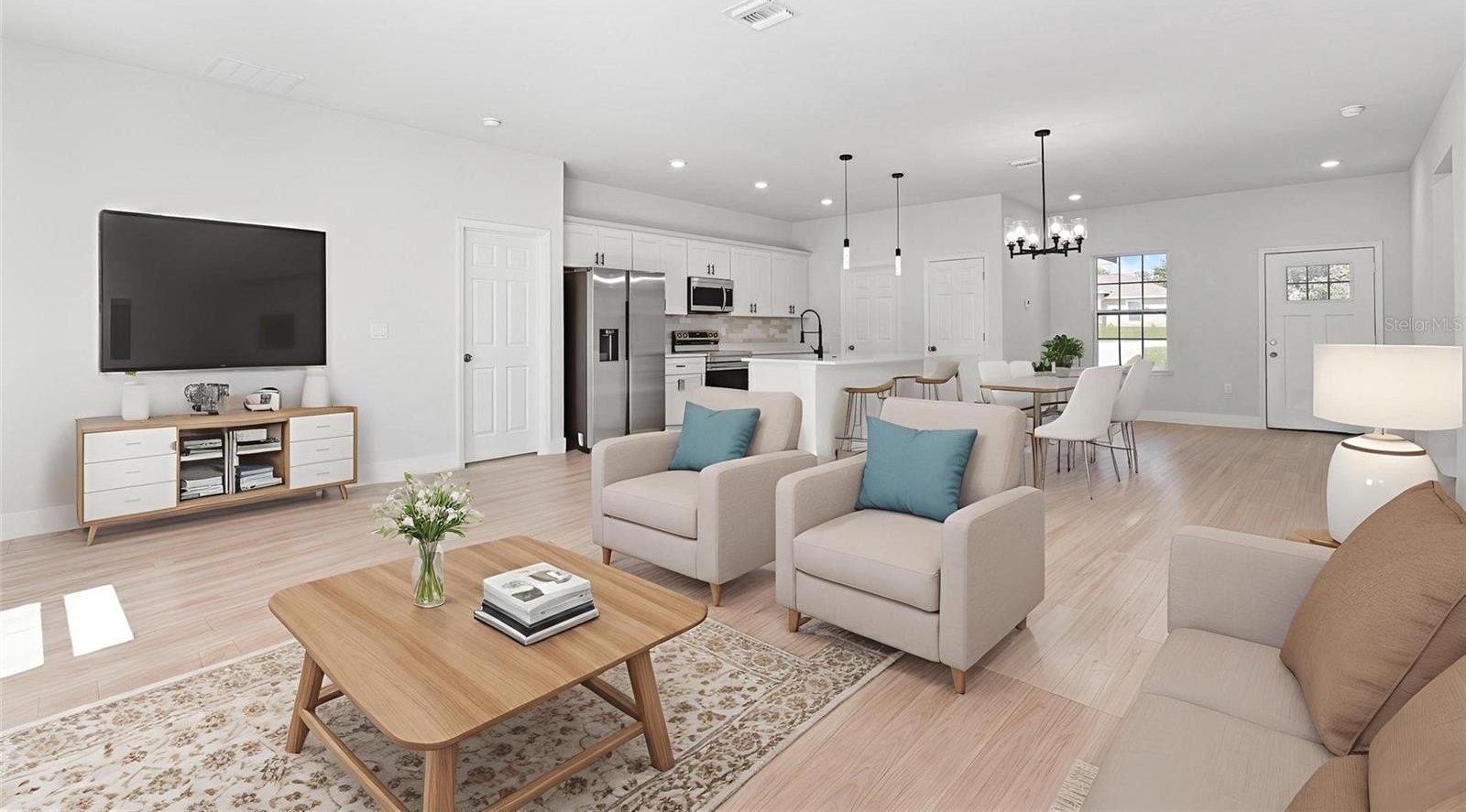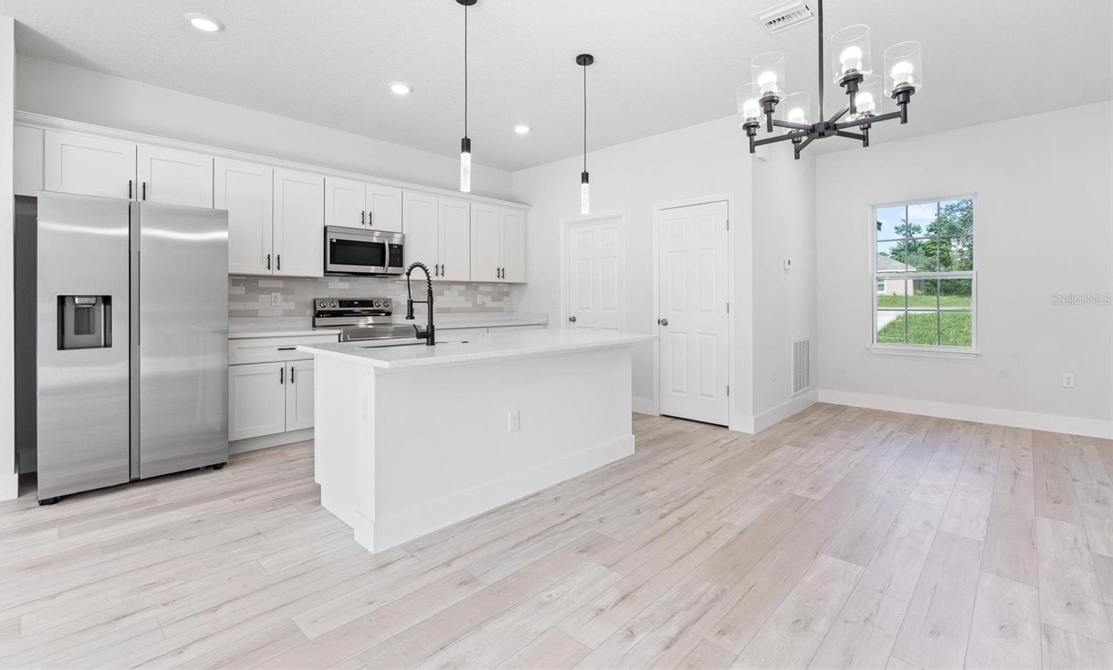 Step inside to discover a bright, open floorplan that seamlessly connects the living and dining areas — ideal for both everyday living and entertaining. The heart of the home is a beautifully designed kitchen with modern finishes, sleek countertops, ample counter space, and major appliances included, such as refrigerator. Whether you’re hosting dinner or enjoying a quiet night in, this kitchen offers both form and function.