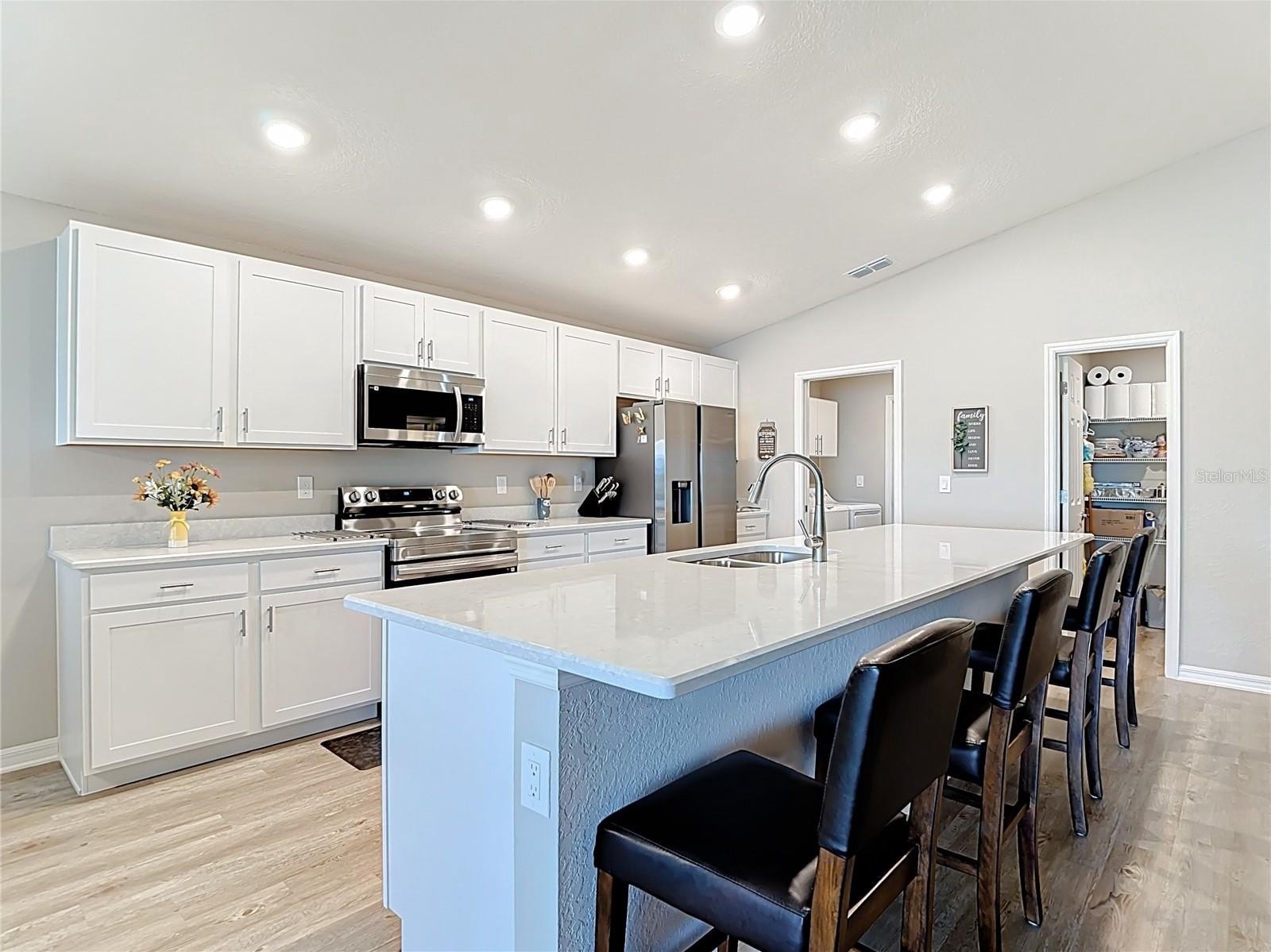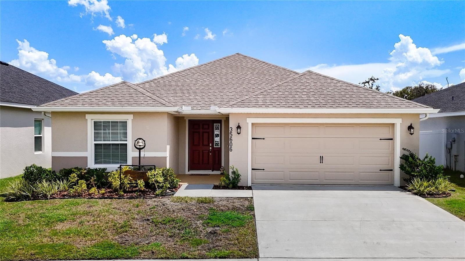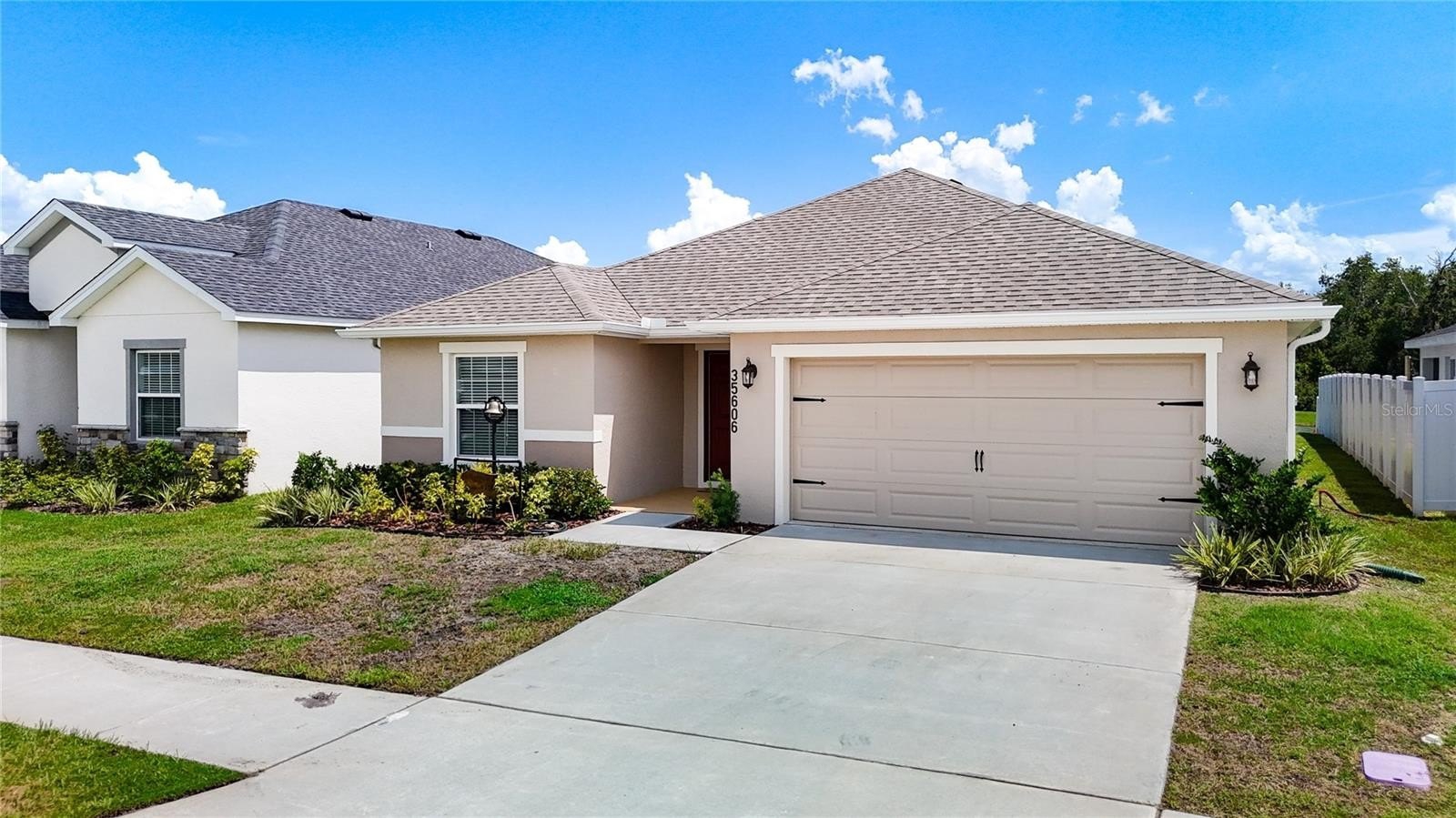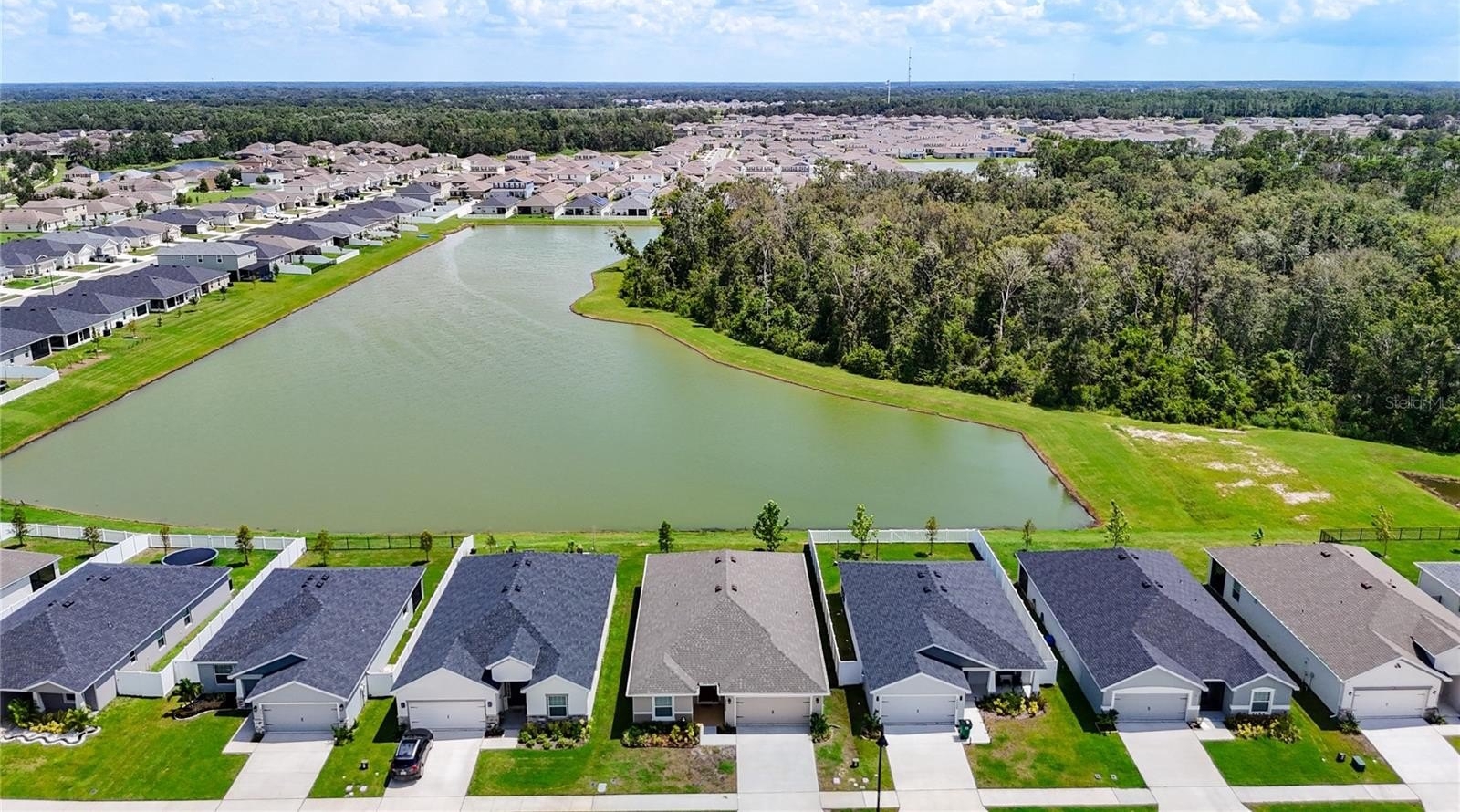 Welcome to modern living in the heart of the Chapel Creek community in Pasco County. Built in 2023 by Highland Homes, this nearly new 4-bedroom, 2-bath residence features the highly sought-after Serendipity floor plan—offering over 2,000 square feet of smart, stylish, and functional living space. Step inside to an open-concept layout that blends the kitchen, living, and dining areas—ideal for everyday life, entertaining guests, or simply staying connected. The kitchen is a standout with QUARTZ COUNTERTOPS, stainless steel appliances, contemporary cabinetry, and an OVERSIZED central island perfect for gathering with family and friends. And unlike many newer homes where the pantry is an afterthought, this one delivers: a MASSIVE WALK-IN PANTRY that’s ready to take on your biggest hauls from Costco, Sam’s Club, AND BJ’s—yes, all at once. The spacious primary suite features a walk-in closet and an en-suite bath with DUAL VANITIES and a walk-in shower, creating a private retreat after a long day. Three additional bedrooms offer flexibility for a home office, guest space, fitness room, or whatever your lifestyle demands. Situated on a PREMIUM WATER VIEW lot, you’ll enjoy peaceful mornings and relaxing evenings on the screened-in lanai, taking in TRANQUIL VIEWS of the pond and surrounding wildlife. Designed with today’s homeowner in mind, this home includes energy-efficient construction, modern finishes, and low-maintenance materials inside and out. The Chapel Creek community offers a QUIET setting while remaining just minutes from local shops, restaurants, medical facilities, and key roadways like SR-54, US-301, and I-75—making your daily commute or weekend plans a breeze. If you're looking for a move-in-ready home that combines thoughtful design, flexible space, and lifestyle-friendly features, 35606 Bellington Boulevard checks ALL the boxes.