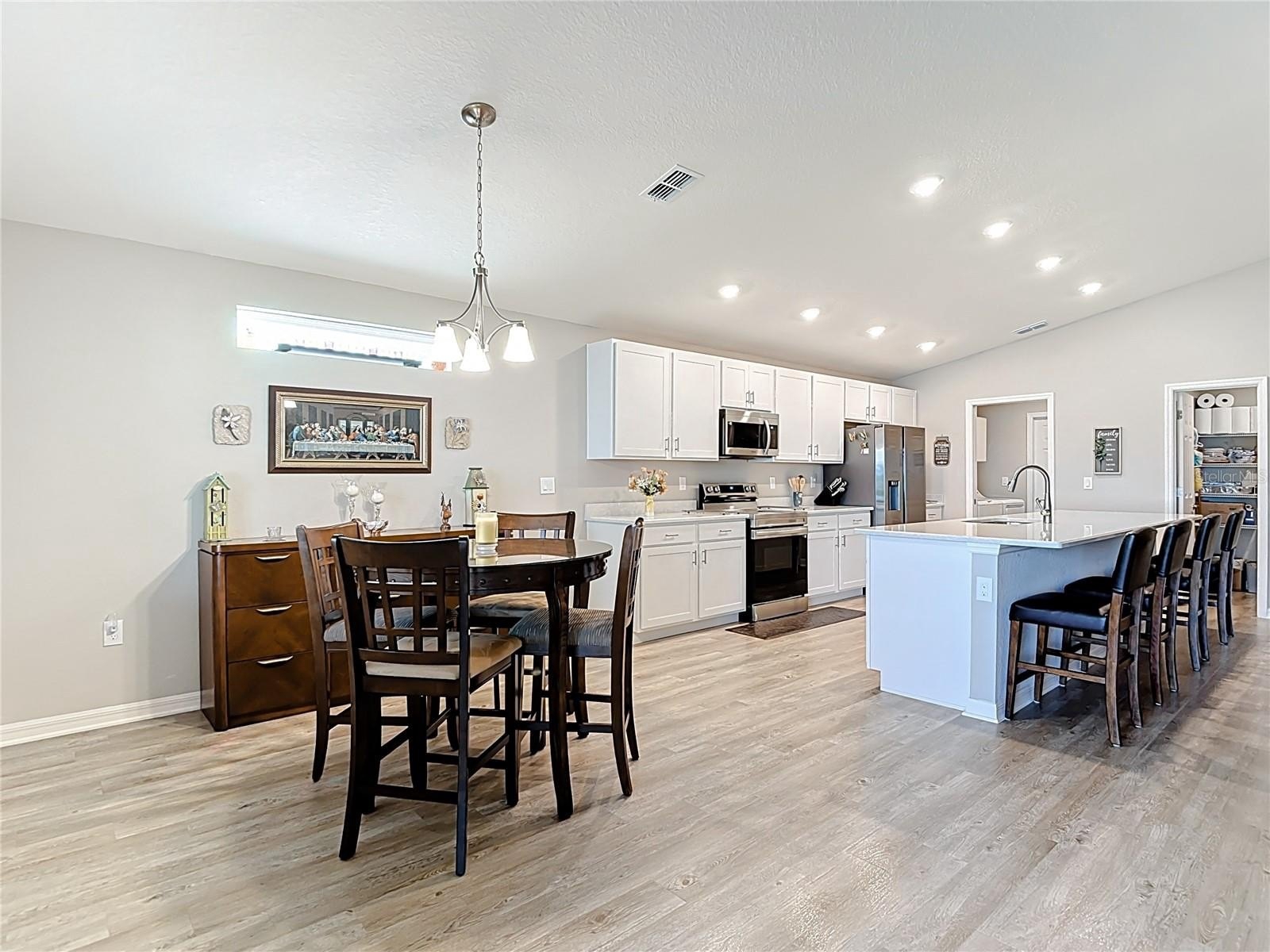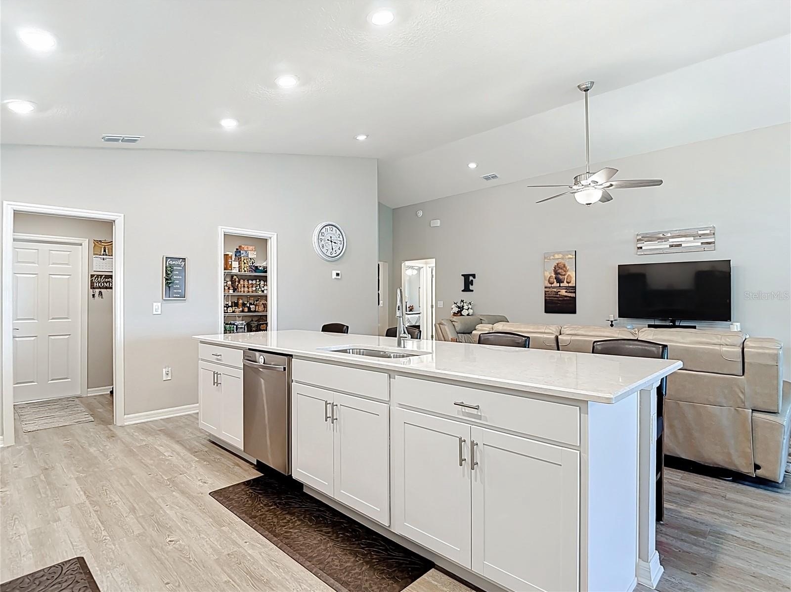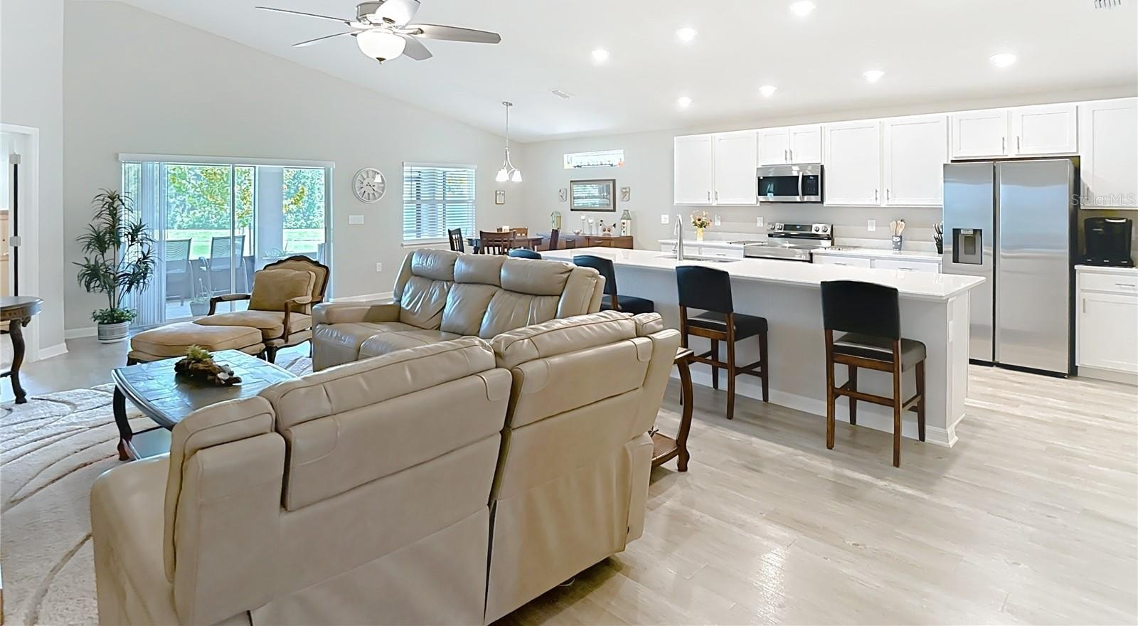 Welcome to modern living in the heart of the Chapel Creek community in Pasco County. Built in 2023 by Highland Homes, this nearly new 4-bedroom, 2-bath residence features the highly sought-after Serendipity floor plan—offering over 2,000 square feet of smart, stylish, and functional living space. Step inside to an open-concept layout that blends the kitchen, living, and dining areas—ideal for everyday life, entertaining guests, or simply staying connected. The kitchen is a standout with QUARTZ COUNTERTOPS, stainless steel appliances, contemporary cabinetry, and an OVERSIZED central island perfect for gathering with family and friends. And unlike many newer homes where the pantry is an afterthought, this one delivers: a MASSIVE WALK-IN PANTRY that’s ready to take on your biggest hauls from Costco, Sam’s Club, AND BJ’s—yes, all at once. The spacious primary suite features a walk-in closet and an en-suite bath with DUAL VANITIES and a walk-in shower, creating a private retreat after a long day. Three additional bedrooms offer flexibility for a home office, guest space, fitness room, or whatever your lifestyle demands. Situated on a PREMIUM WATER VIEW lot, you’ll enjoy peaceful mornings and relaxing evenings on the screened-in lanai, taking in TRANQUIL VIEWS of the pond and surrounding wildlife. Designed with today’s homeowner in mind, this home includes energy-efficient construction, modern finishes, and low-maintenance materials inside and out. The Chapel Creek community offers a QUIET setting while remaining just minutes from local shops, restaurants, medical facilities, and key roadways like SR-54, US-301, and I-75—making your daily commute or weekend plans a breeze. If you're looking for a move-in-ready home that combines thoughtful design, flexible space, and lifestyle-friendly features, 35606 Bellington Boulevard checks ALL the boxes.