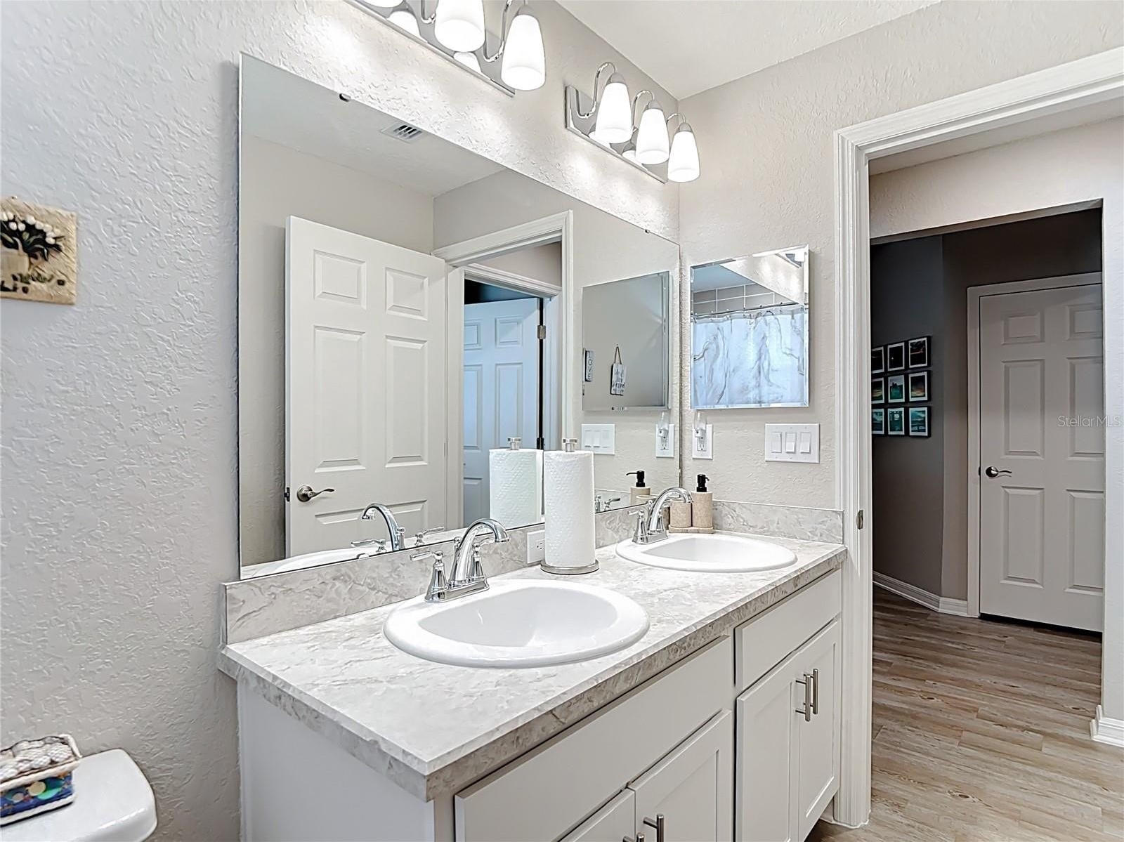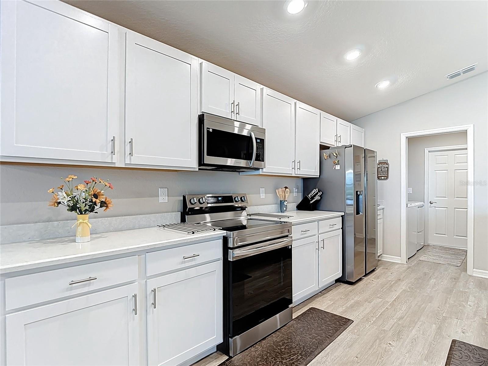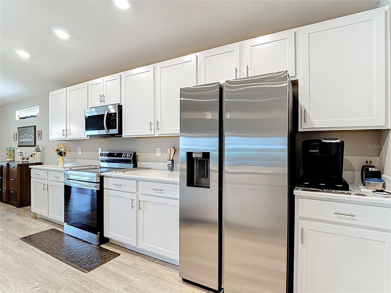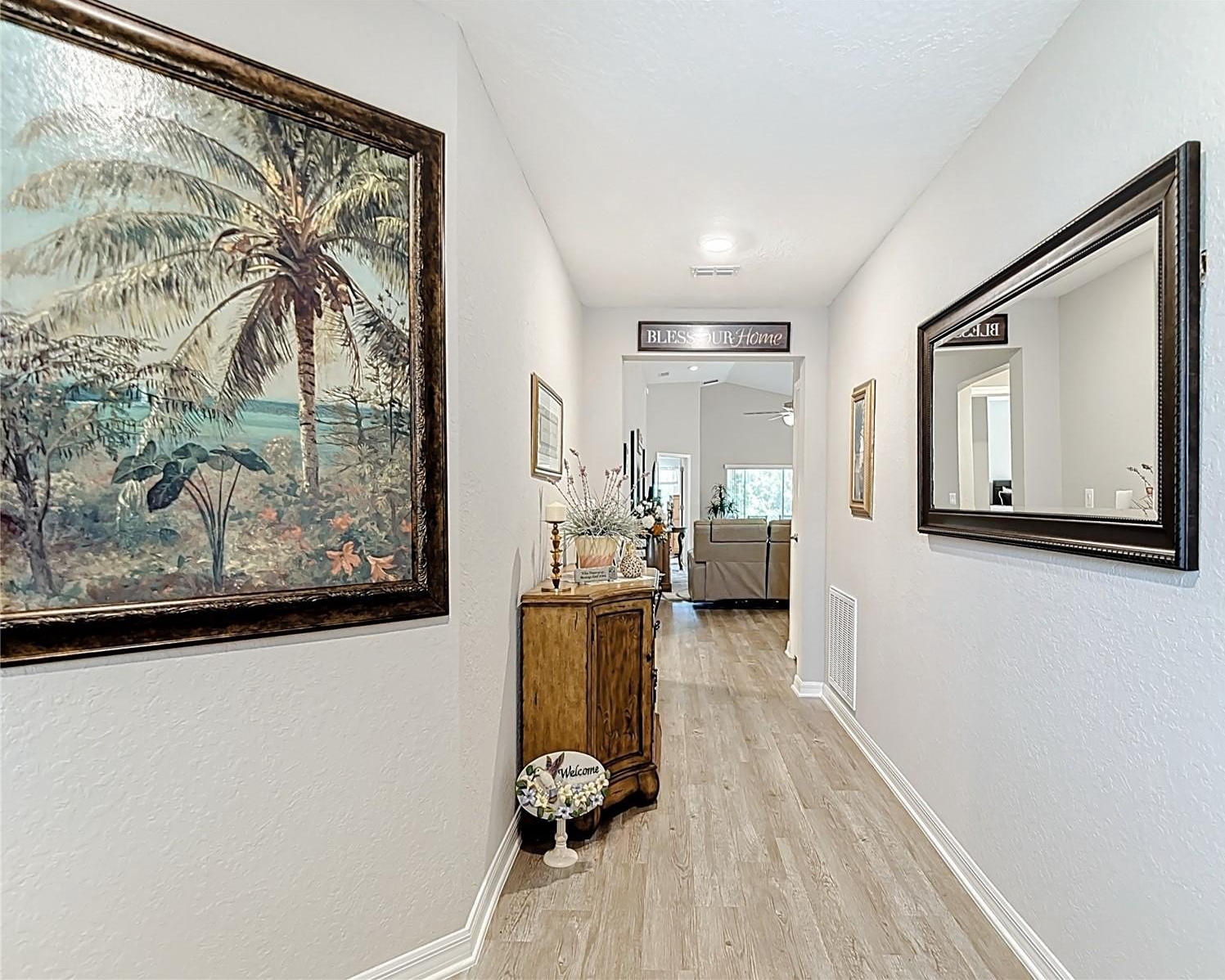 Welcome to modern living in the heart of the Chapel Creek community in Pasco County. Built in 2023 by Highland Homes, this nearly new 4-bedroom, 2-bath residence features the highly sought-after Serendipity floor plan—offering over 2,000 square feet of smart, stylish, and functional living space. Step inside to an open-concept layout that blends the kitchen, living, and dining areas—ideal for everyday life, entertaining guests, or simply staying connected. The kitchen is a standout with QUARTZ COUNTERTOPS, stainless steel appliances, contemporary cabinetry, and an OVERSIZED central island perfect for gathering with family and friends. And unlike many newer homes where the pantry is an afterthought, this one delivers: a MASSIVE WALK-IN PANTRY that’s ready to take on your biggest hauls from Costco, Sam’s Club, AND BJ’s—yes, all at once. The spacious primary suite features a walk-in closet and an en-suite bath with DUAL VANITIES and a walk-in shower, creating a private retreat after a long day. Three additional bedrooms offer flexibility for a home office, guest space, fitness room, or whatever your lifestyle demands. Situated on a PREMIUM WATER VIEW lot, you’ll enjoy peaceful mornings and relaxing evenings on the screened-in lanai, taking in TRANQUIL VIEWS of the pond and surrounding wildlife. Designed with today’s homeowner in mind, this home includes energy-efficient construction, modern finishes, and low-maintenance materials inside and out. The Chapel Creek community offers a QUIET setting while remaining just minutes from local shops, restaurants, medical facilities, and key roadways like SR-54, US-301, and I-75—making your daily commute or weekend plans a breeze. If you're looking for a move-in-ready home that combines thoughtful design, flexible space, and lifestyle-friendly features, 35606 Bellington Boulevard checks ALL the boxes.