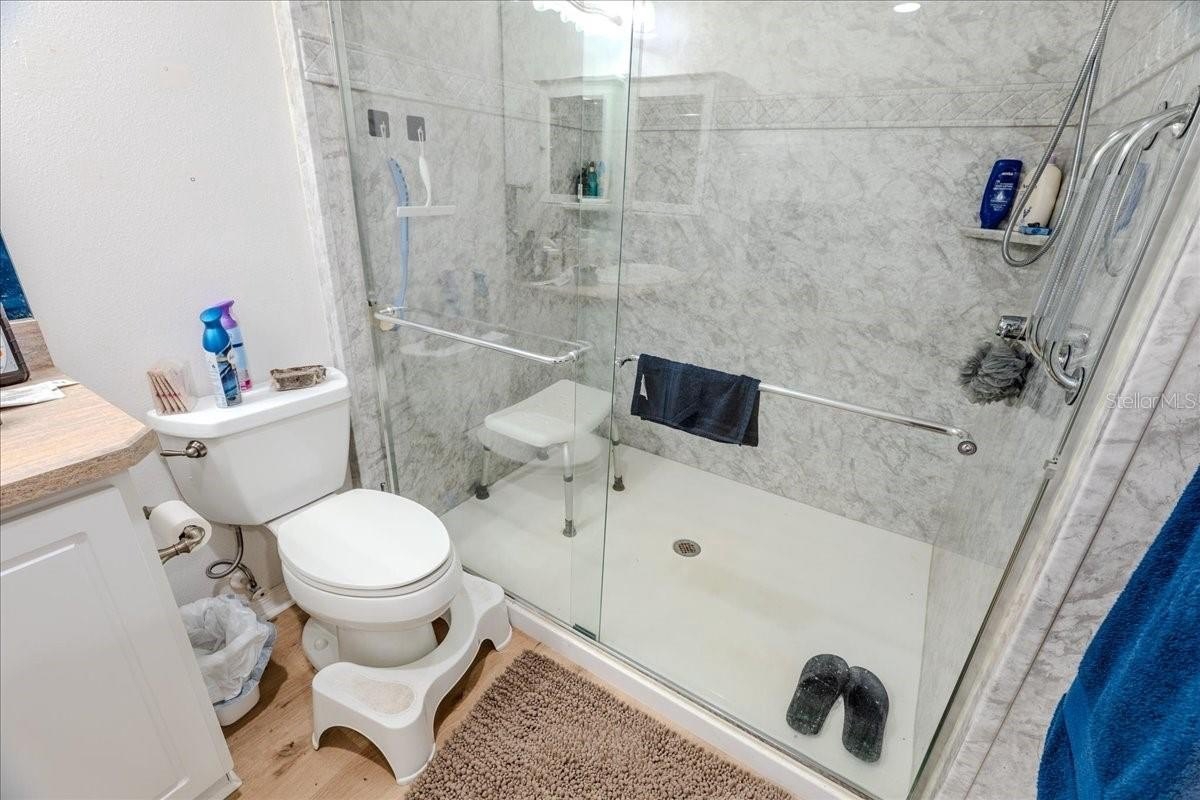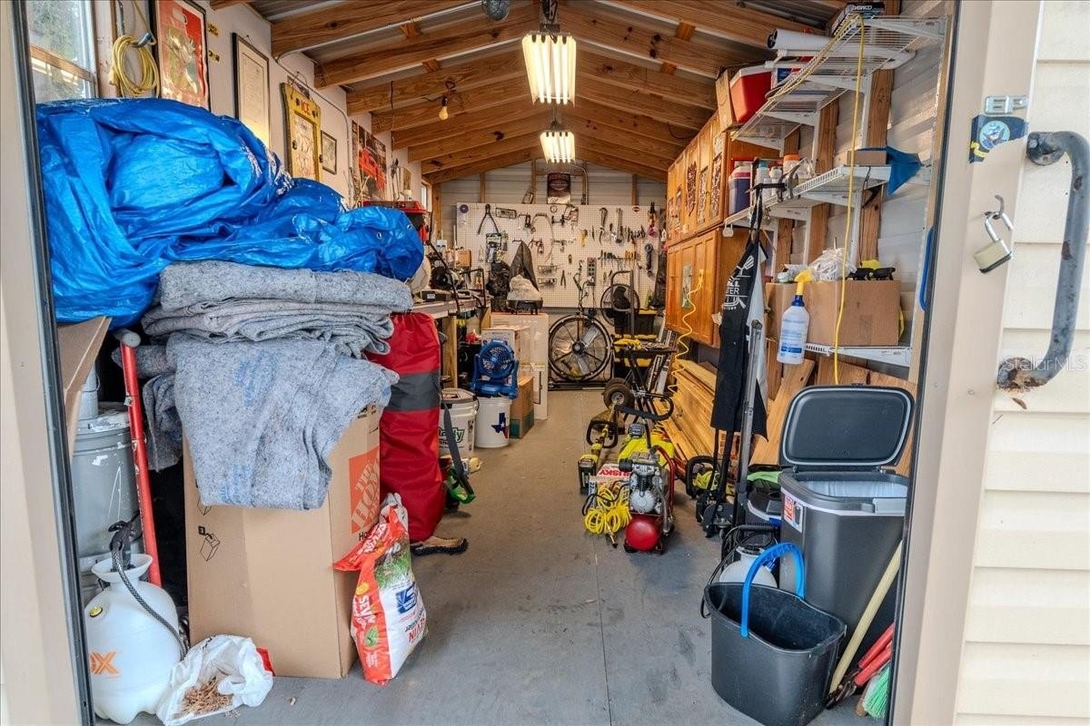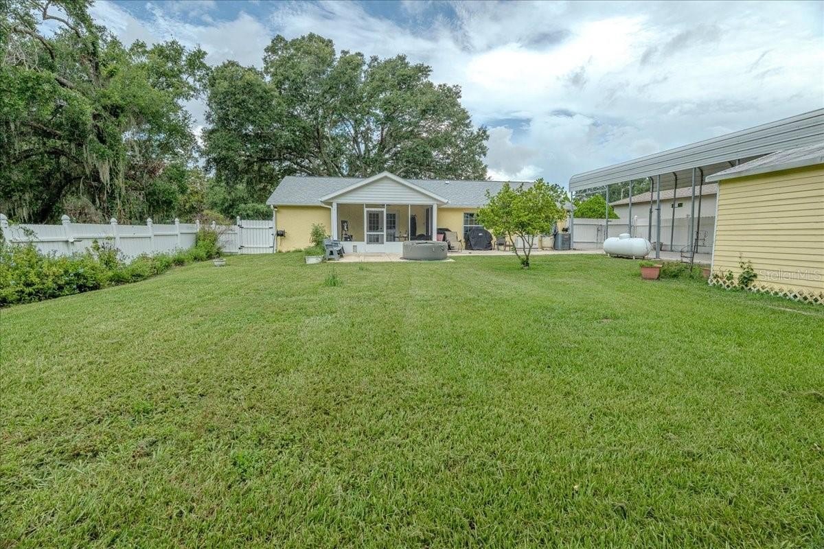 Bring the truck, boat, RV, and all the toys—there’s room for everything here! Welcome to this meticulously maintained custom-built home tucked away on a quiet dead-end street in desirable San Antonio, Florida—free from HOA restrictions and costly CDD fees. This thoughtfully designed residence features a split floor plan with remodeled walk-in showers and dual walk-in closets, offering both comfort and functionality. The open-concept layout showcases new luxury vinyl plank flooring, recessed lighting, ceiling fans, and pocket doors throughout, creating a bright and seamless flow. The spacious kitchen provides ample counter space and cabinetry, connecting effortlessly to a utility room equipped with washer/dryer hookups, extra refrigerator/freezer space, and additional storage. French doors open to a recently screened 16x10 tiled patio with a ceiling fan, perfect for year-round indoor-outdoor living. Outside, the fully fenced backyard offers privacy and versatility, featuring a reinforced concrete pad with covered parking and a 50 AMP service hookup—ideal for your RV, boat, or additional vehicles. The property also includes two utility sheds and a separate workshop, providing endless options for storage, hobbies, or projects. Pets will love the spacious fenced yard, perfect for safe play and exploration. Additional upgrades include a whole-home Generac generator, water softener, a 250-gallon propane tank, and an air compressor. Major systems have been recently updated with a new roof (2023)and HVAC system (2022), giving you peace of mind for years to come. Conveniently located just minutes from the Mirada and Epperson Lagoons and within 15 minutes of shopping, dining, and everyday essentials, this home perfectly combines tranquility, practicality, and modern comfort in one exceptional package.