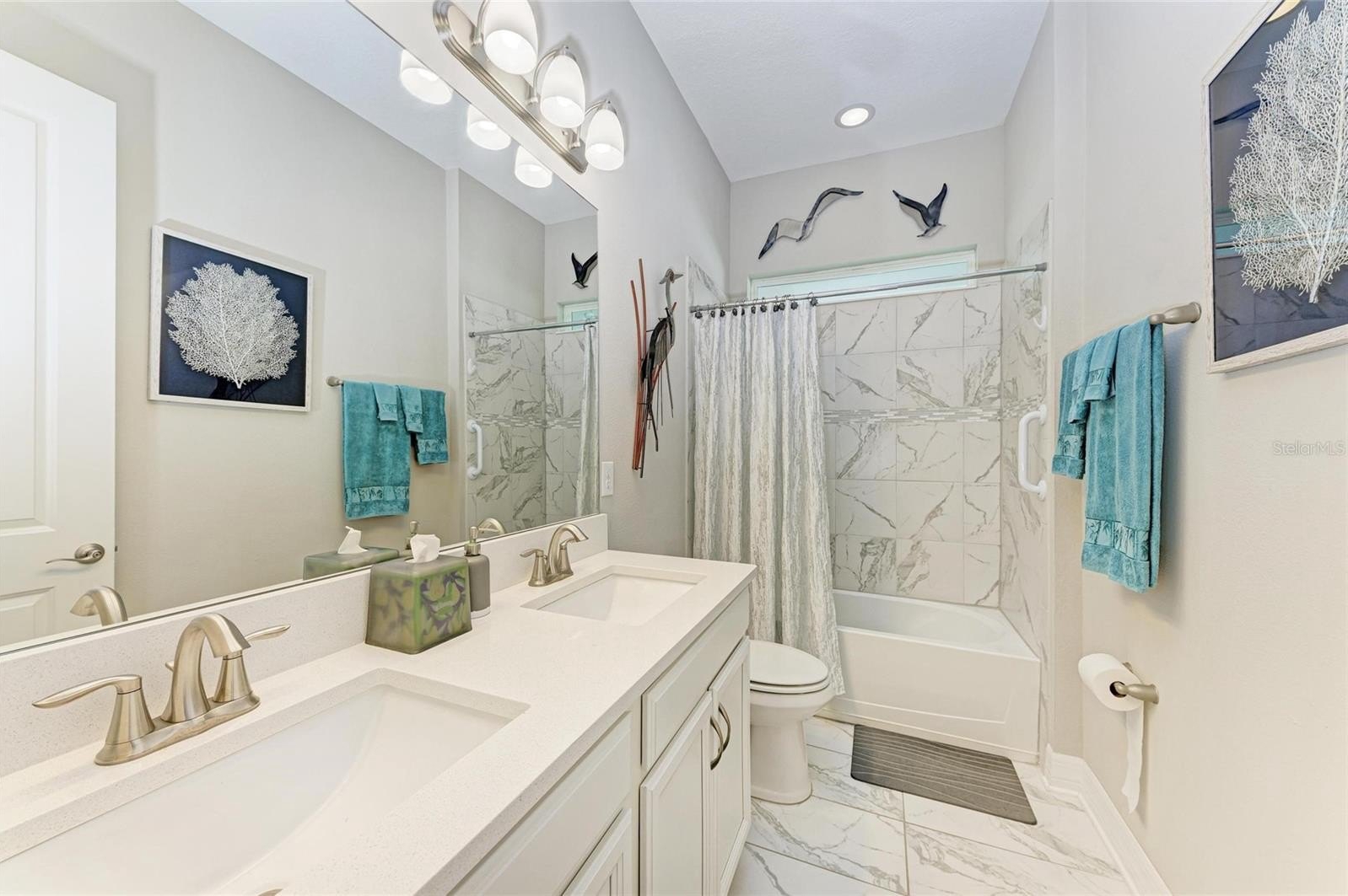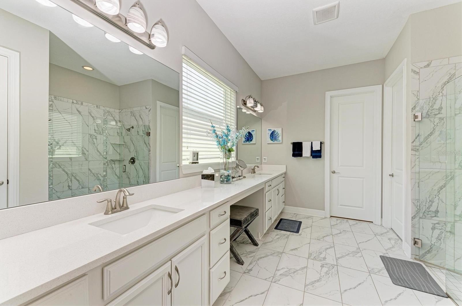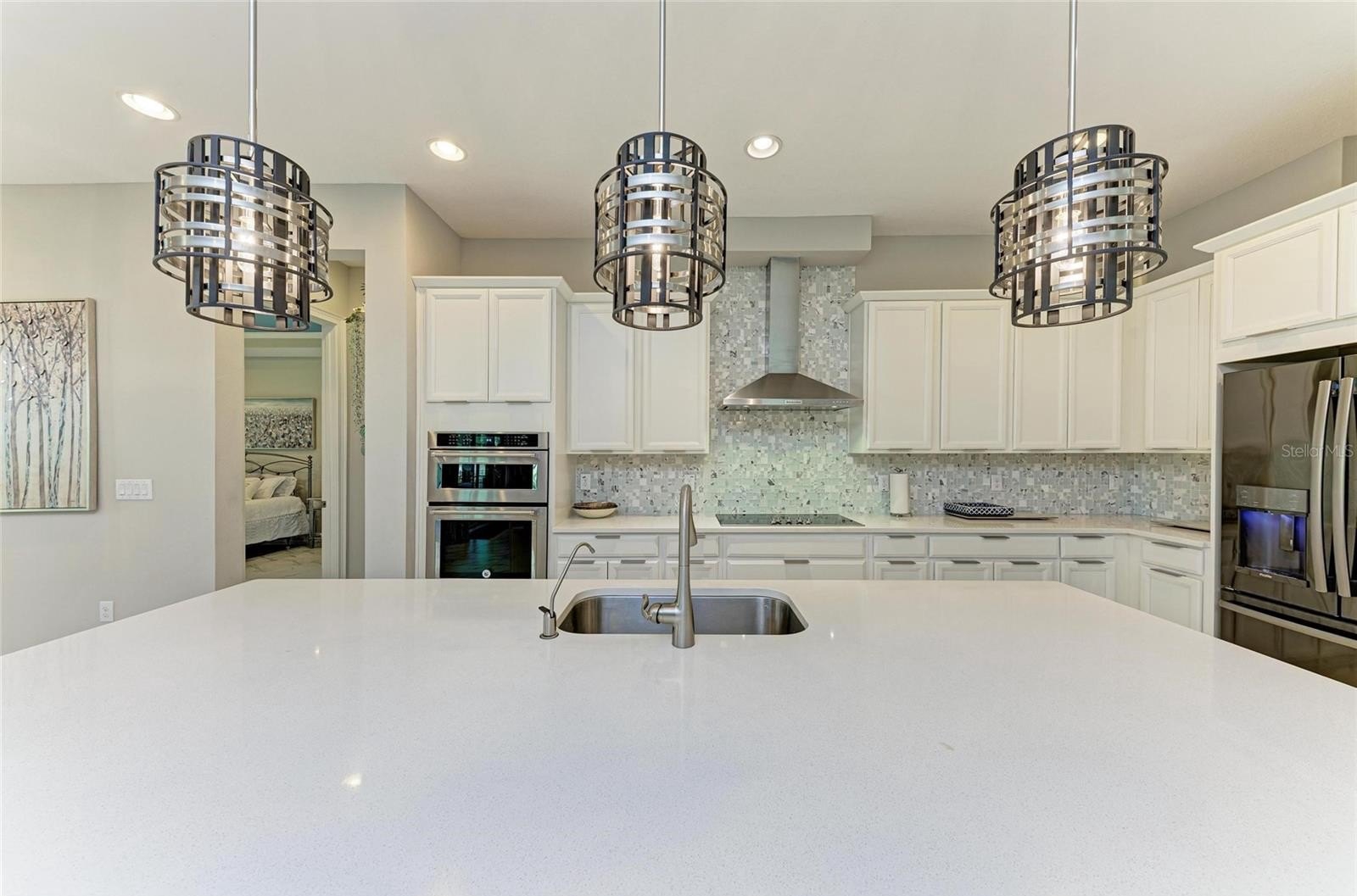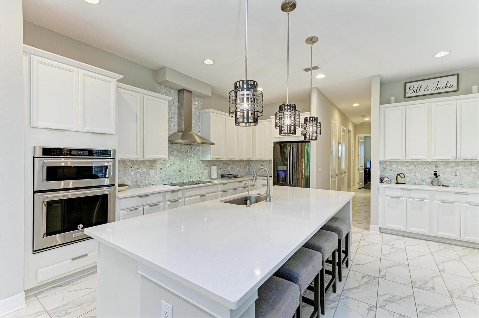 Breathe Easy in this stunning Alexander model by Meritage Homes, where clean air, pure water, and energy- efficient design come together for a truly comfortable lifestyle. Nestled on a quiet cut-de-sac within one of Lakewood Ranch's most sought after gated communities, this residence showcases a bright, open floor plan with soaring 10ft ceilings, 8ft doors, tray ceilings, and designer touches throughout. Residents enjoy maintenance- free lawn care and access to resort-style amenities, including a sparkling community pool, modern clubhouse, and state of the art fitness center. This home welcomes you with a Spanish style elevation, brick paver driveway and walkway, enhanced landscaping, and a covered lanai that leads straight to the front door. Around back you can sit and watch your favorite program under your covered lanai or step outside to a private, pavered patio surrounded by native plants and flowers, the perfect spot to relax, unwind, and listen to the birds sing. For peace of mind, the home also includes hurricane and custom storm shutters protection. Inside, the gourmet kitchen is the heart of the home, boasting an oversized Zodiak quartz island with seating, soft close cabinetry, stainless steel appliances, a vented range hood, built-in oven, microwave, electric cook top, and elegant tile backsplash. A reverse osmosis filtration system and whole home water softener ensure you enjoy clean, refreshing water every day. Tile flooring flows seamlessly throughout the home for easy maintenance. The primary suite is a retreat of its own with tray ceilings and custom crown moldings. The full bath features dual vanities, a walk-in shower and a custom-designed walk-in closet large enough for clothing, shoes, and storage and more. The split bedroom layout provides privacy for family or guests. A second bedroom with a spacious walk-in closet is paired with a full bath nearby. A versatile flex room offers the perfect spot for a home office, media room or a gym. Thoughtfull details throughout include, oversized pantry with plenty of shelving, Large laundry room, 2-car garage with epoxy flooring, wall cabinets, and workbench perfect for DIY projects, spray foam insulation in attic and walls for consistent comfort and energy efficiency, newer HVAC system (Mar 2024) with ozone air scrubber and UV purifier for the cleanest indoor air. This home offers more than just beauty- it delivers a healthier way of living, with purified air, filtered water, and peace of mind built into every detail. Don't miss the chance to call this Lakewood Ranch gem your own. Schedule your private showing today!