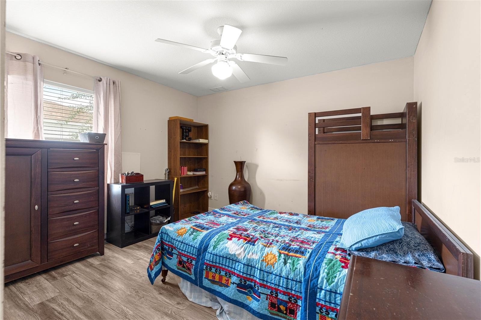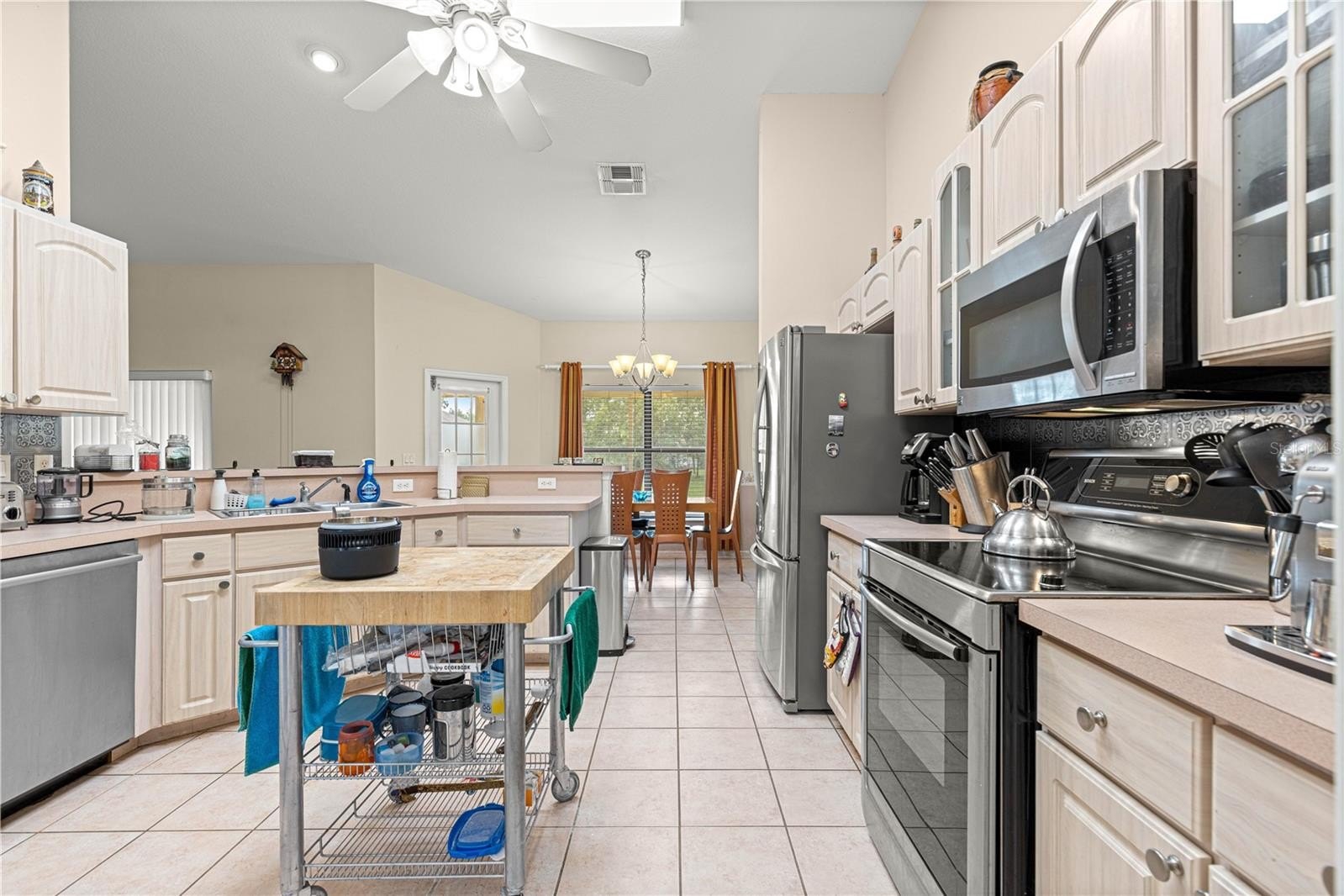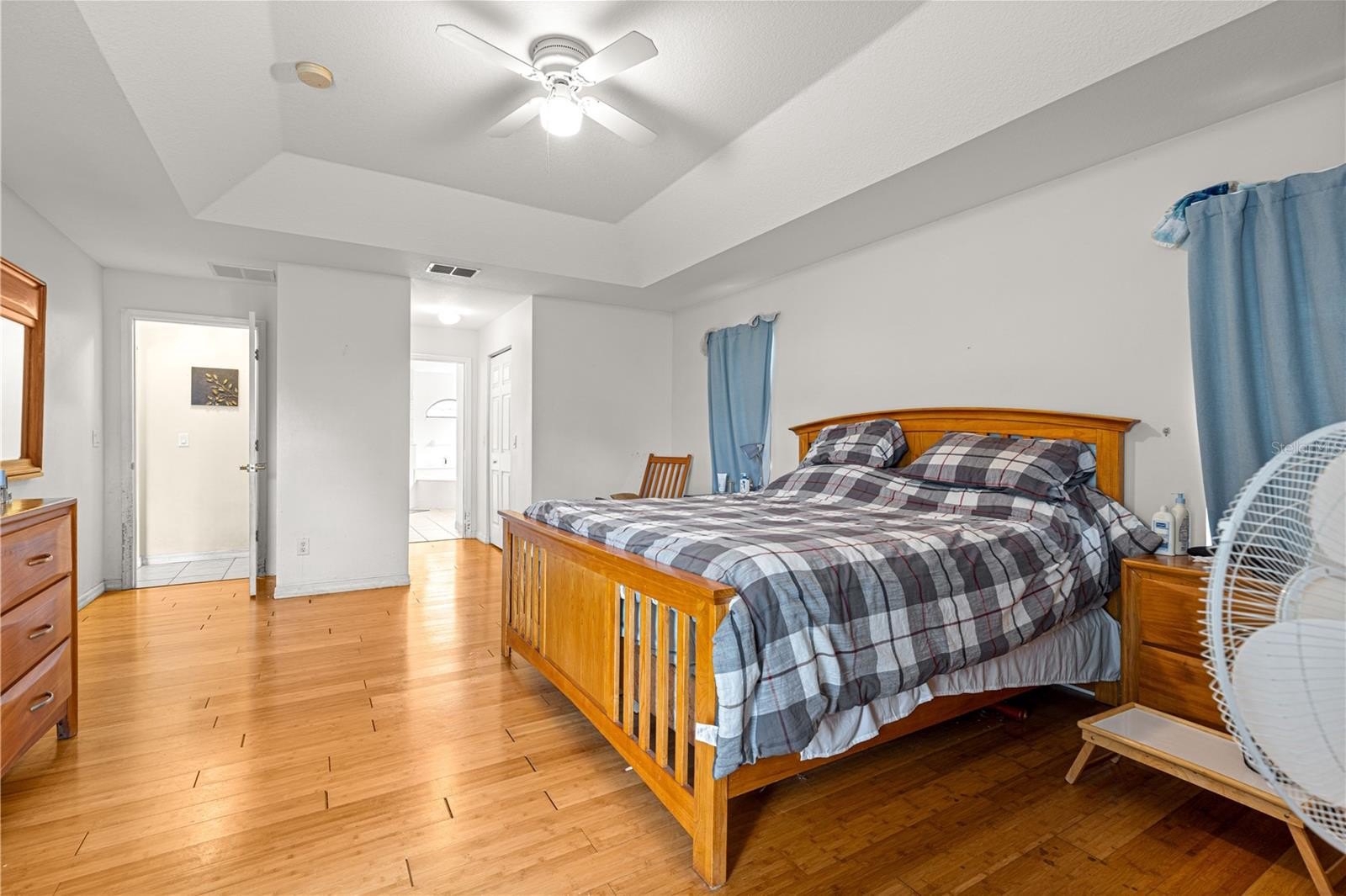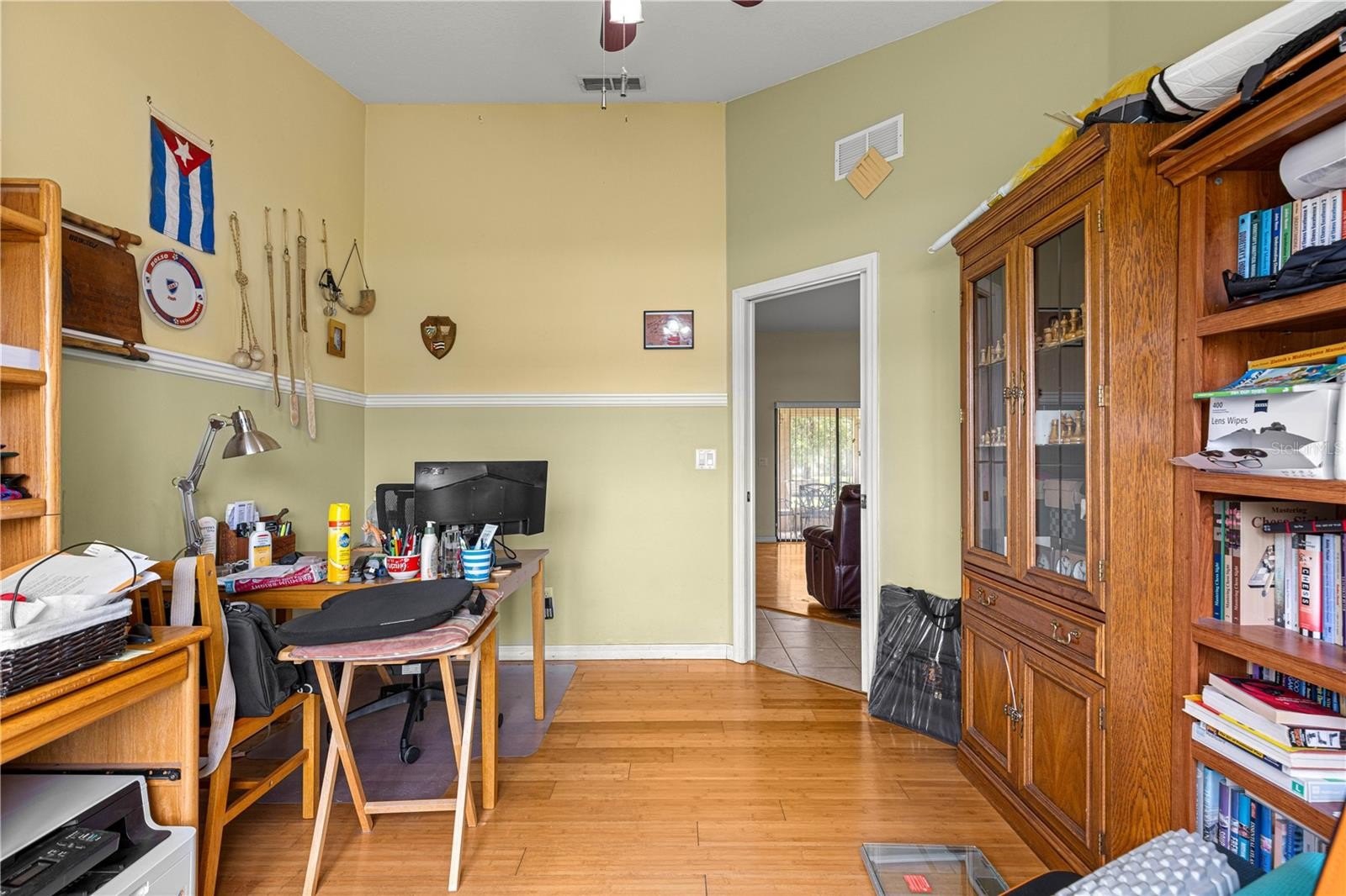 Beautiful 3 bedroom, 2 bathroom home with a versatile den/office located in the desirable Ocala Waterway subdivision with NEW ROOF INSTALLED ON 10/2025. This spacious home features tile and wood flooring throughout, with wood floors in all bedrooms. The formal dining room is perfect for entertaining, while the kitchen offers tile flooring, plenty of counter space, and all appliances included. The master suite boasts two private walk-in closets, a walk-in shower, soaking tub, and dual sinks. Home also offers a laundry room with washer and dryer included. Additional highlights include a 2-car garage with opener and side door access, an exterior shed for extra storage, and a vinyl-fenced backyard for privacy.