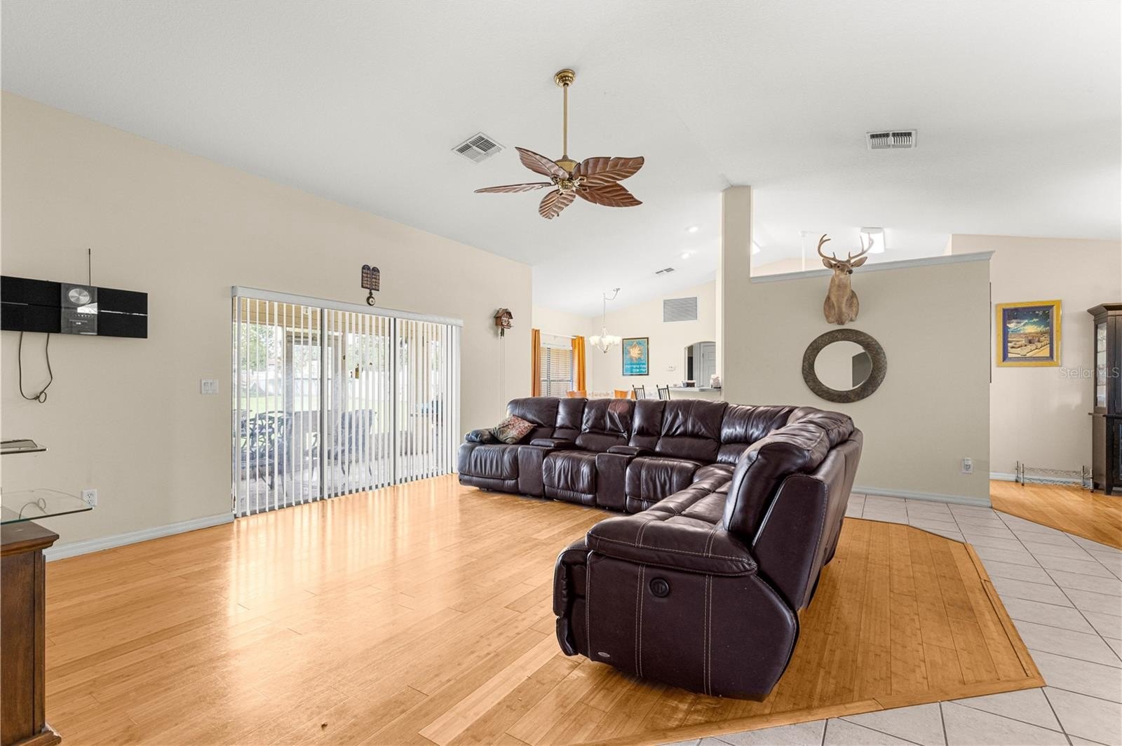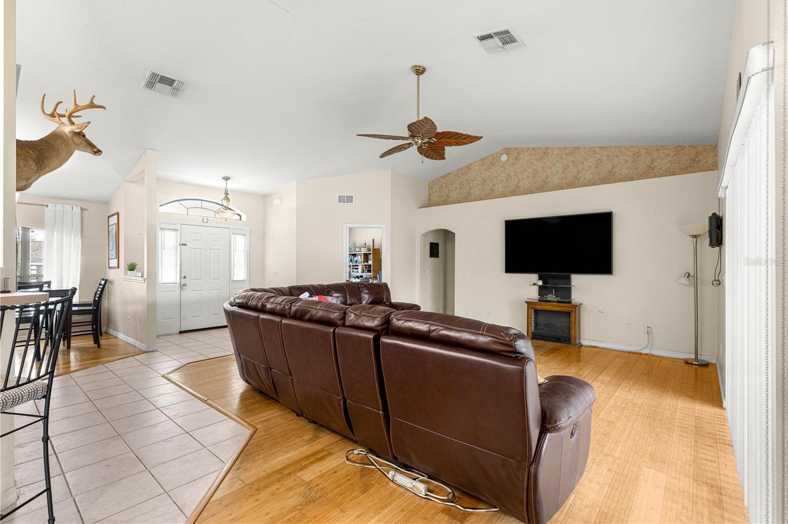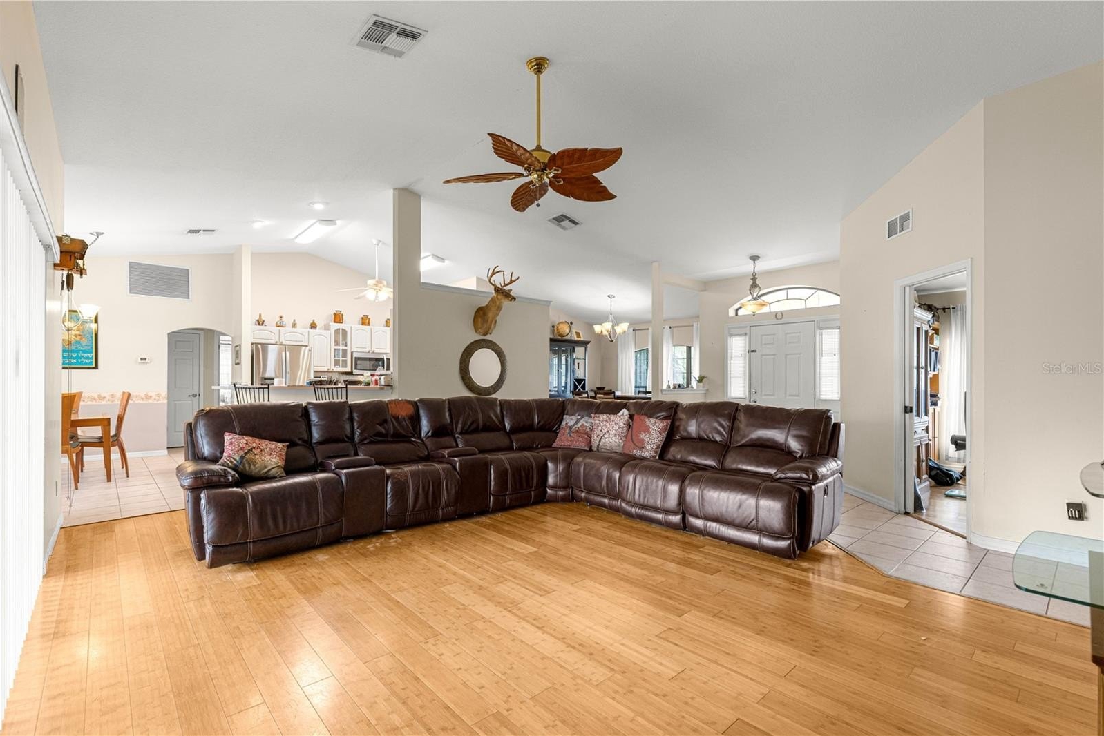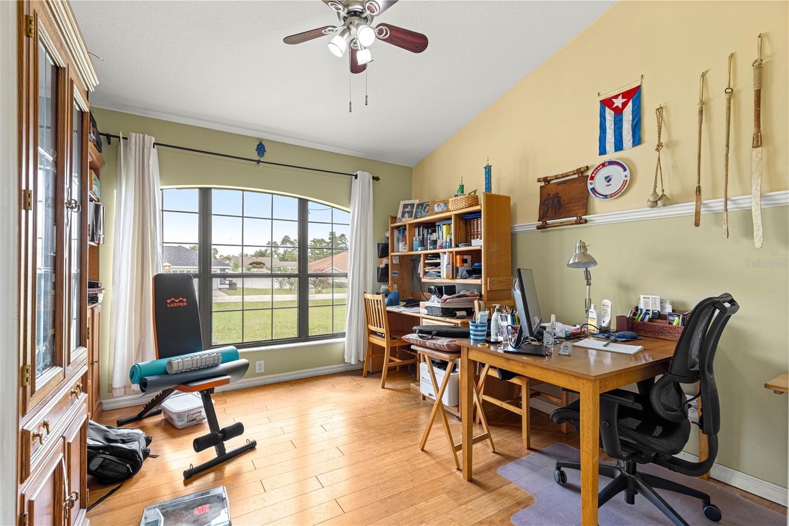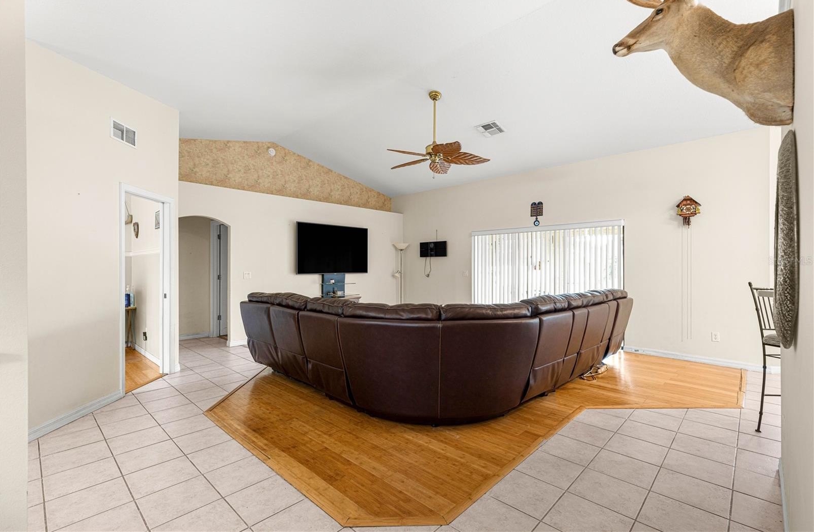 Beautiful 3 bedroom, 2 bathroom home with a versatile den/office located in the desirable Ocala Waterway subdivision with NEW ROOF INSTALLED ON 10/2025. This spacious home features tile and wood flooring throughout, with wood floors in all bedrooms. The formal dining room is perfect for entertaining, while the kitchen offers tile flooring, plenty of counter space, and all appliances included. The master suite boasts two private walk-in closets, a walk-in shower, soaking tub, and dual sinks. Home also offers a laundry room with washer and dryer included. Additional highlights include a 2-car garage with opener and side door access, an exterior shed for extra storage, and a vinyl-fenced backyard for privacy.