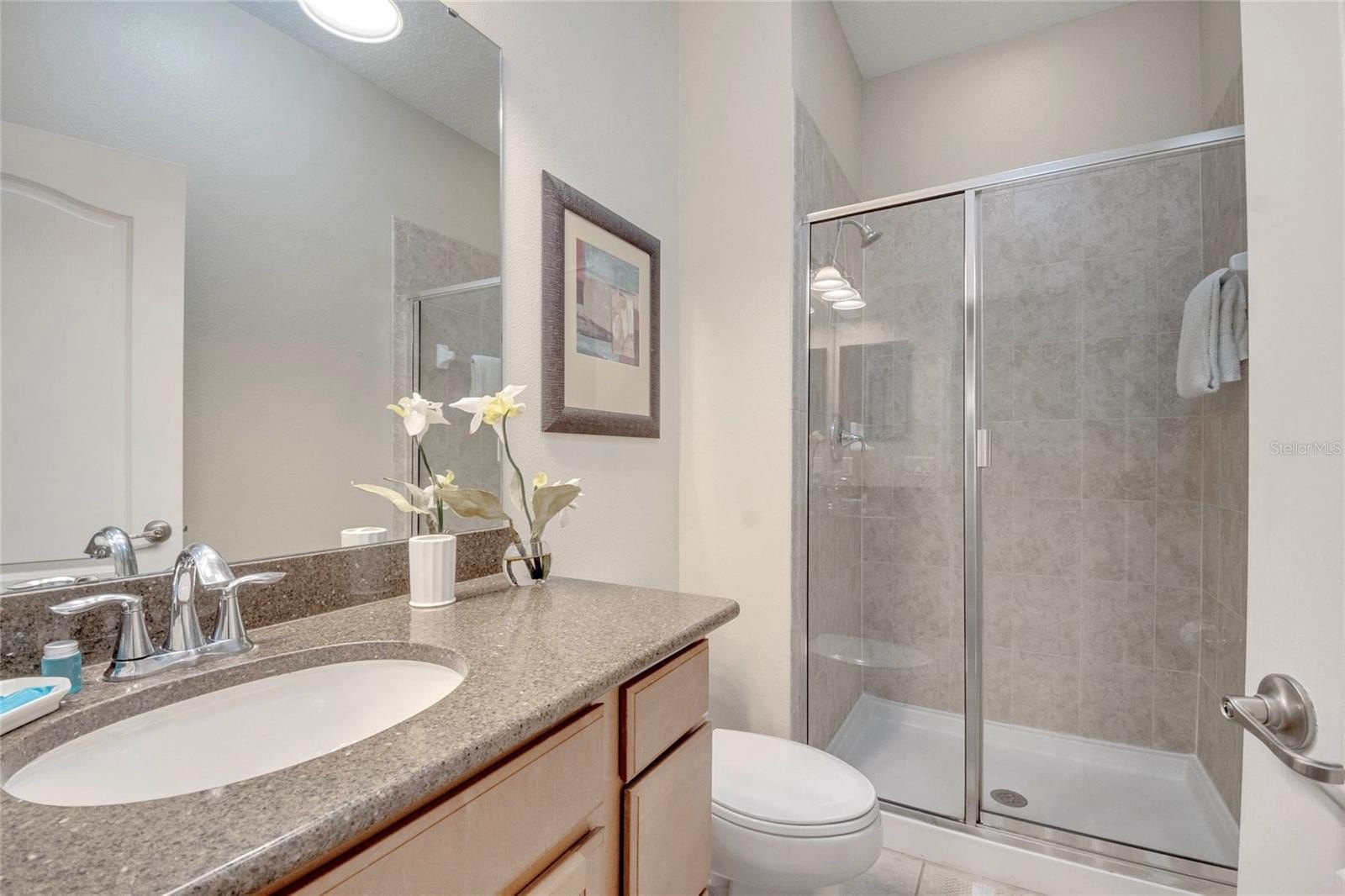 Not everyone wants to coordinate pest control, install their own internet or worry about lawn care. At 8958 Candy Palm Road, you don’t have to. The HOA covers Spectrum internet and cable, exterior pest control, landscaping, and even valet trash service - because yes, that’s also a thing here. And bonus point, you'll be in a gated community! Inside, you’ll find a 4-bedroom, 3-bath layout with a full bedroom and bathroom downstairs, ideal for guests or anyone who doesn’t do stairs. Out back, a private screened-in patio with a splendid in-ground pool gives you a quiet space to enjoy. The community? Think less “subdivision” and more “small resort.” There’s a clubhouse pool, gym with sauna, arcade, movie theatre, bar & grill, and cafe/marketplace- all without ever leaving the gate. And you’re just about 6 to 7 miles (roughly a 10-15 minute drive) from Walt Disney World® Resort. Orlando International Airport (MCO) is around 30 minutes away. Meanwhile, major dining options and shopping are just minutes beyond the gate. Use it full-time, rent it part-time, or lock it up and use it when the timing’s right. This one’s flexible - just not boring.