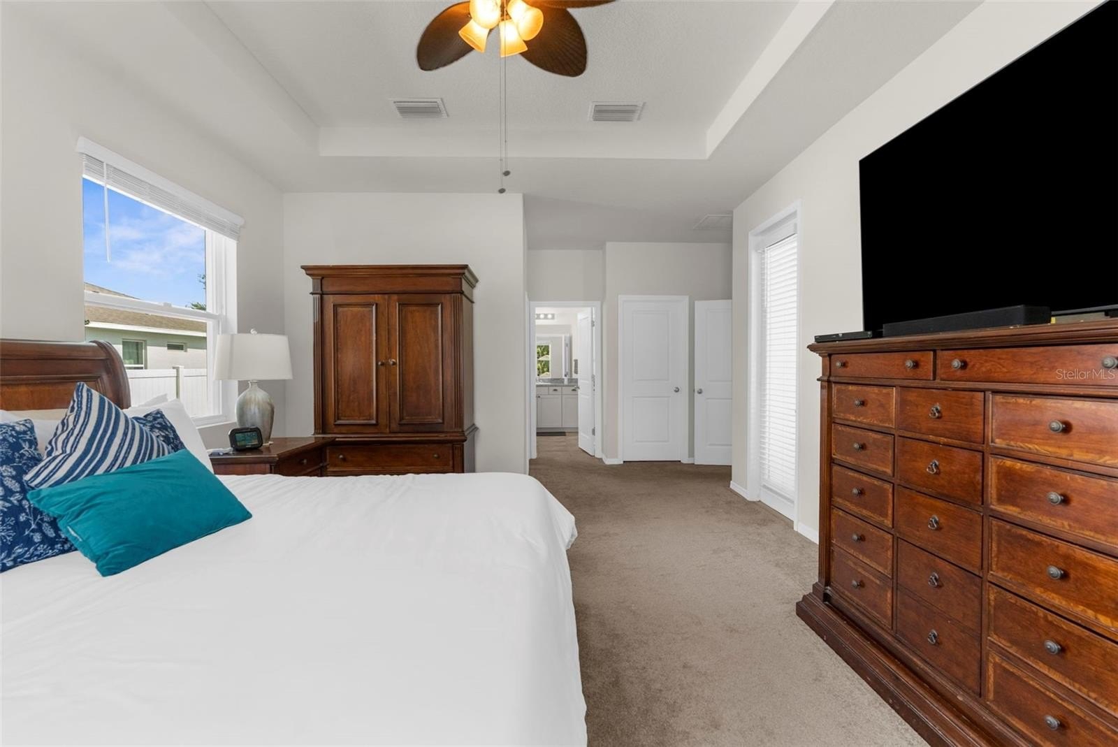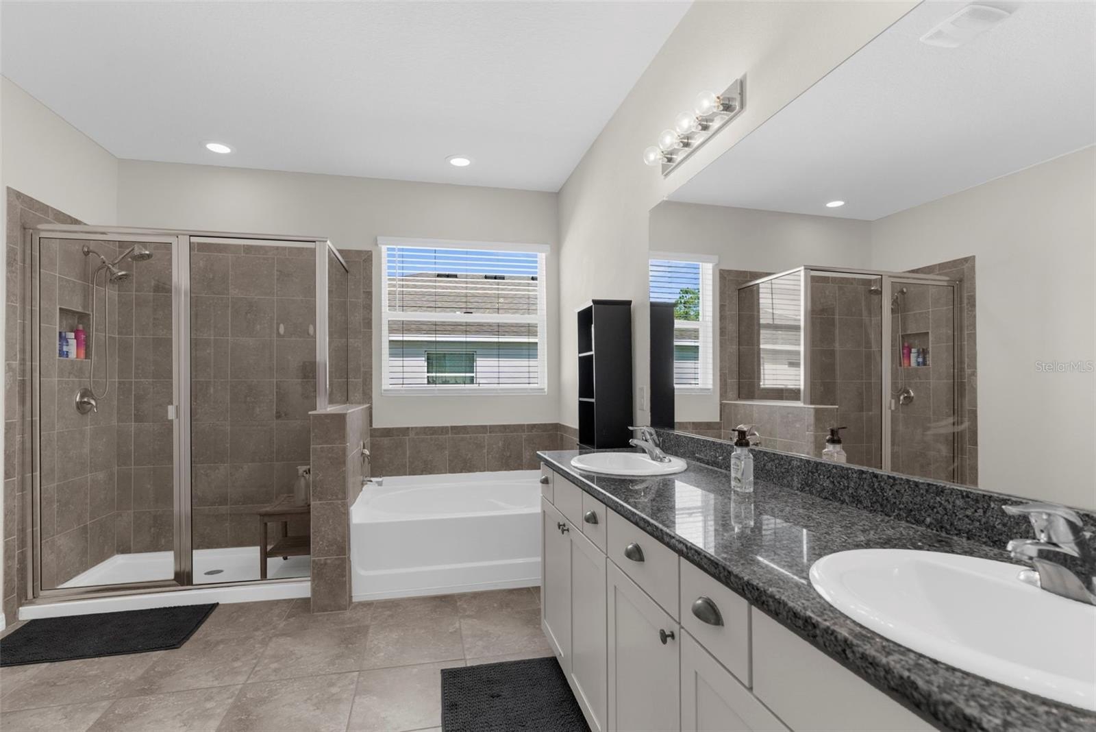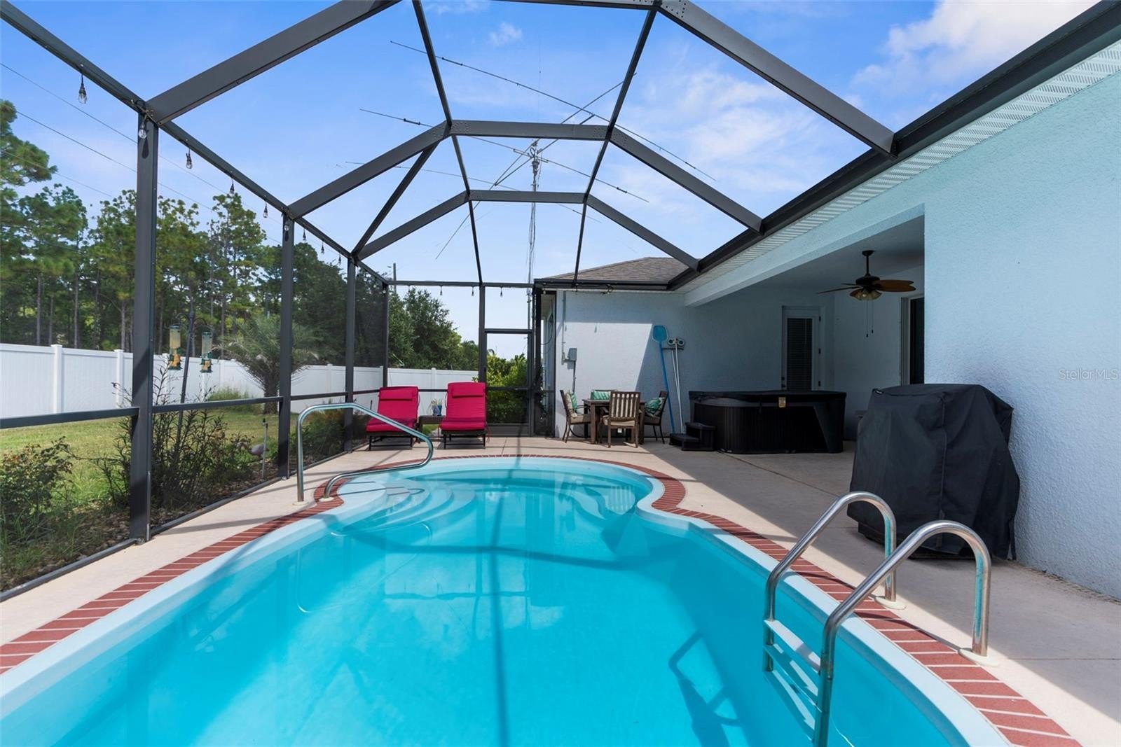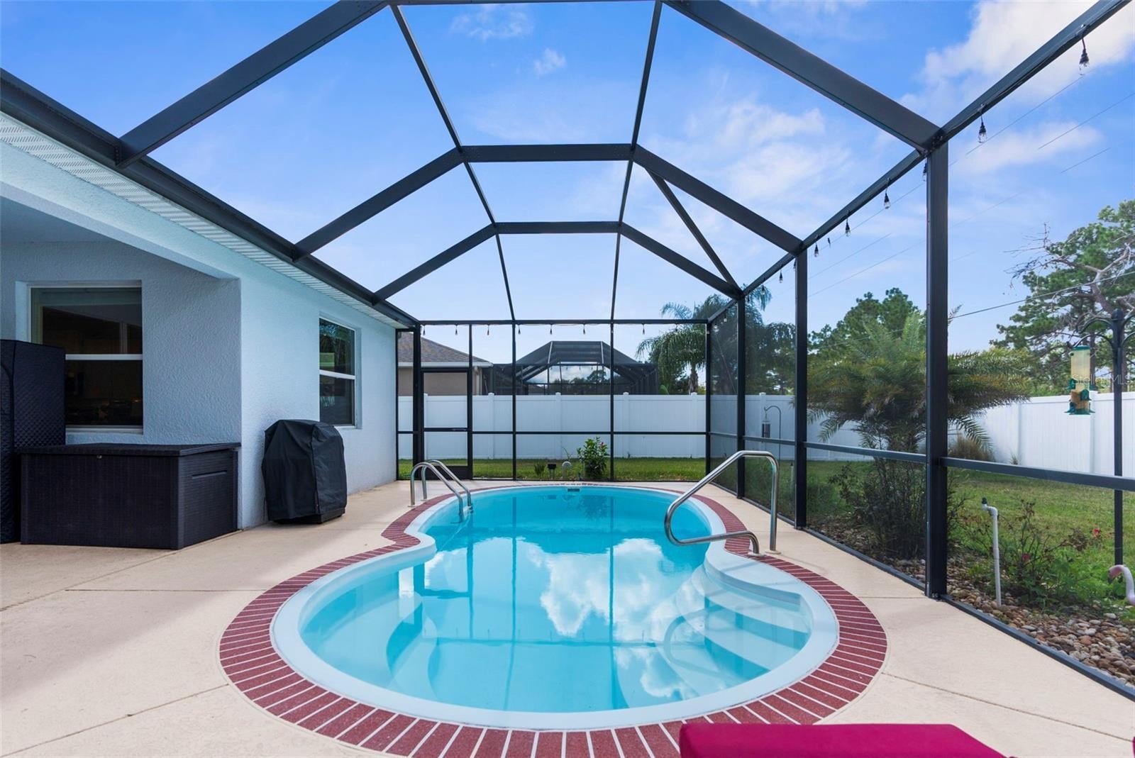 BACK ON MARKET NO FAULT OF SELLERS CLEAN 4 POINT. Welcome to this beautifully maintained 4-bedroom, 3-bath POOL home, located In the GATED community of Sterling Hill! Inside, the home offers a spacious, OPEN-CONCEPT floor plan with upgrades throughout. The kitchen boasts 48'' upgraded cabinetry with crown molding, granite countertops, a large center island, and is open to both the living and dining areas! The dining room features three oversized windows overlooking the pool and plenty of space for a hutch or buffet, while the living room is anchored by triple sliding glass doors that leads to the pool area. The PRIMARY SUITE is a true retreat with TRAY ceilings, brand-new carpet, and private access to the pool. Enjoy dual walk-in closets, a luxurious en suite bath with dual granite-topped vanities, oversized garden tub, and a large tile walk-in shower. A PRIVATE GUEST SUITE is located just off the living room, offering a WALK-IN-CLOSET and an EN-SUITE BATH with a stand-up shower. Two additional bedrooms are located at the front of the home, separated by a full bath with a tub/shower combo! Step outside to enjoy the in-ground HEATED POOL, complete with a screened enclosure and optional standalone Jacuzzi. Enjoy year-round swimming with a SOLAR-HEATED pool and relax in your private, fully fenced backyard, featuring attractive white vinyl fencing and lush landscaping. This home offers a range of additional features, including a brand-NEW garage door opener, GUTTERS, a NEW dishwasher, and ceiling fans throughout. The washer and dryer are optional and may convey with the sale. You'll find PORCELAIN TILE flooring in the throughout the home, as well as an extra-tall front door that adds a touch of grandeur. The DEDICATED LAUNDRY ROOM includes built-in shelving and a spacious storage closet. Outside, the Jacuzzi is optional—it can remain for your enjoyment or be removed at the buyer's request. Situated in a vibrant community, residents have access to outstanding amenities such as TWO swimming pools, a splash pad, a playground, RV storage, and a fully equipped gym. Sports enthusiasts will appreciate the tennis courts, volleyball, basketball courts, picnic areas, nature trails, and a brand-new pickle-ball court currently being constructed AND A renovated dog park is also underway!! Located just minutes from beaches, golf courses, dining, shopping, AND medical facilities, with easy access to major roads and the Suncoast Expressway (589), commuting to Tampa and the airport is a breeze! Sterling Hill offers a low HOA cost without sacrificing amenities, making it the BEST community for families, professionals, and anyone seeking both comfort and convenience. Whether you're upsizing or looking for a spacious home with room to grow, this neighborhood delivers! Be sure to watch the walk through tour vide, click ''vitrual tour''