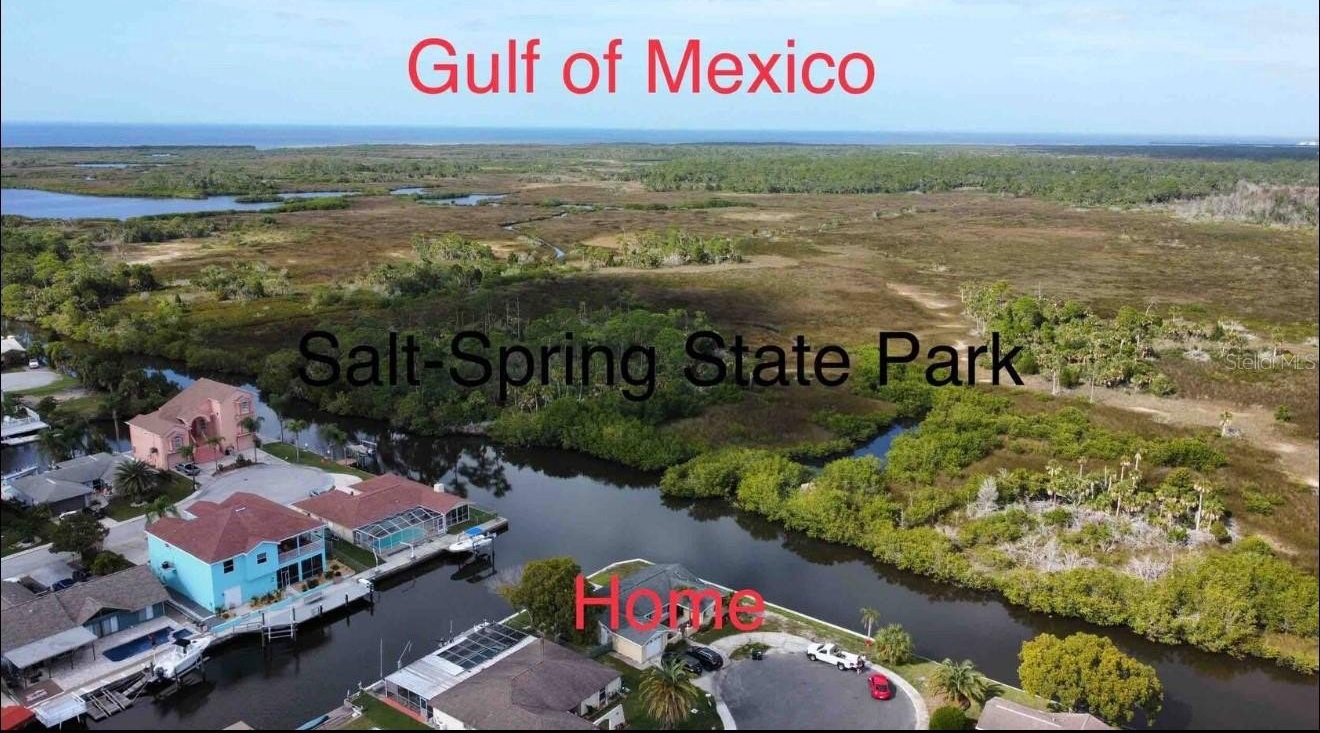Discover this beautiful 3-bedroom, 2-bathroom home perfectly positioned on two sides of waterfront, offering breathtaking views from nearly every window. Nestled at the end of a quiet cul-de-sac and bordering the serene Werner-Boyce Salt Springs State Park, this property provides unmatched privacy and natural beauty. Recent updates include fresh interior and exterior paint, new vanities in both bathrooms, updated kitchen cabinets, and stainless steel appliances, a brand new 221 ft seawall, build just 3 years ago, protects the property along both canals and includes a floating boat dock with up to 6,000 pounds lift capacity-Perfect for your favorite water toys. Outdoor living is just as appealing with a beautiful fire pit in the backyard facing the water-ideal for sunsets, entertaining, or simply. Outdoor living is just as appealing with a beautiful fire pit in the backyard facing the water, ideal for relaxing evenings or entertaining guests.