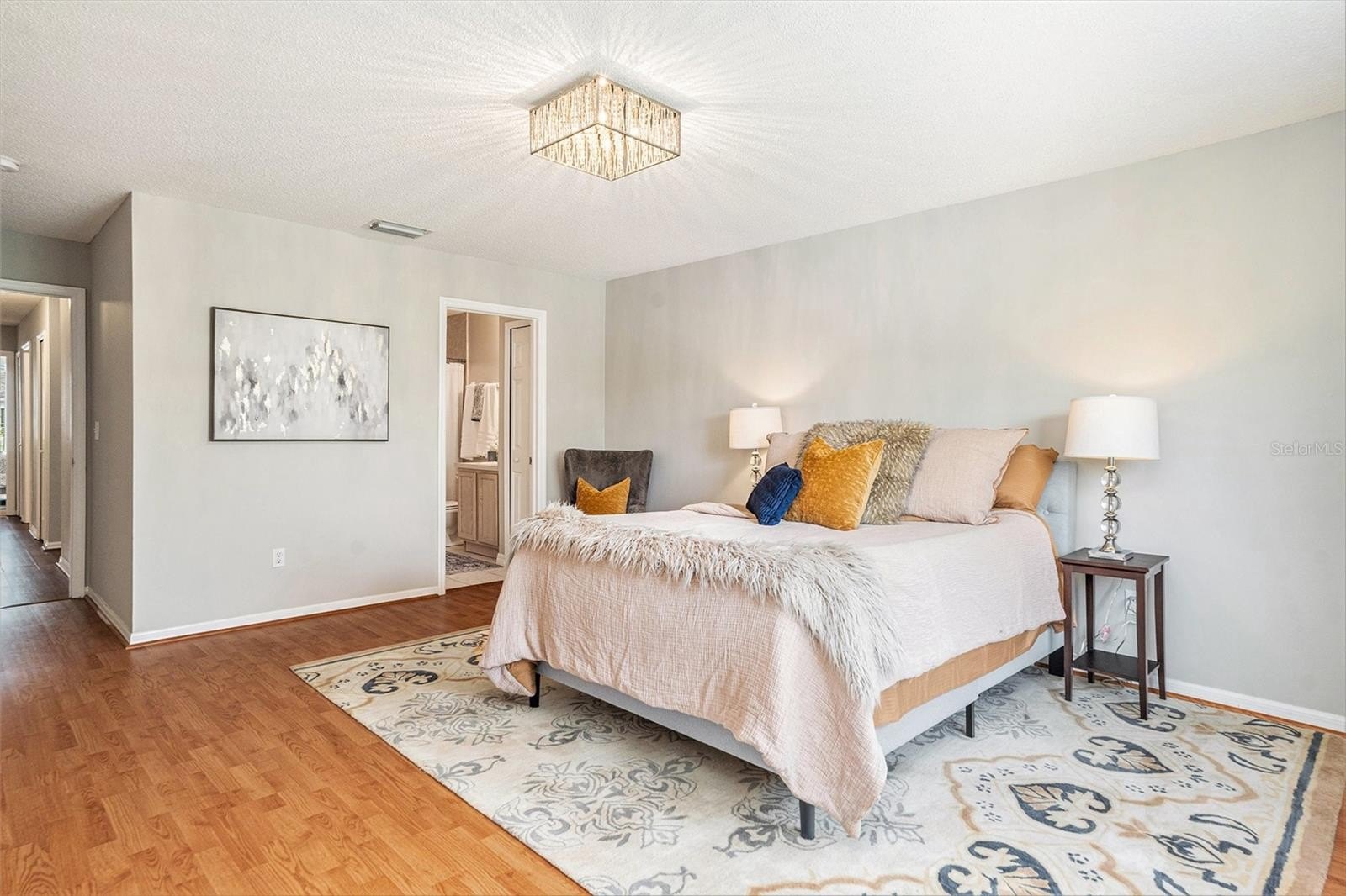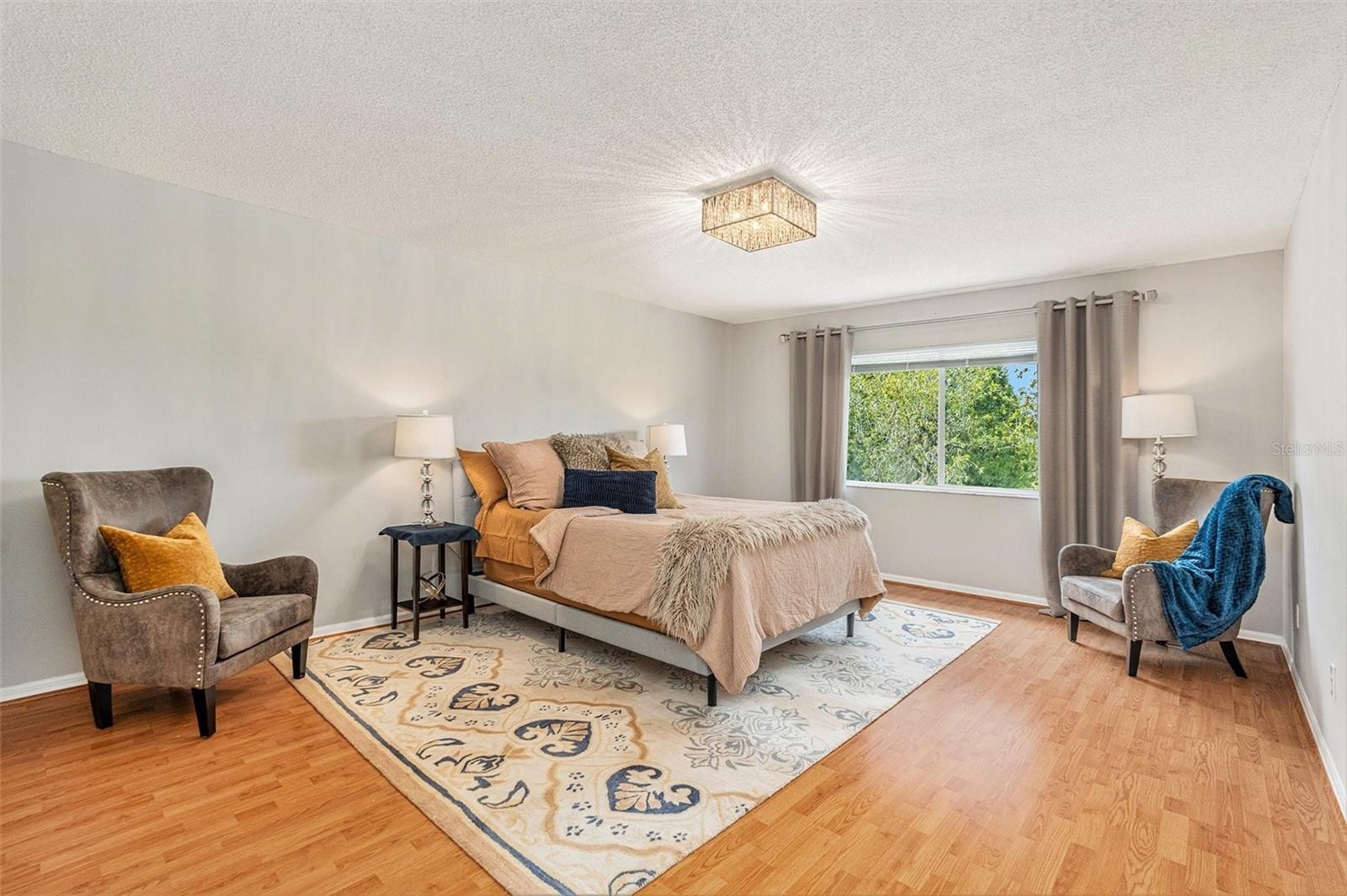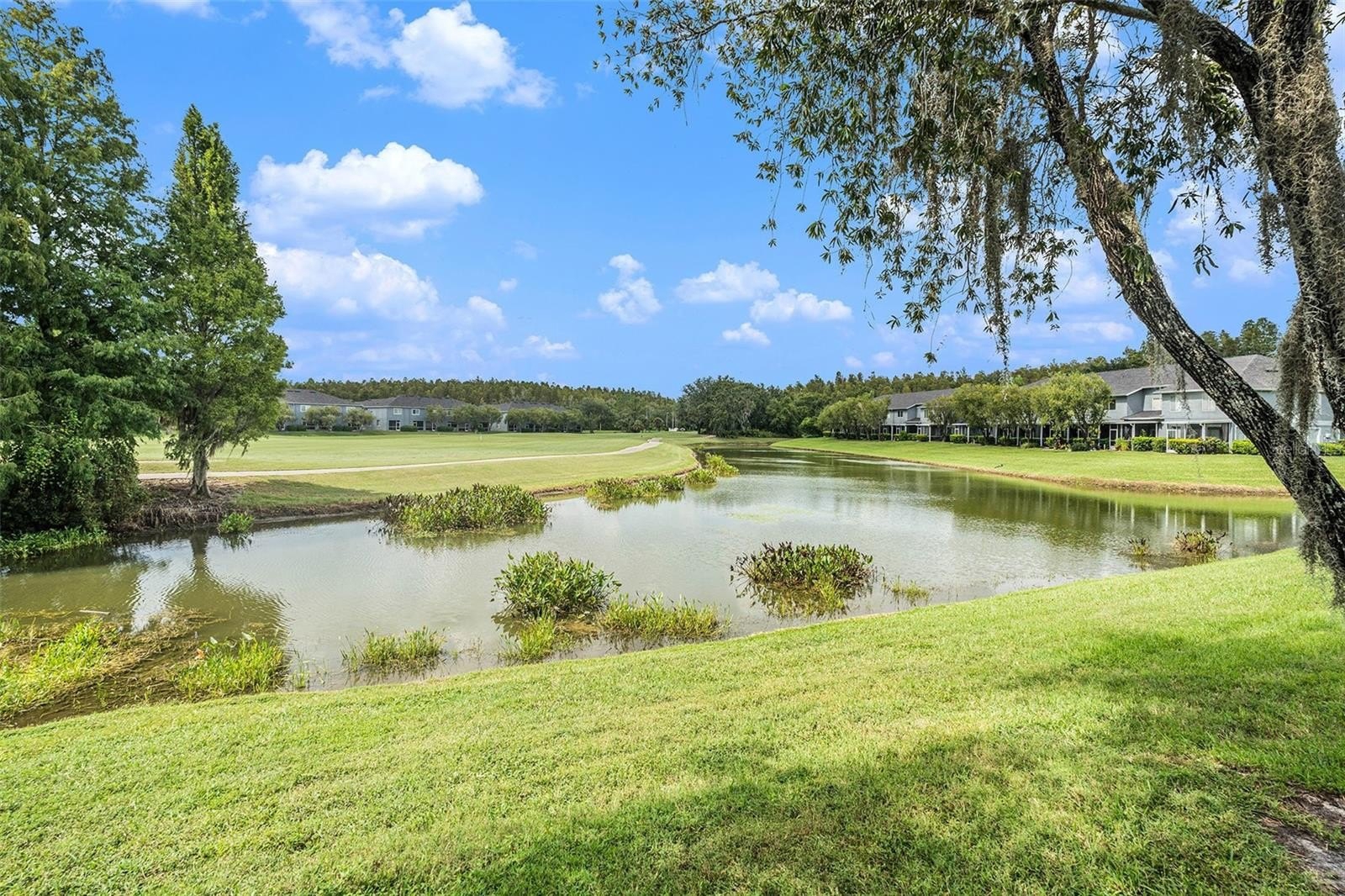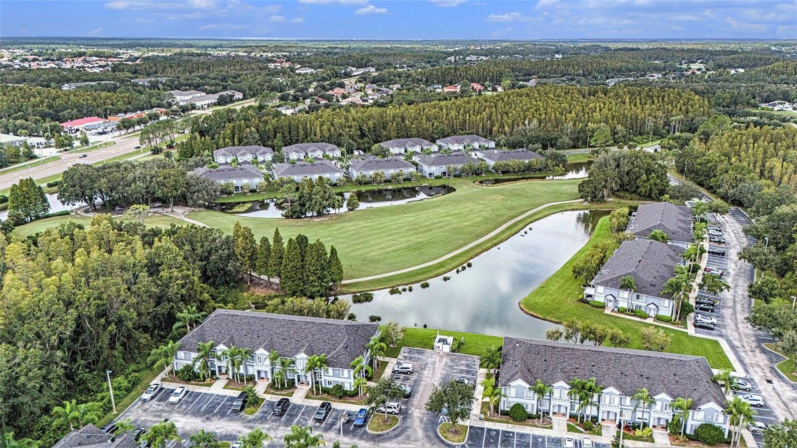 Upstairs, you’ll find hardwood flooring throughout both spacious bedrooms. A full bathroom and in unit Laundry for convenience in the front wing and the primary Suite features a full walk-in shower, spacious walk-in closet and breathtaking sunset views! Whether it's morning coffee or evening wine, enjoy peaceful moments on your screened in covered lanai overlooking lush fairways and a sparkling pond—your personal slice of paradise, — true Florida living at its finest, this maintenance free townhome offers more than just a place to live, it offers a lifestyle. Whether you're looking for a full-time residence or a low-maintenance second home, this property has it all! Don’t miss this opportunity to own a beautifully upgraded home with a view—schedule your private tour today. Located just minutes from top-rated schools, shopping, dining, and the stunning Gulf Beaches. Perfectly Priced for 1st time homebuyer or downsizing for your next chapter in life this townhome is a must-see.