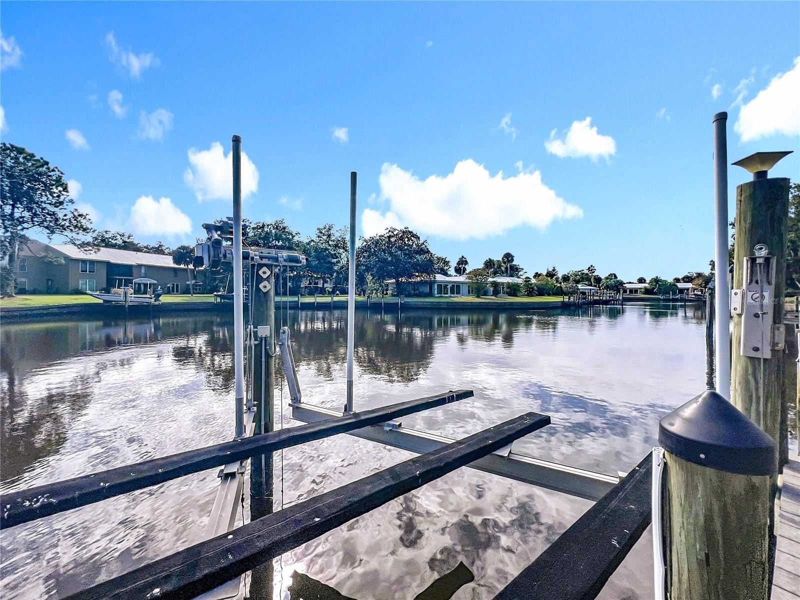 WATERFRONT CONDO WITH BOAT DOCK WITH HEAVY LIFT. No more lifts nor boat docks can be installed in the development, so units with lifts and docks bring a healthy price. It is all about the water and boating. End unit with wide water frontage for SUNSET VIEWS. Owners see manatee & dolphins on a regular basis right outside their window! This property incurred flooding from hurricane Helene and has over $120K IN RENOVATIONS paid for through insurance. Due to the HOA's marvelous flood insurance coverage the ENTIRE CONDO HAS BEEN renovated with: NEW DOORS, NEW CABINETS & GRANITE IN the KITCHEN & BOTH BATHROOMS, NEW HURRICANE SLIDING DOORS, NEW APPLIANCES, NEW HOT WATER HEATER, FRESHLY PAINTED.