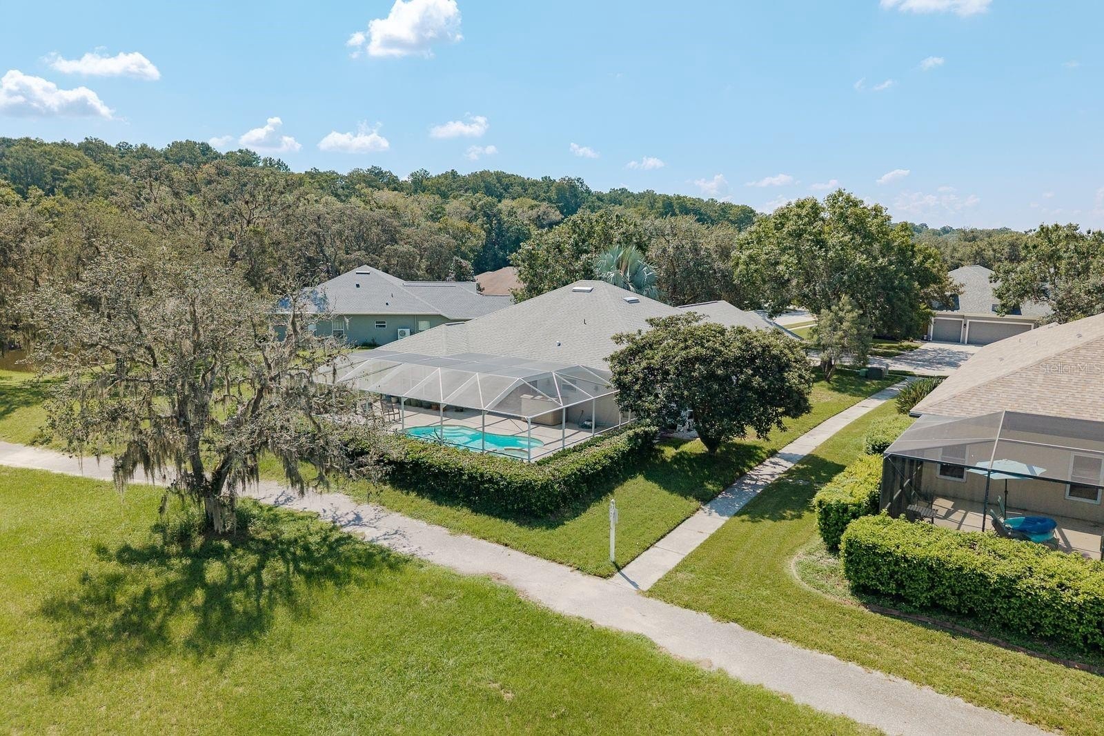 Behind the home, the former fairway has transformed into a **serene nature trail**, offering peaceful views, morning walks, and a true sense of privacy with no rear neighbors. Picture evenings on the covered lanai, the soft hum of crickets in the background, and plenty of space to relax, entertain, or watch the big game outdoors. A 3-car garage with built-in cabinetry adds the perfect finishing touch for storage, hobbies, or a workshop.