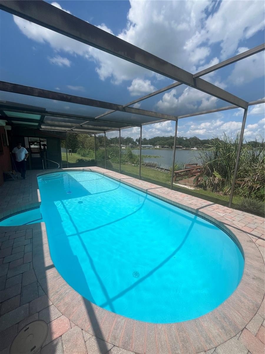 Rare Opportunity to own this 3 Bedroom 2 Bath 2 Car Garage pool home on Lake Shangri La (as locals call it) on a massive 193 X 90 Lot. Mother Nature sits right in your back yard with gorgeous sunrises & sunsets, birds & ducks are daily visitors, world class freshwater fishing, canoeing, turtles and more! No gas operated waters crafts to disturb this 16 acre paradise. Views of the lake from the kitchen table, back porch & screened in pool & lanai will keep your eyes on the lake at every turn. This lovely home has been very well maintained and taken care of with a new roof in December of 2023. Centrally located 1 hour from Disney, 1 hour from Clearwater beach, 20 minutes from the Tampa Airport & 30 minutes from Downtown Lakeland. In addition to the home the property also includes two large 12 X 15 Sheds (fishing gear?). Homes like this don't come along very often, schedule your viewing today!