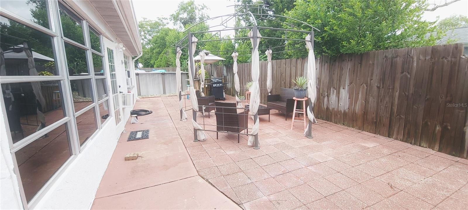 But the real magic was out back. The rear of the home opens to a large, enclosed lanai, a hallmark of Florida living. This is more than just a porch; it is a sanctuary where you can relax and enjoy yourself. A spacious open patio extends from the lanai to the pool area with a tiki bar and room for ample patio seating, and perfect for grilling and outdoor dining. The main attraction is a large, above-ground pool, always sparkling in the sunlight. You can immediately begin planning your summer days, imagining cannonballs and splash fights under the Florida sun. The fence surrounding the yard provided a sense of privacy and safety, ensuring your little slice of paradise is truly your own.