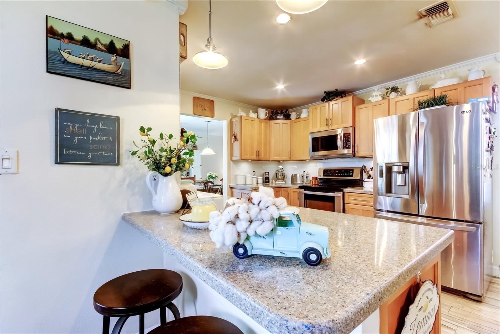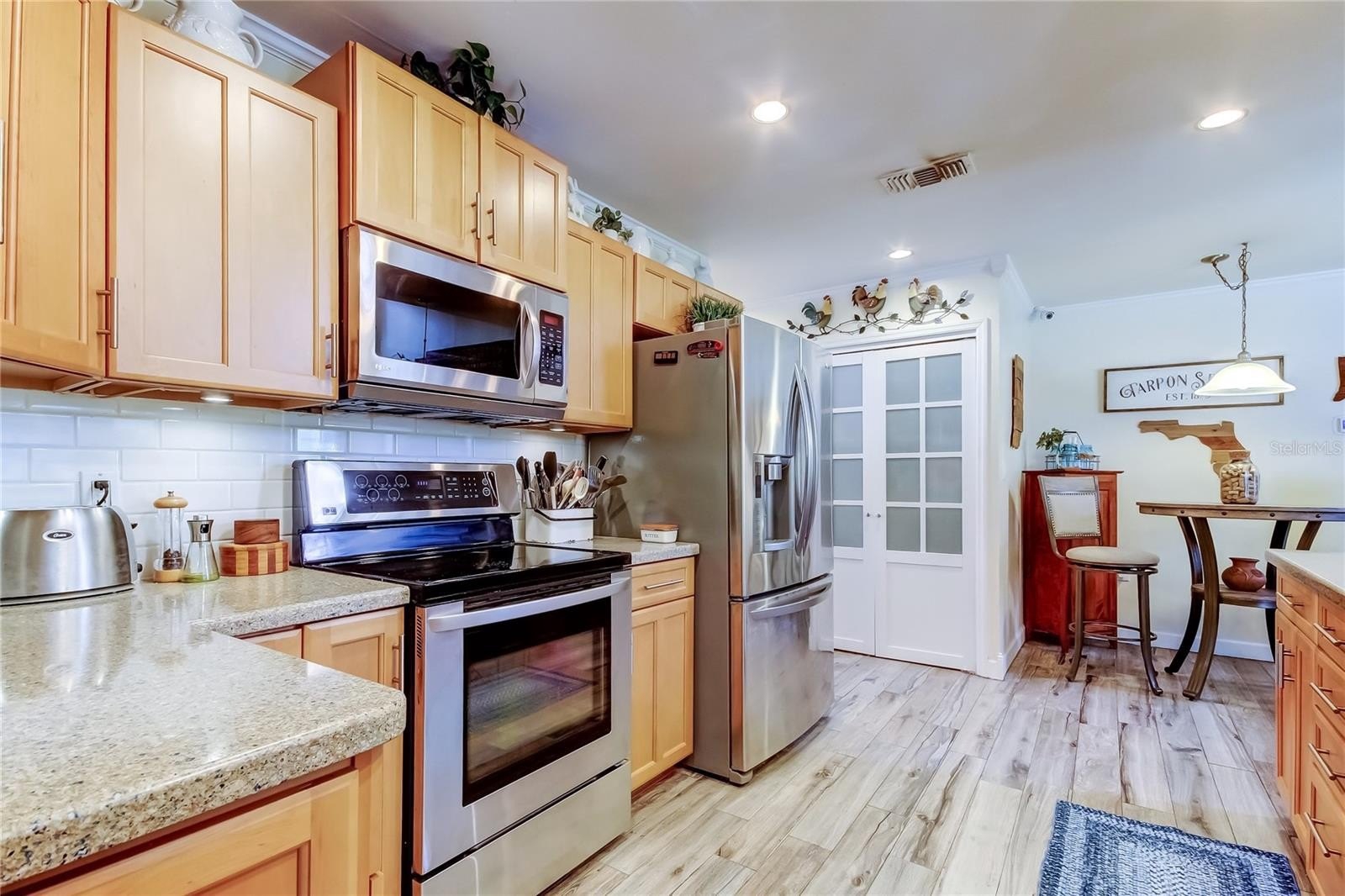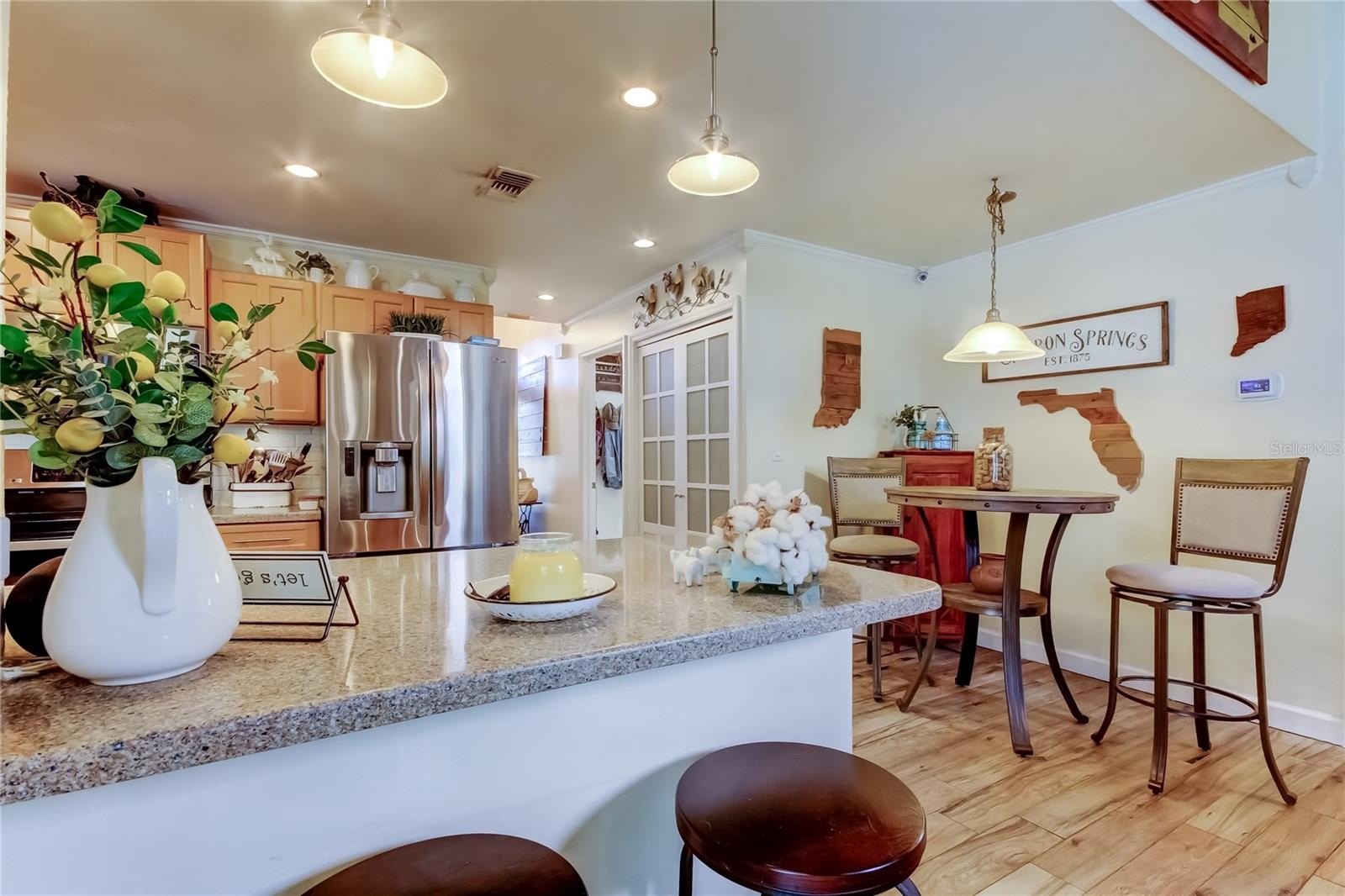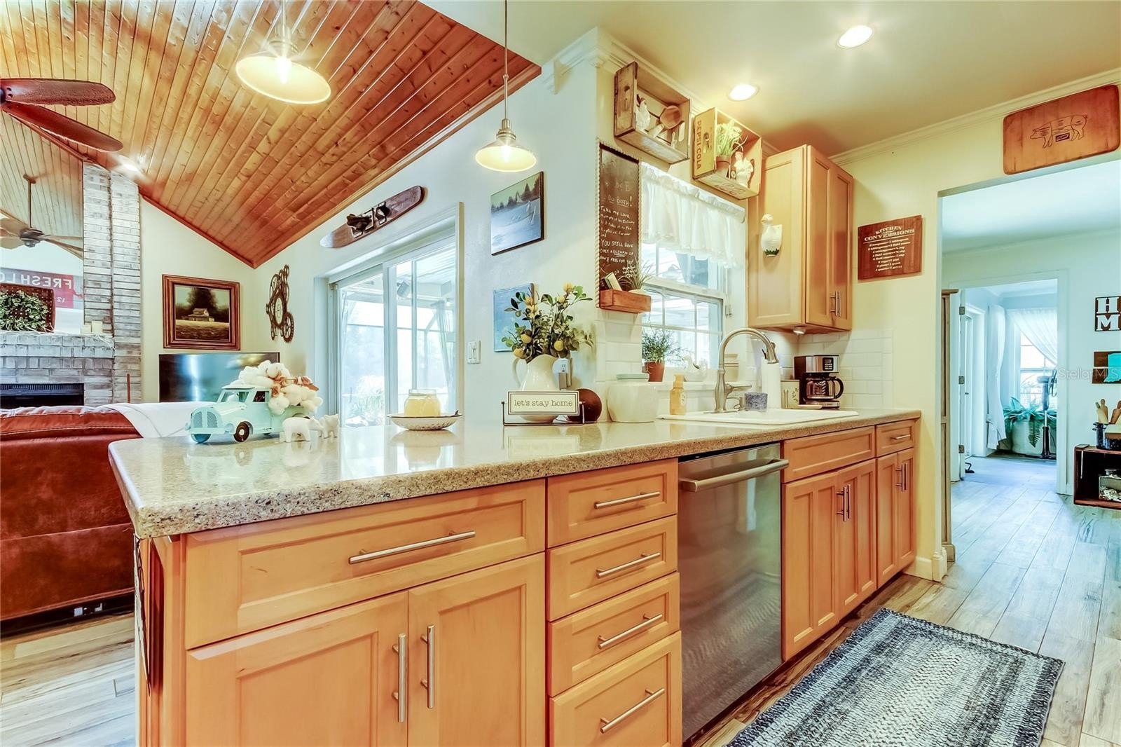 10K Price IMPROVEMENT! BEAUTIFUL home located on a CONSERVATION , almost 1/4 ACRE lot within walking distance to the GULF and NO FLOOD required and NEVER flooded. This 3/2/2 home had been REMODELED with new KITCHEN WOOD cabinets, QUARTZ countertops and updated APPLIANCES. COMBINATION living room and dining room, SPLIT BEDROOM plan, lovely FAMILY ROOM with wood burning BRICK FIREPLACE and VAULTED WOOD ceiling. BOTH bathrooms have been UPDATED with new vanities and showers. PRIMARY En-Suite bath with DUAL sinks, GRANITE top and FREESTANDING TUB and full SHOWER. THE large screened POOL area with FLAGSTONE deck and SOLAR heated pool, POOL BAR and plenty of ENTERTAINMENT area for your enjoyment. GENERATOR will stay with the home and GARAGE has window/wall AC and so many built-ins. ROOF 2012 AC 2015. Take a walk to KEY VISTA PARK, go over to the DOG PARK, FISHING PIER, MISS VICKI's for dinner and ANCLOTE PARK and BEACH. Homes in SAND BAY rarely come available for sale. SO don't miss this one, CALL for your appointment TODAY!