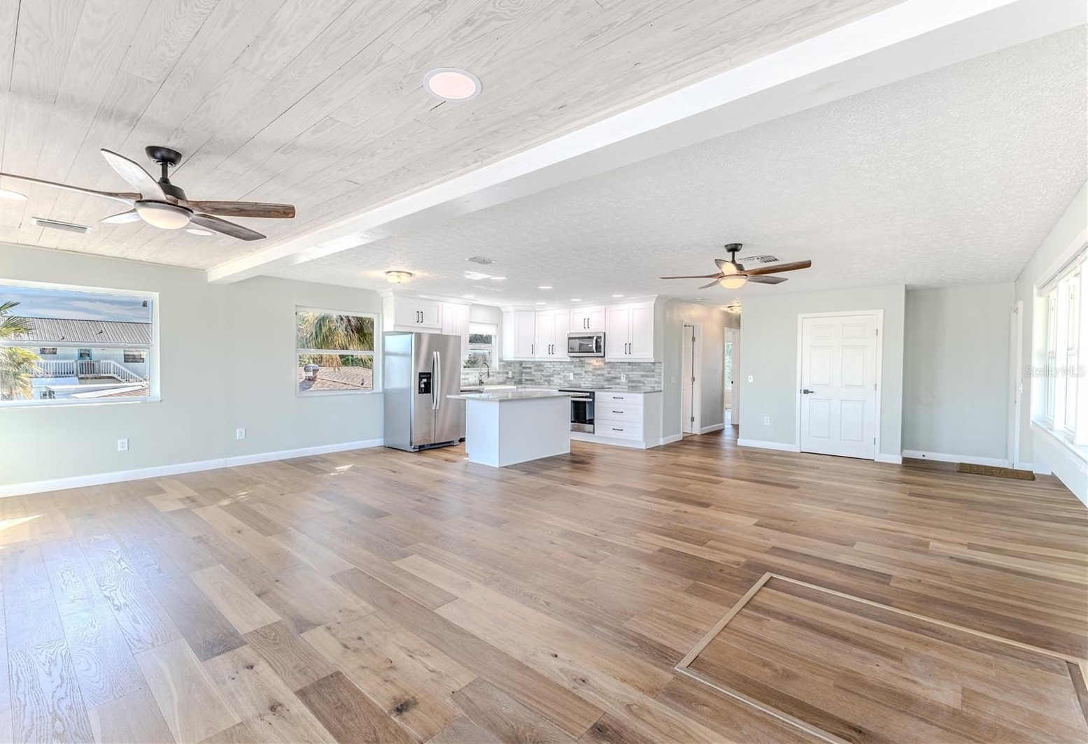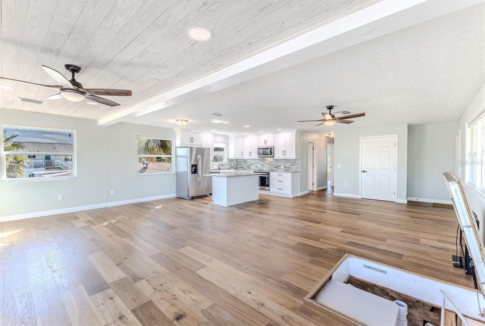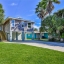 Waterfront paradise! This fully renovated 2-bedroom, 2-bath stilt home offers modern coastal living on a deep-water canal just minutes from the Gulf. Every detail has been beautifully updated — simply move in and start living your waterfront dream. Step inside to discover engineered hardwood floors, a stunning chef's kitchen with soft-close wood cabinetry, granite countertops, a large island, stainless steel appliances, and a farm-style sink. The open-concept layout flows seamlessly into the living area, featuring hurricane-impact windows (2024) and a three-panel sliding glass door that opens to a 10-foot deck with peaceful canal, mangrove and Gulf views.