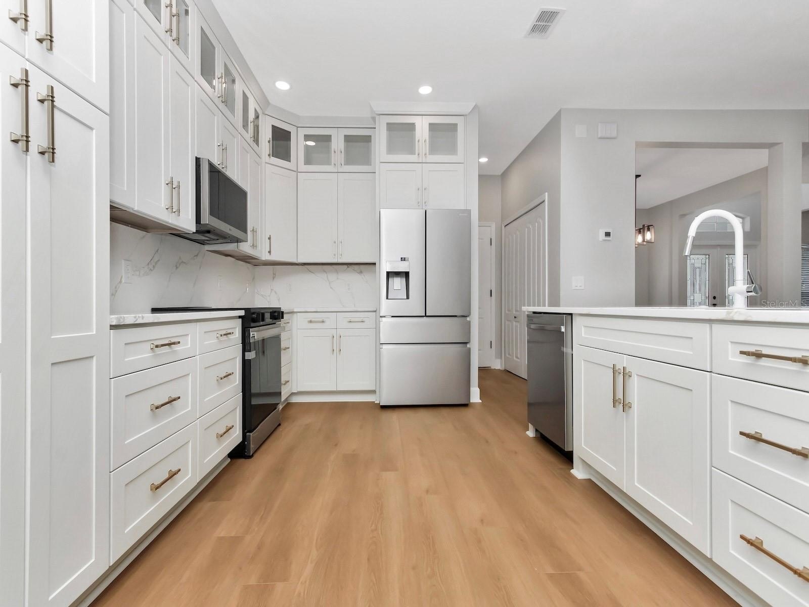 Fully Renovated 5 Bed 3 Bath 3 Car Garage Home Features Direct Golf Course Frontage and Serene Water Views. This move-in-ready residence showcases a Brand-New Roof, Brand-New AC systems, Fresh Interior/Exterior Paint, and New Premium Commercial-Grade LVP Flooring throughout. The chef-inspired kitchen anchors the home with Brand-New Quartz Countertops, soft-close Double-Stack Cabinetry with glass uppers, and a suite of Brand-New Stainless Steel Appliances including refrigerator, range, dishwasher, washer, and dryer. Every bathroom has been transformed with Brand-New 24x48 Porcelain Tile, Quartz Vanities, and Contemporary Faucets. The oversized primary retreat is complete with a multi-jet rain shower, dual LED mirrors, and a spacious walk-in closet. Additional bedrooms have flexibility for guests, home office, or gym. Step outside to your Private Oasis: a Resurfaced Sparkling Pool nestled within a Newly Screened Lanai, offering seamless indoor-outdoor living and panoramic views of the lush golf course fairway. The expansive backyard delivers ample room for play, pets, or future expansions—all while enjoying unobstructed golf-front serenity. Located in the heart of Rock Springs, moments from A-rated schools, Wekiva Springs, Kelly Park’s 180-acre sports complex, and the upcoming Kelly Park Crossing retail corridor (Publix-anchored, dining, shops). Easy access to the 429, 441, and downtown Orlando. Turnkey Luxury. Golf-Front Serenity. Immediate Occupancy. Schedule your private tour before this one-of-a-kind property is gone.