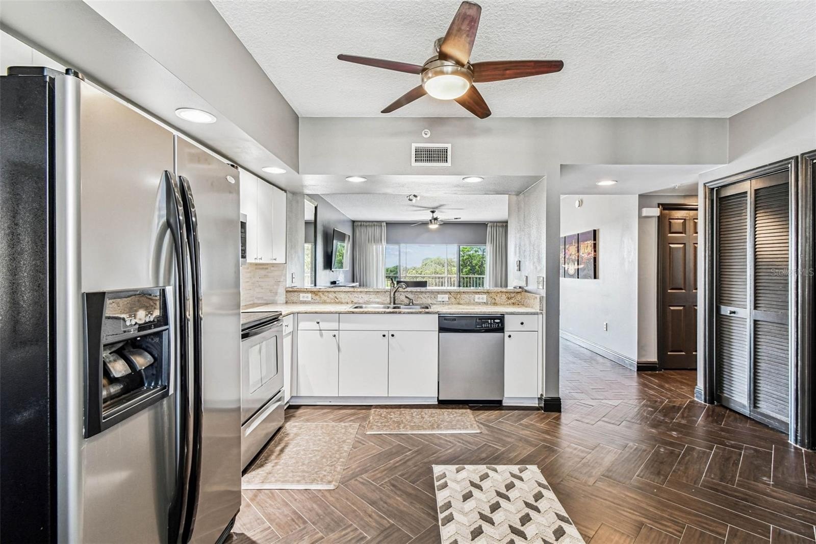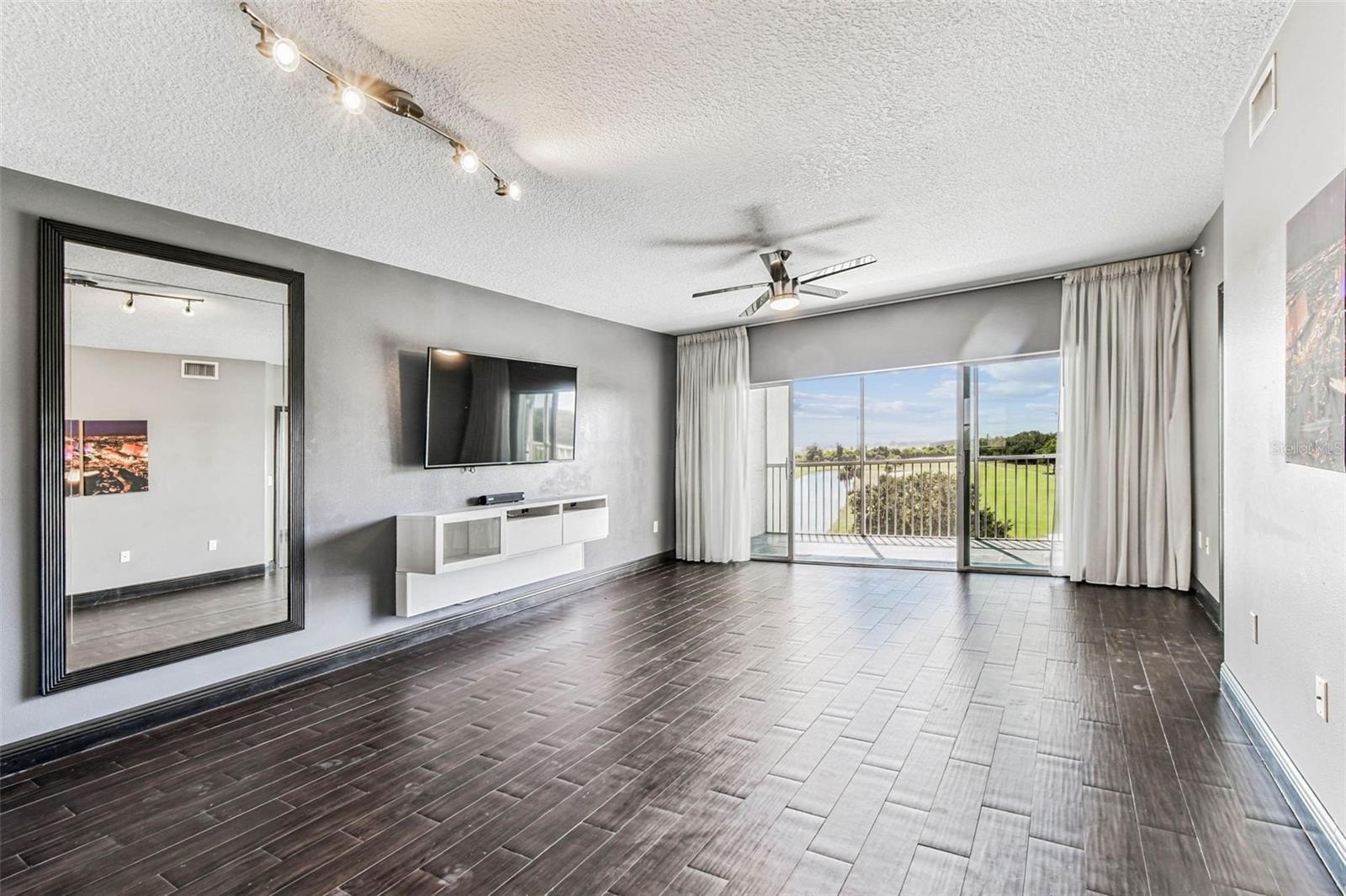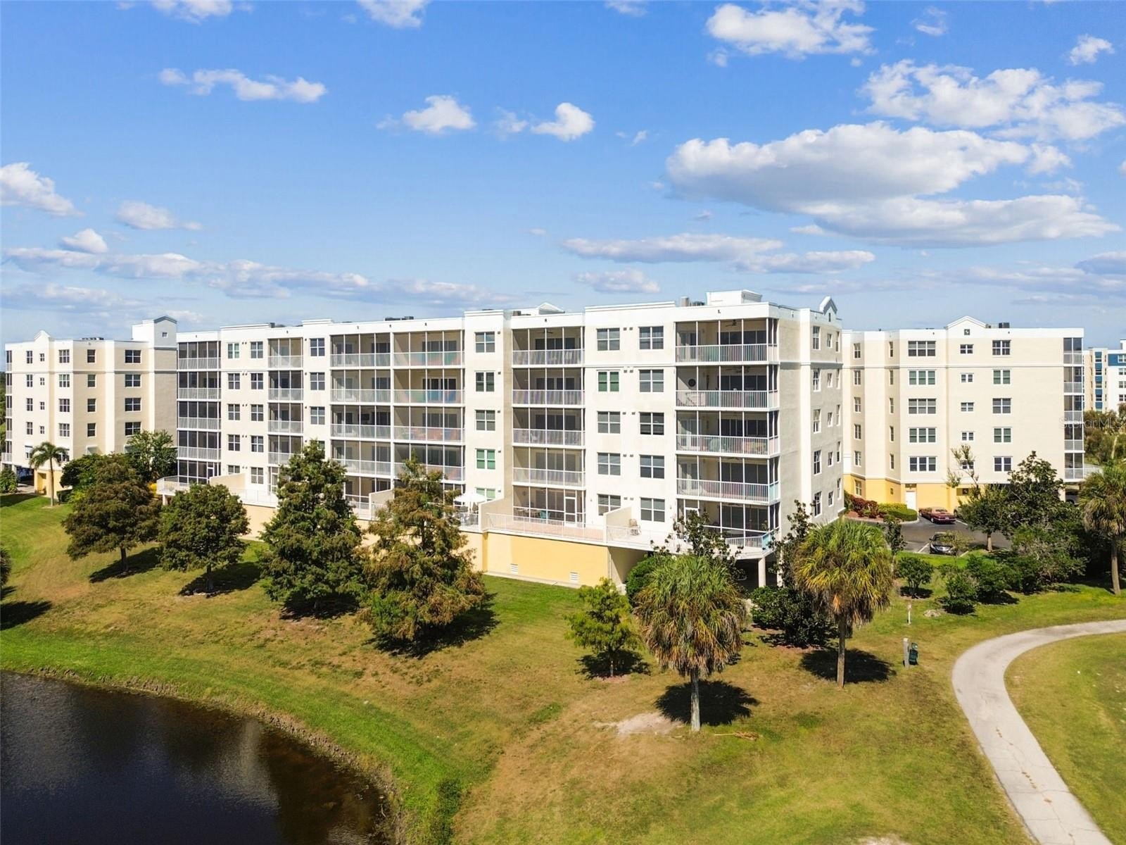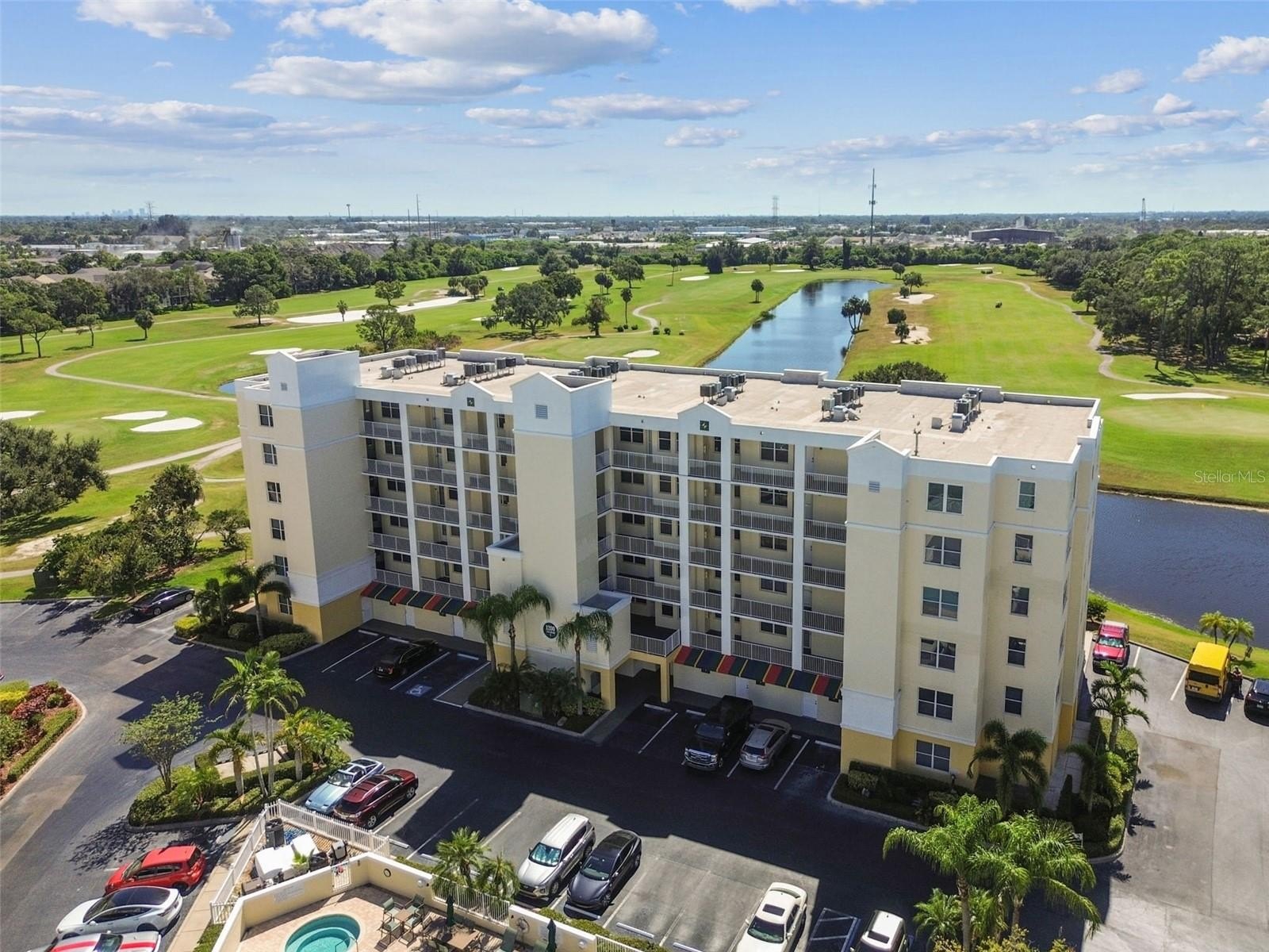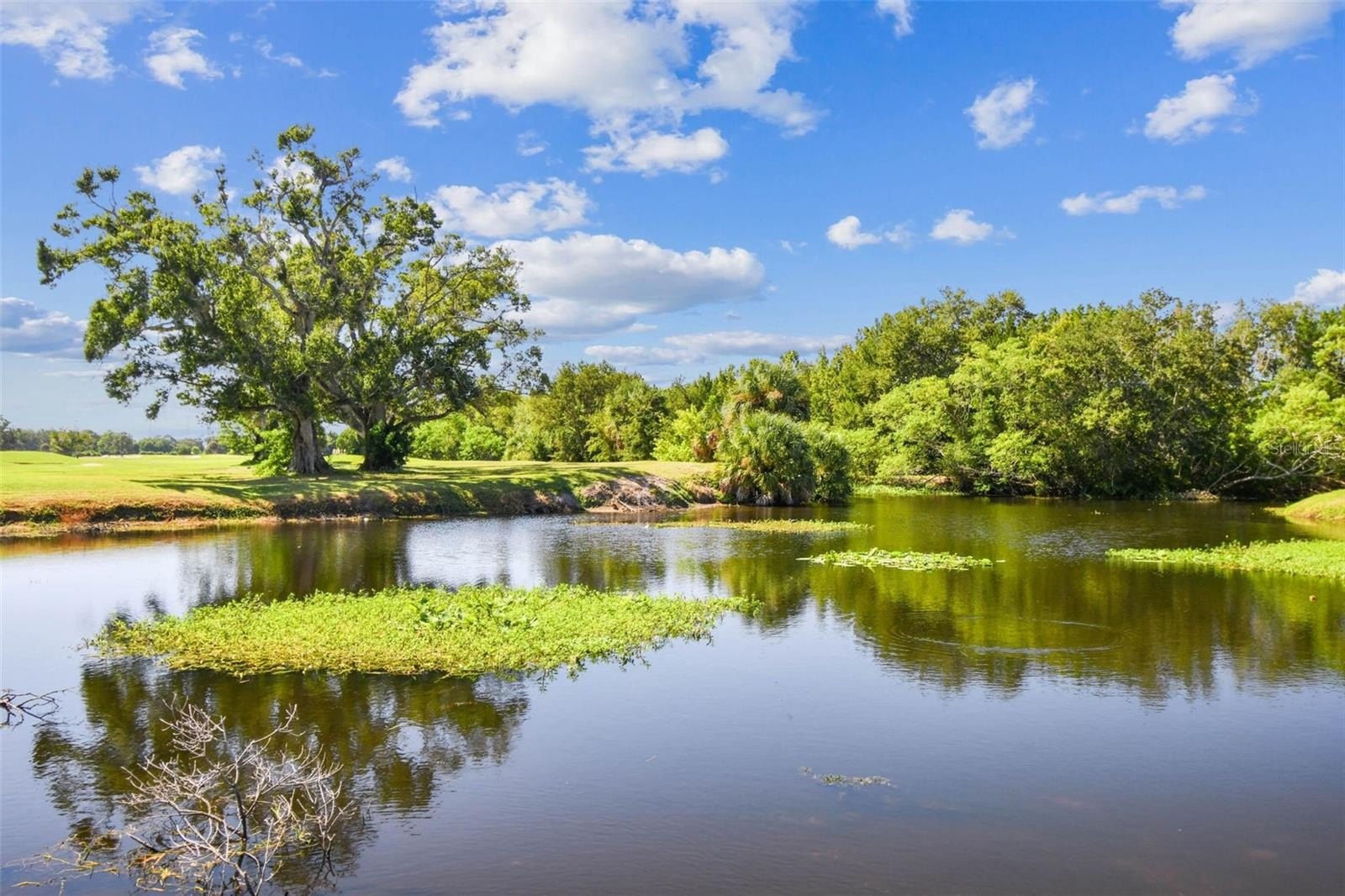 Enjoy serene golf course living in this beautifully maintained 2-bed, 2-bath lakefront condo at 1200 Country Club Drive #2405. This spacious home features high ceilings, an open-concept layout, and a wide screened lanai offering panoramic 180° views of East Bay Golf Club’s fairways, greens, and natural wildlife.
