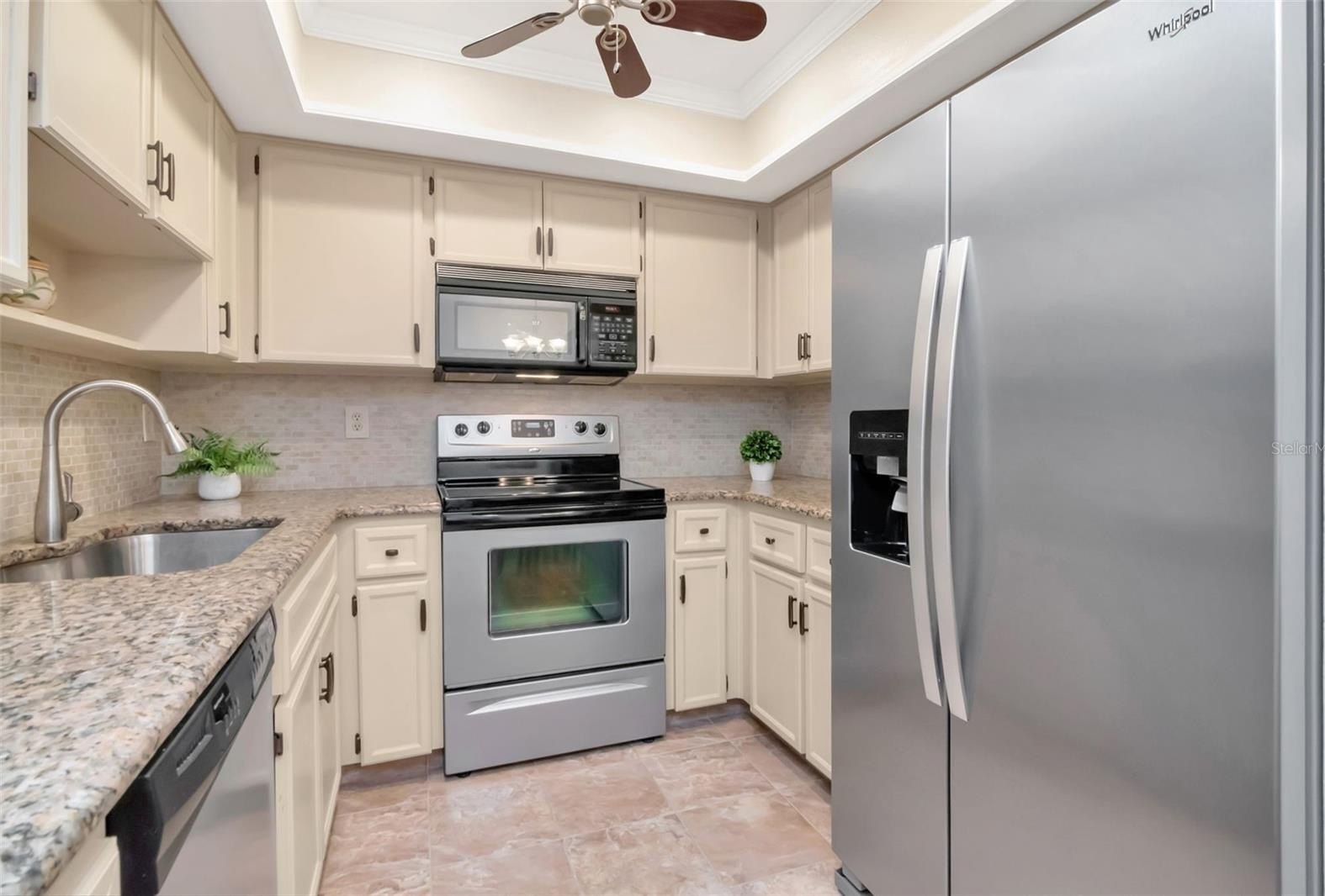 Enjoy maintenance free living in this beautiful, move-in ready villa in the highly desirable 55+ community of Highland Lakes. This corner end home is on a premium lot with a big wide open view of protected & well maintained acreage with stately trees & a green lawn. You'll love your view and the additional privacy this home affords. This villa with attached oversize garage has been substantially updated and extremely well maintained. Recent updates include hurricane rated windows & garage door, granite kitchen counters professionally painted cabinets, stainless steel Whirlpool appliances, a newer HVAC system, and beautiful easy care wood product flooring. Both bathrooms also have updates. The living/dining room combination make it a great space to relax in or entertain. A skylight over the dining area brings in lots of natural light. All appliances, including the washer and dryer convey with purchase. Furniture may also convey. Enjoy maintenance free living in desirable Palm Harbor's premier 55+ golf and lakefront community. Ownership includes your membership to the Highland Lakes HOA with endless amenities. This is definitely carefree living at its best!!! Come and take a look at this amazing villa in the incredible community of Highland Lakes. Conveniently located near beaches, parks, restaurants, and shopping. From the moment you step inside you’ll feel right at home!