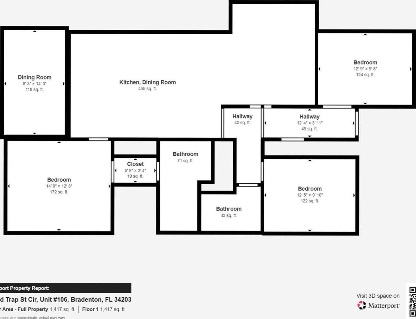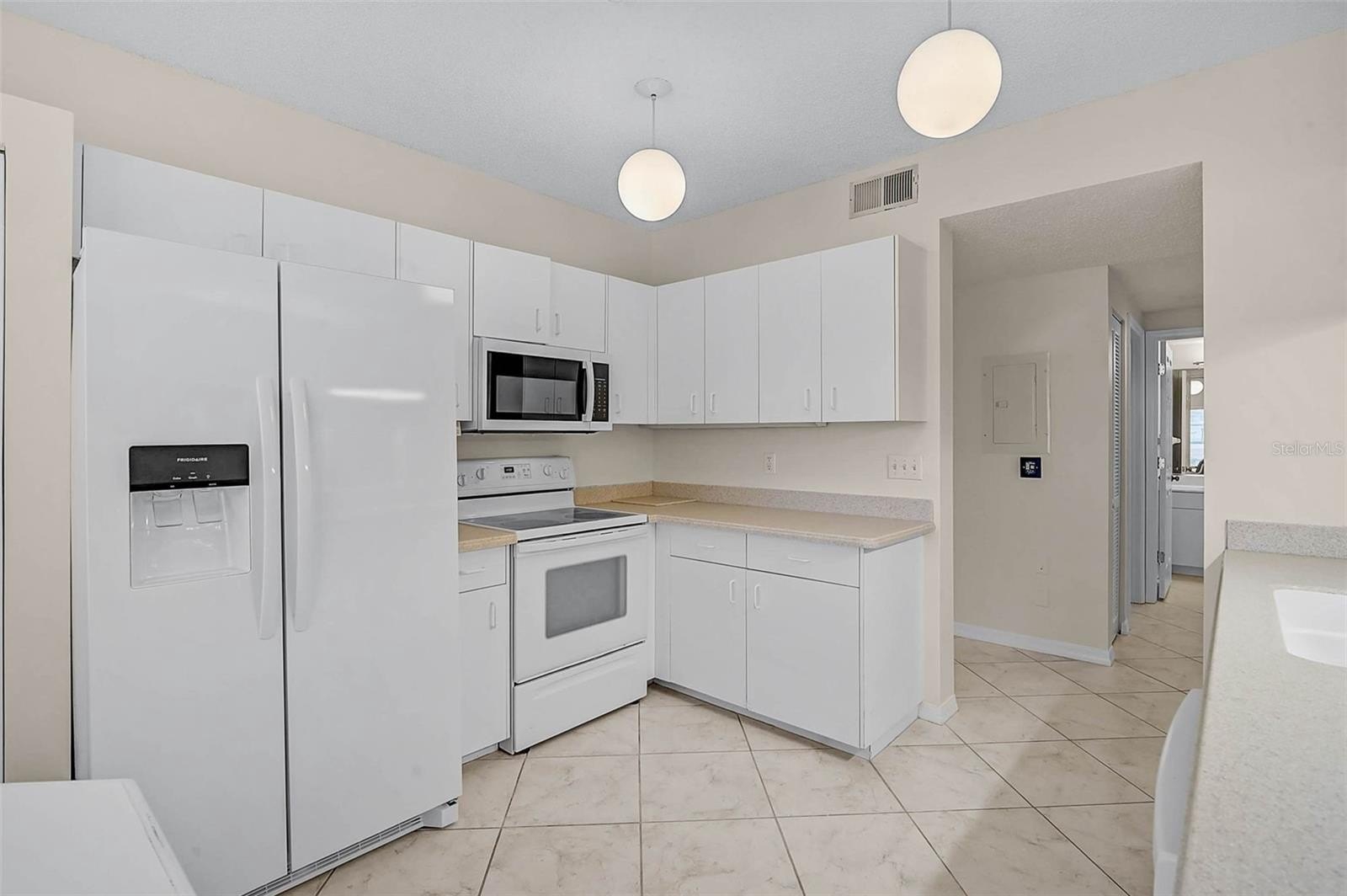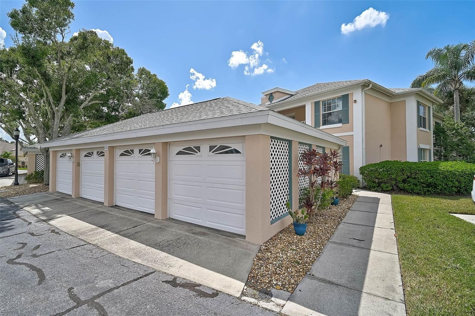 Ground Floor End-Unit Condo in Fairway Trace at Peridia Golf & Country Club! This spacious 2BR/2BA condo with a den and enclosed lanai offers a comfortable layout ideal for full-time or seasonal living. Featuring an open floor plan with a split-bedroom design, the home includes an eat-in kitchen with a pass-through to the dining and family rooms. Recent updates include a NEW refrigerator, NEW microwave, and NEW washer and dryer. The enclosed lanai provides a perfect space to enjoy morning coffee or unwind indoors. A detached one-car garage is included. The interior was freshly painted in September 2025. This unit is conveniently located near the community pool, reserved exclusively for Fairway Trace residents. Residents of Peridia Golf & Country Club enjoy access to an 18-hole executive golf course, tennis courts, pickleball, community pool, live music on Friday nights and Sunday afternoons, and exclusive members-only events. Additional activities include a bowling league, book club, Mahjong, and water aerobics—ideal for those seeking an active and engaging lifestyle. Fees: $4,000 One Time Capital Reserve, $450 Annual Food/beverage Minimum, $877 Quarterly Master Association, $1465 Quarterly to Gulf Coast Property Management.